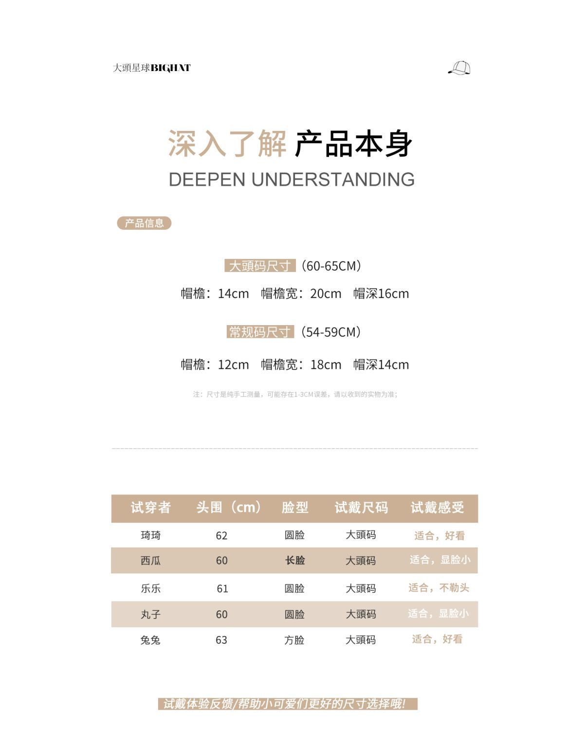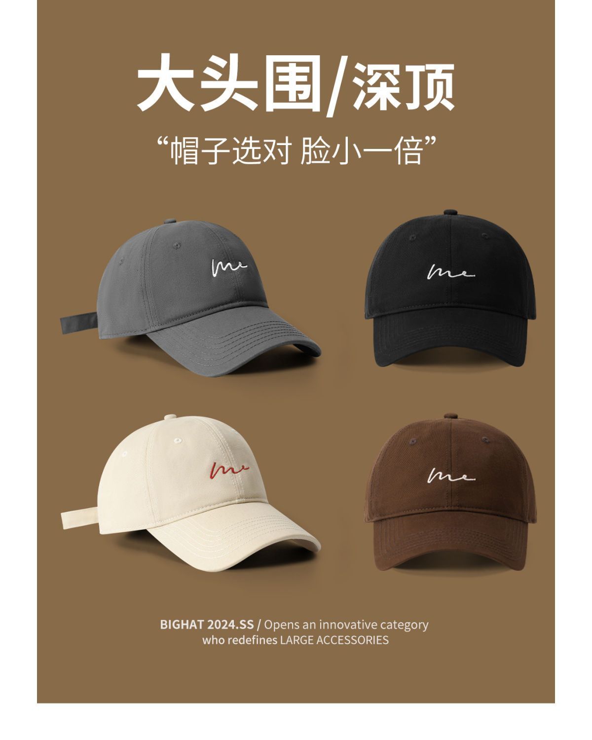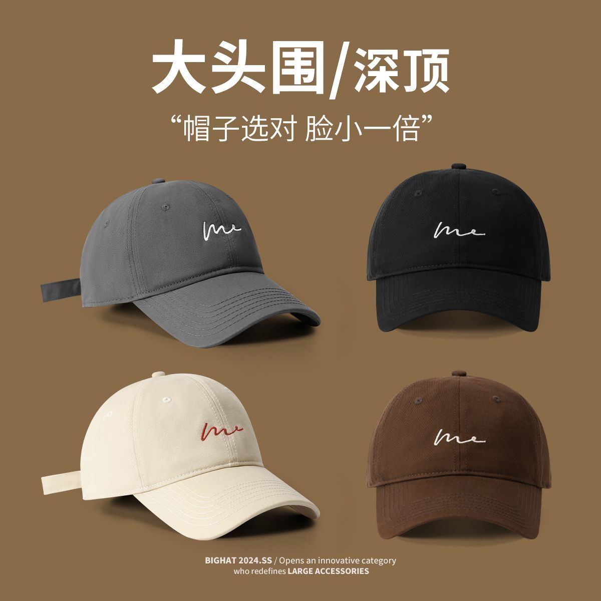 棒球帽子男2025新款大头围显脸小加宽帽檐深顶帅气潮流字母鸭舌帽