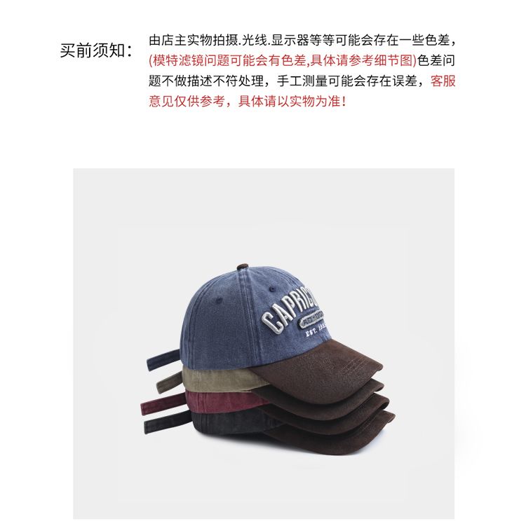 美式复古水洗做旧拼接棒球帽男女ins韩版个性百搭潮流休闲鸭舌帽