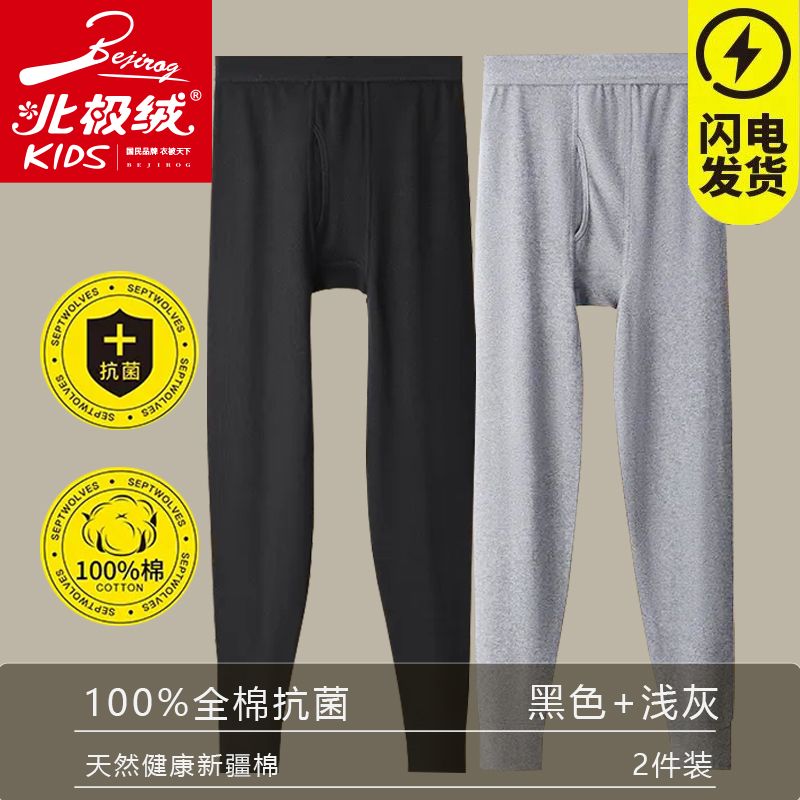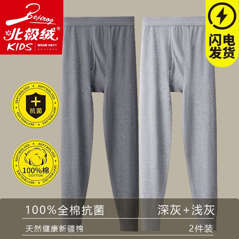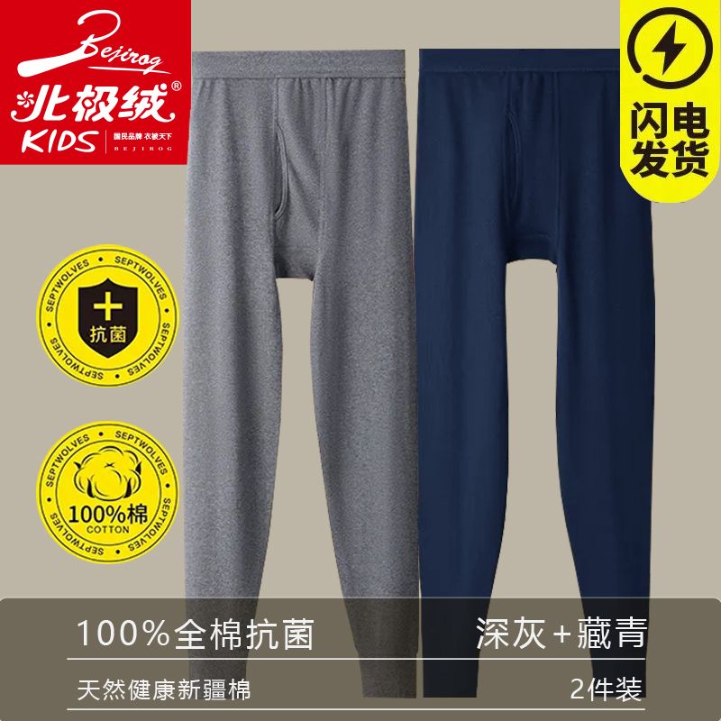 北极绒男士秋裤男纯棉中老年宽松秋冬季衬裤全棉保暖裤线裤棉毛裤
