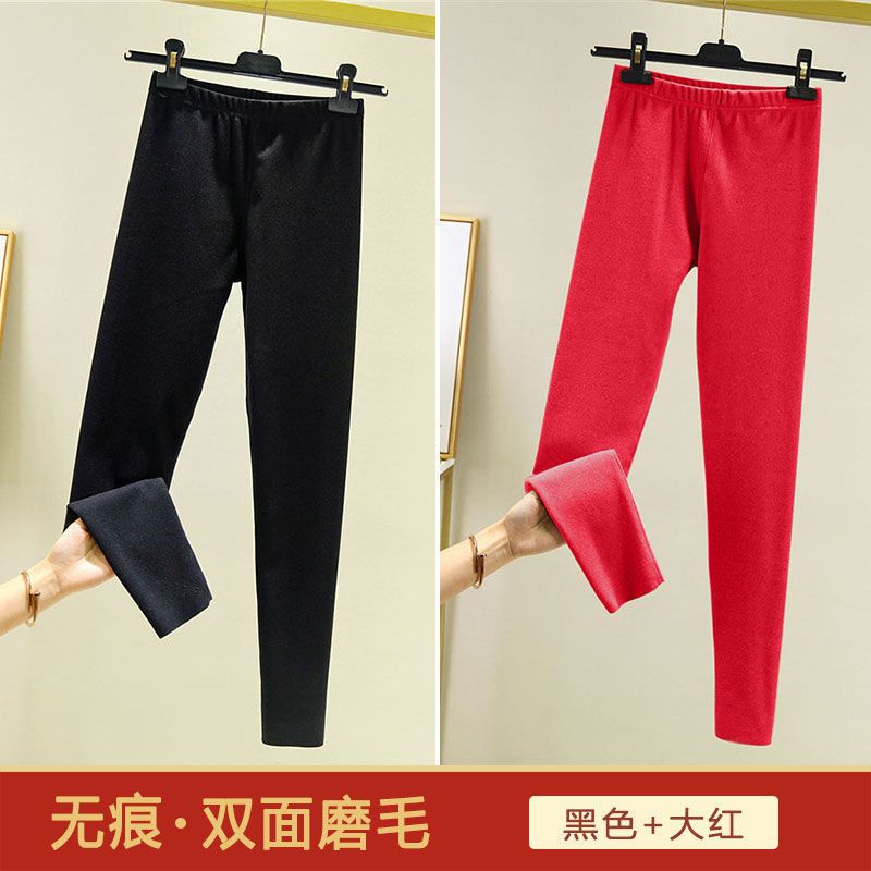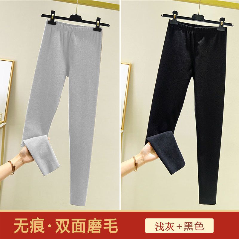 双面磨毛保暖裤德绒无痕秋裤加绒打底裤线裤内穿修身裤秋冬女士
