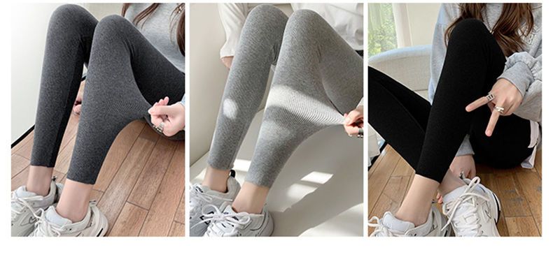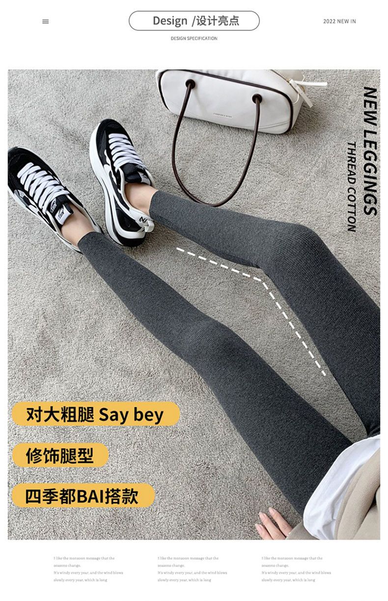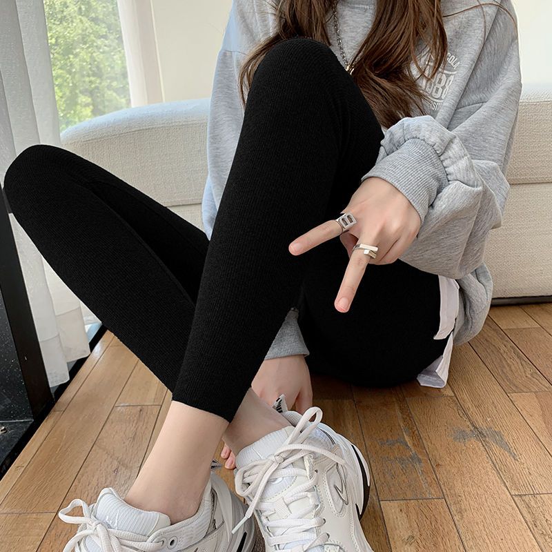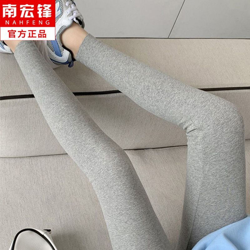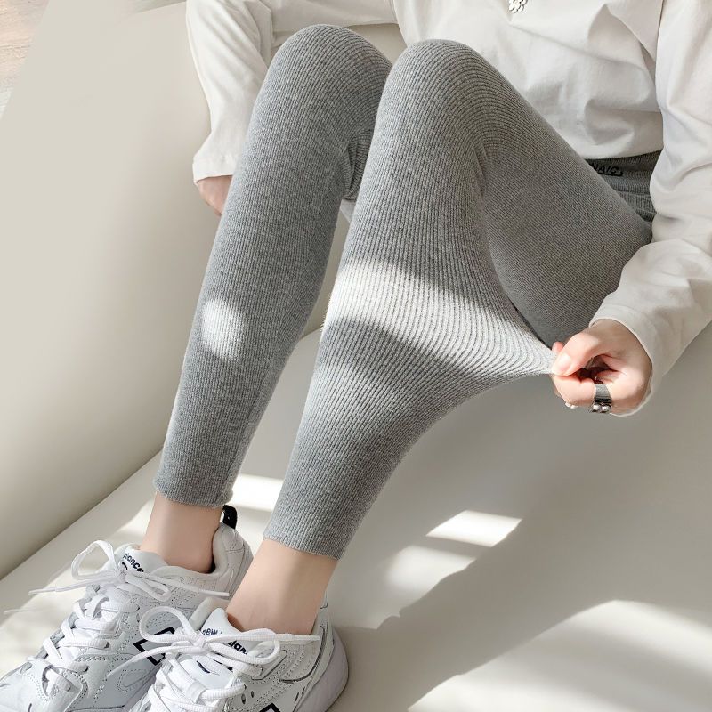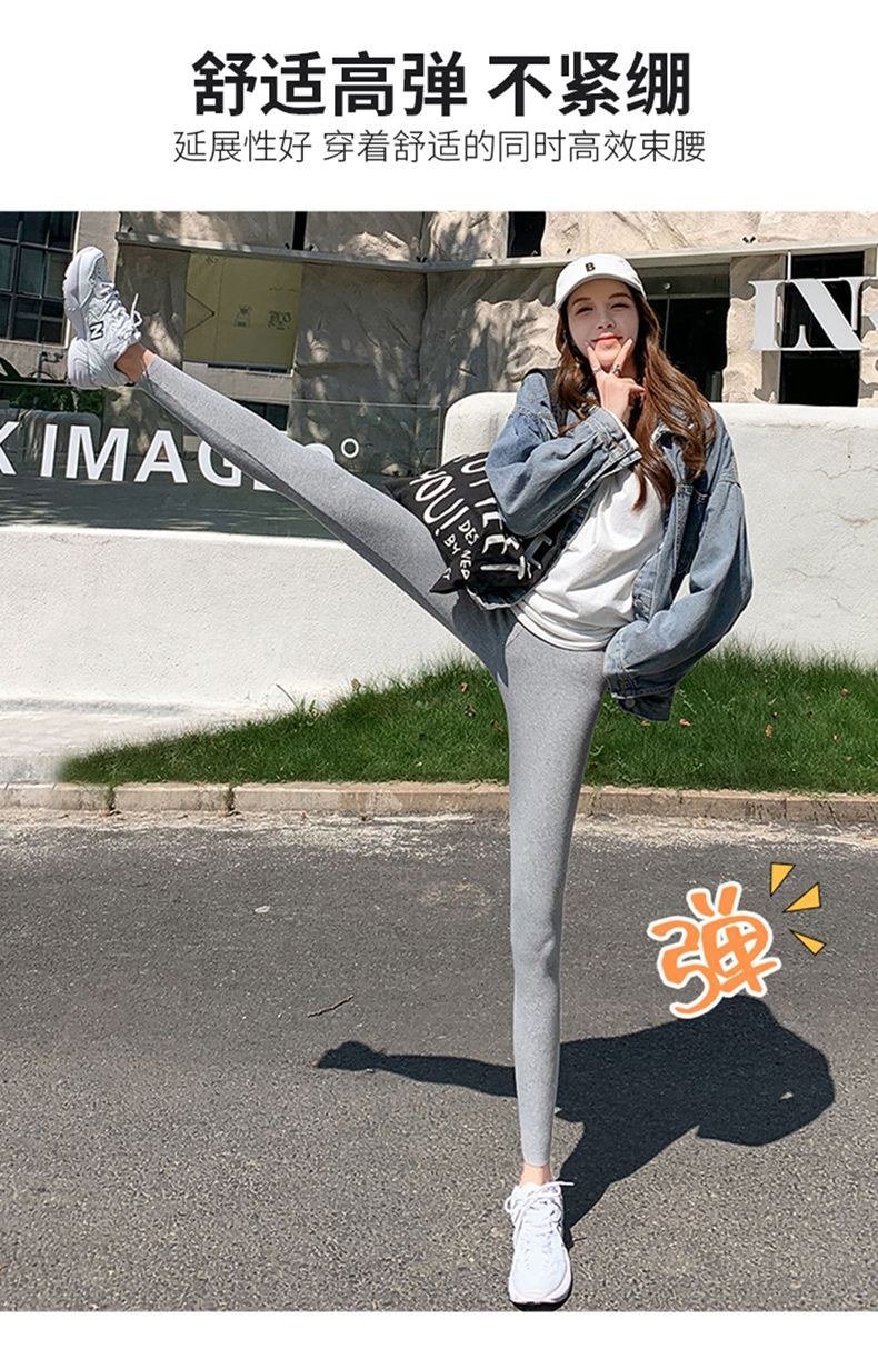 打底裤女外穿春秋薄款灰色秋裤高腰紧身显瘦螺纹小脚长裤网红百搭