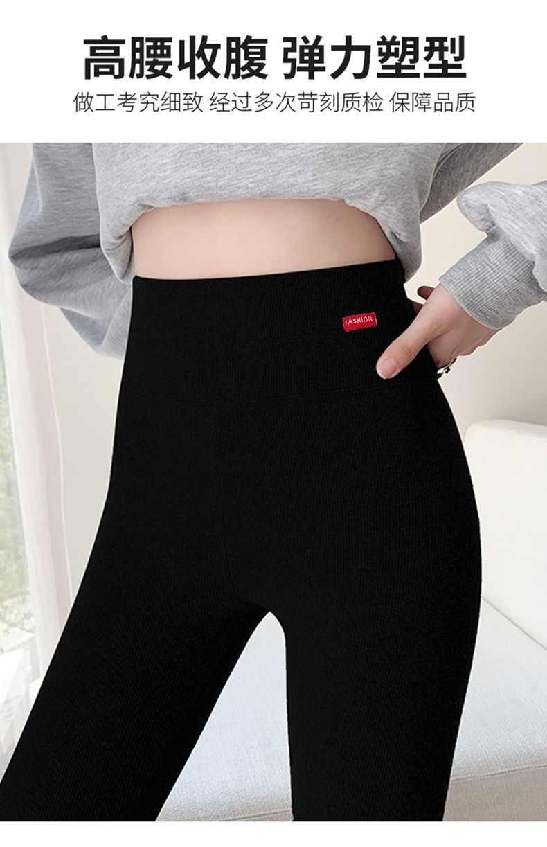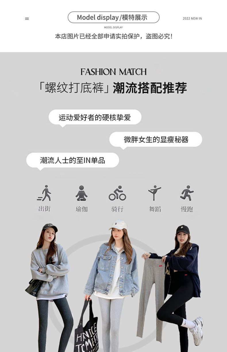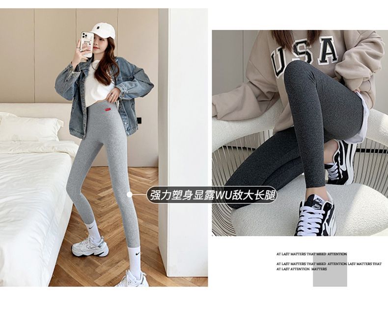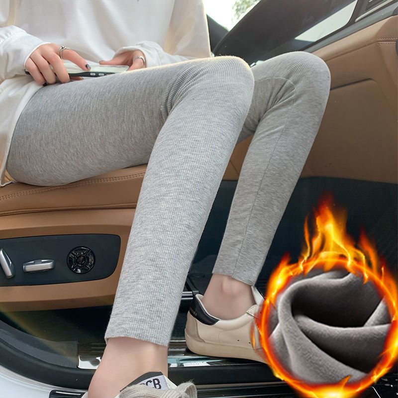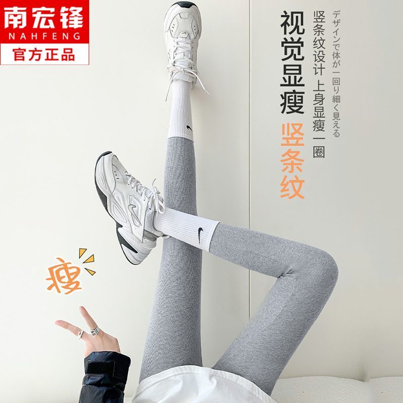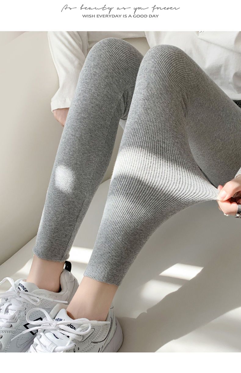 打底裤女外穿春秋薄款灰色秋裤高腰紧身显瘦螺纹小脚长裤网红百搭
