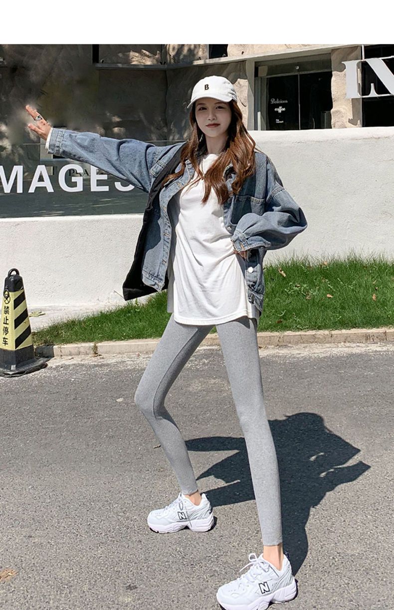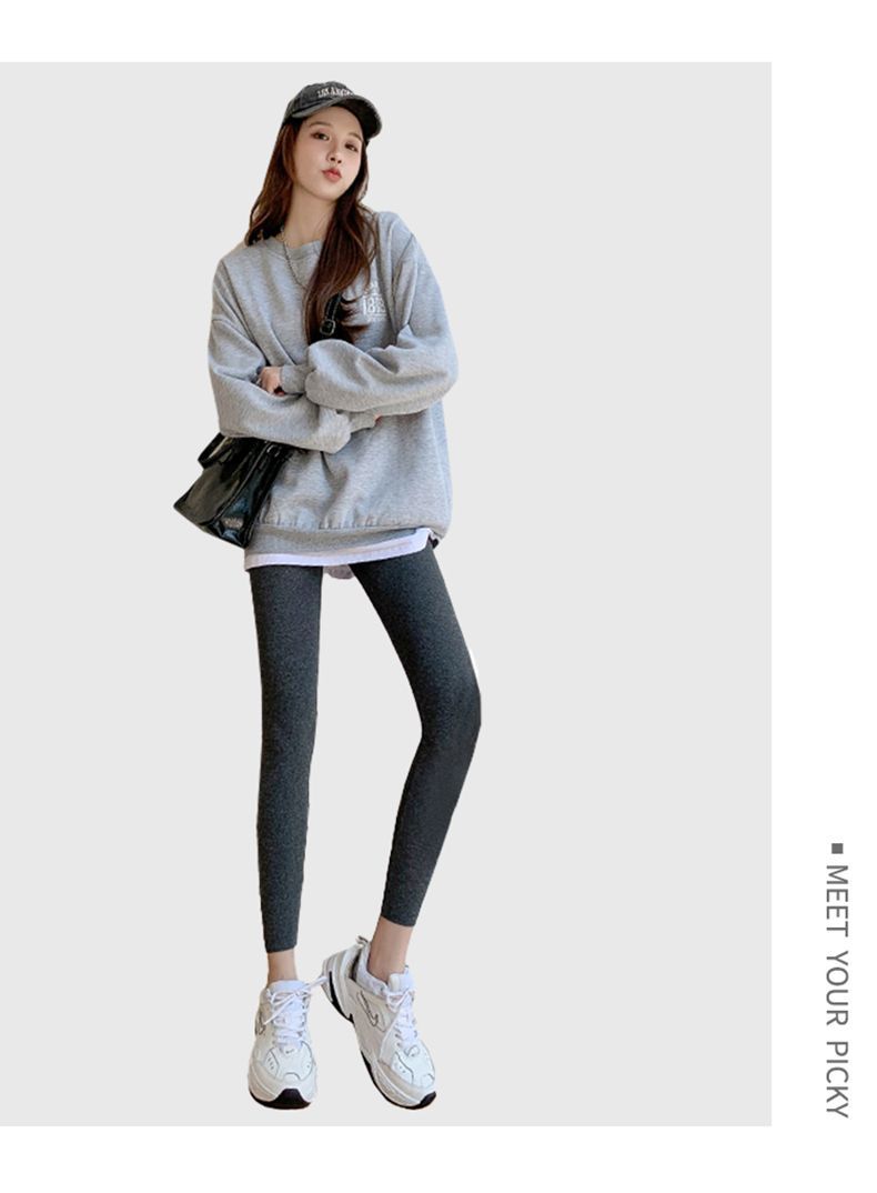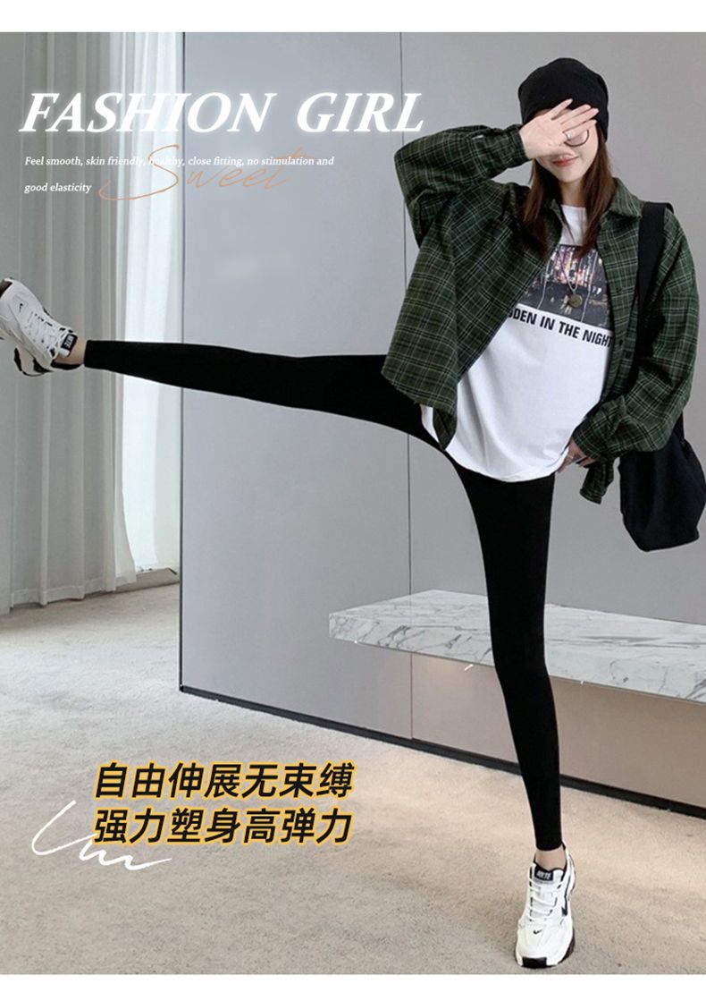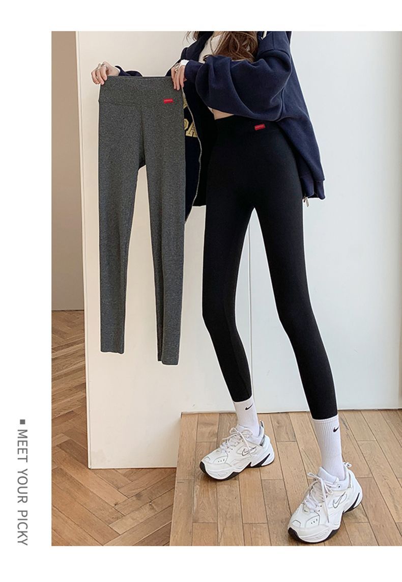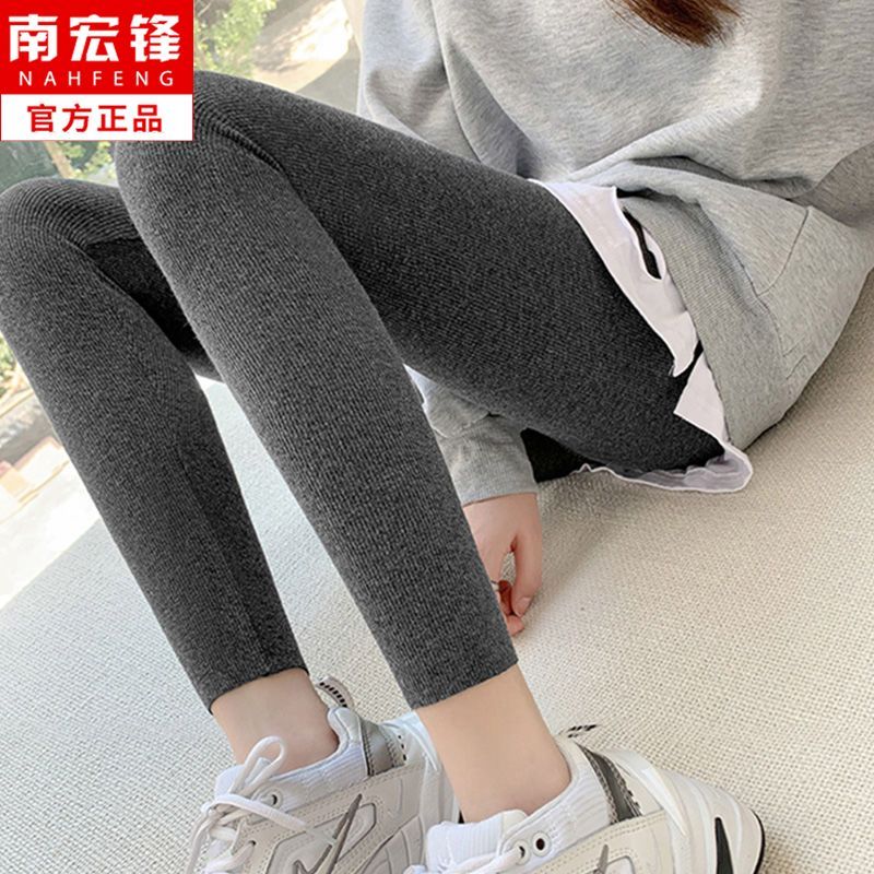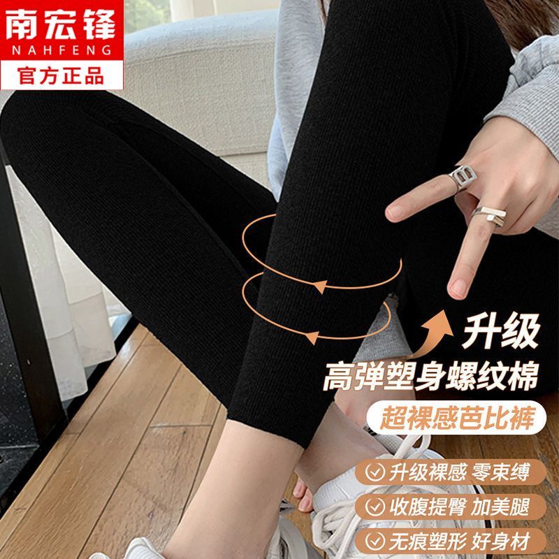 打底裤女外穿春秋薄款灰色秋裤高腰紧身显瘦螺纹小脚长裤网红百搭