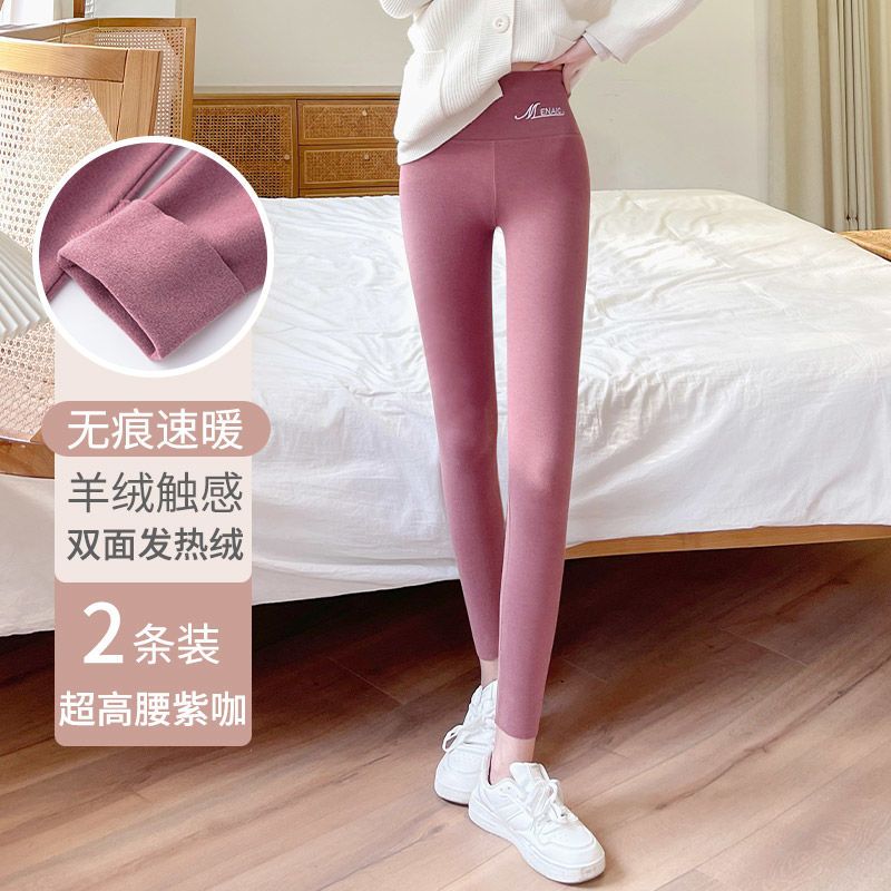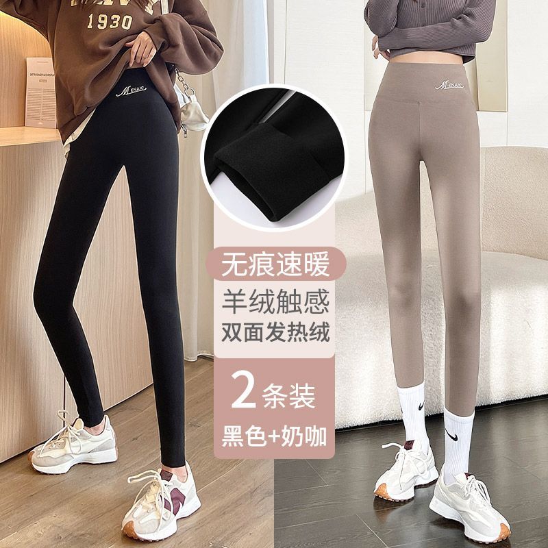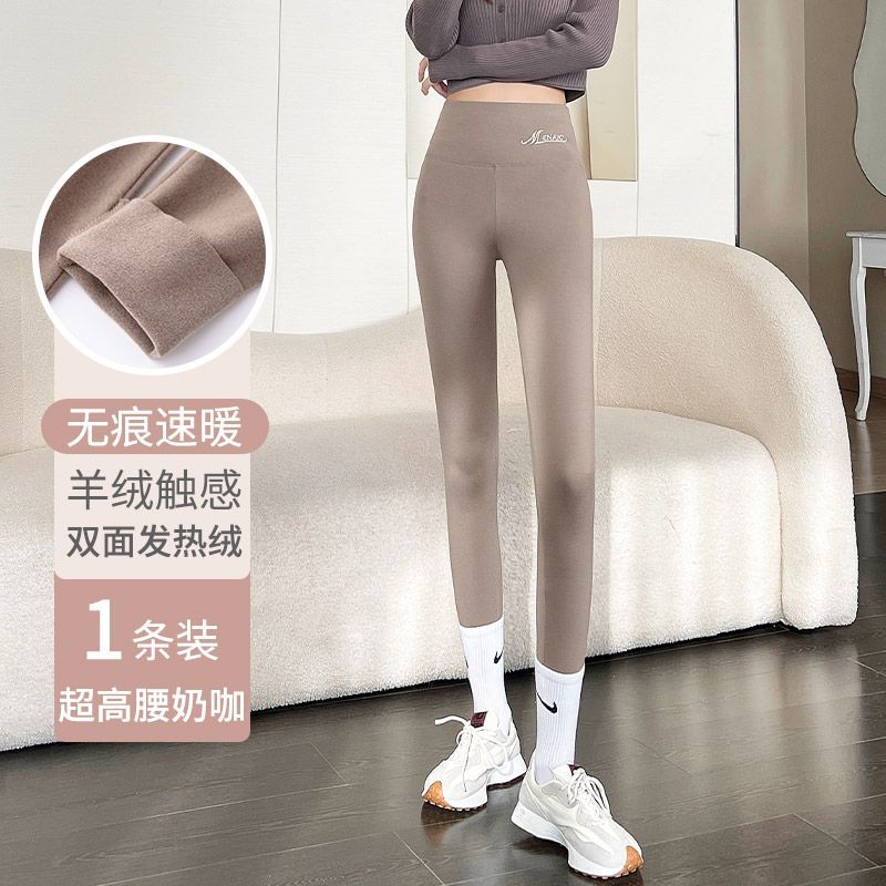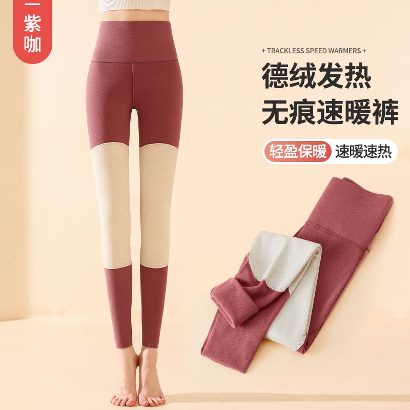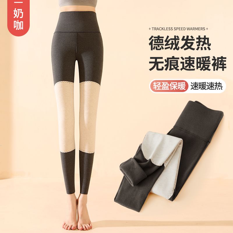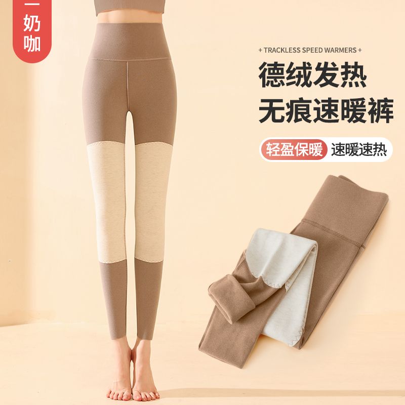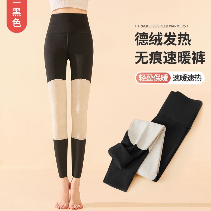 德绒秋裤女秋冬高腰紧身无痕内穿发热加绒加厚线裤保暖裤打底裤子