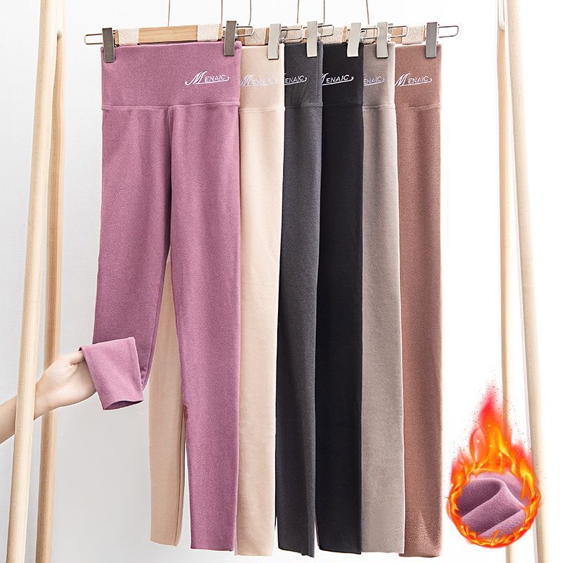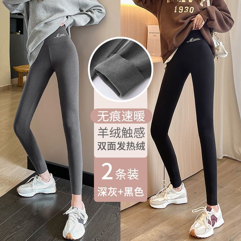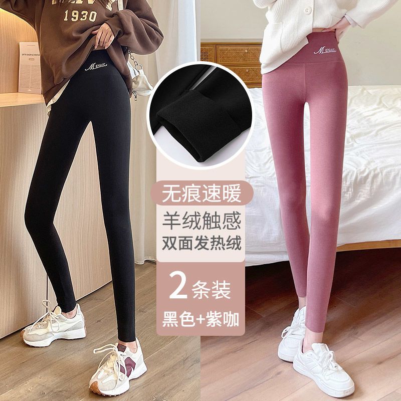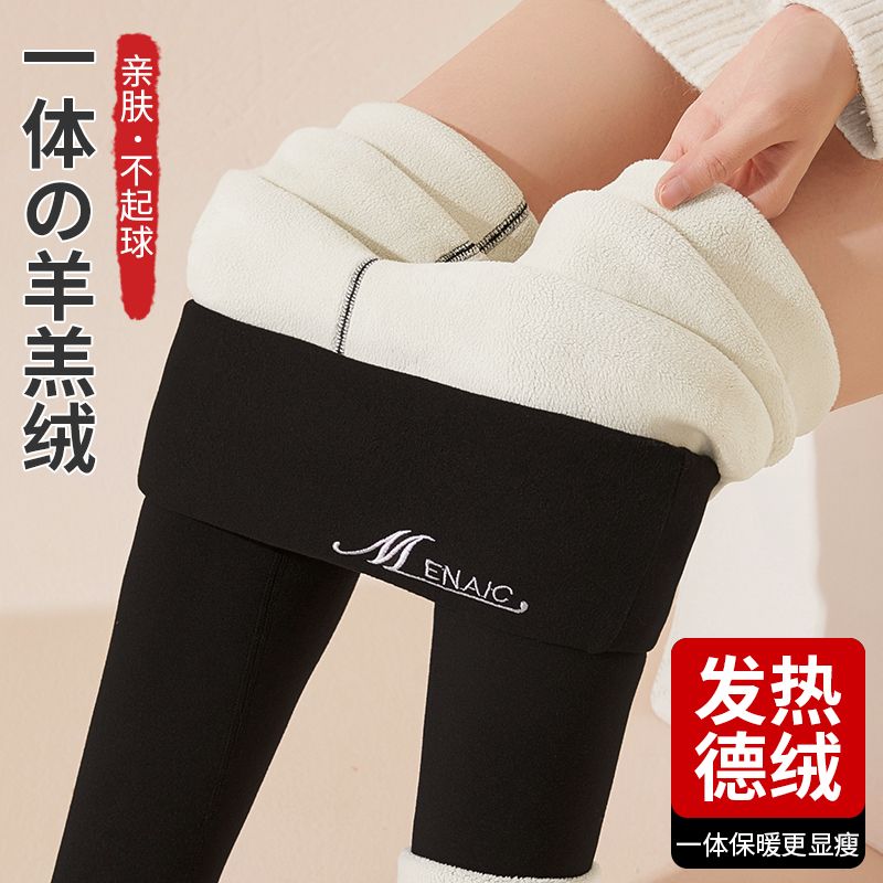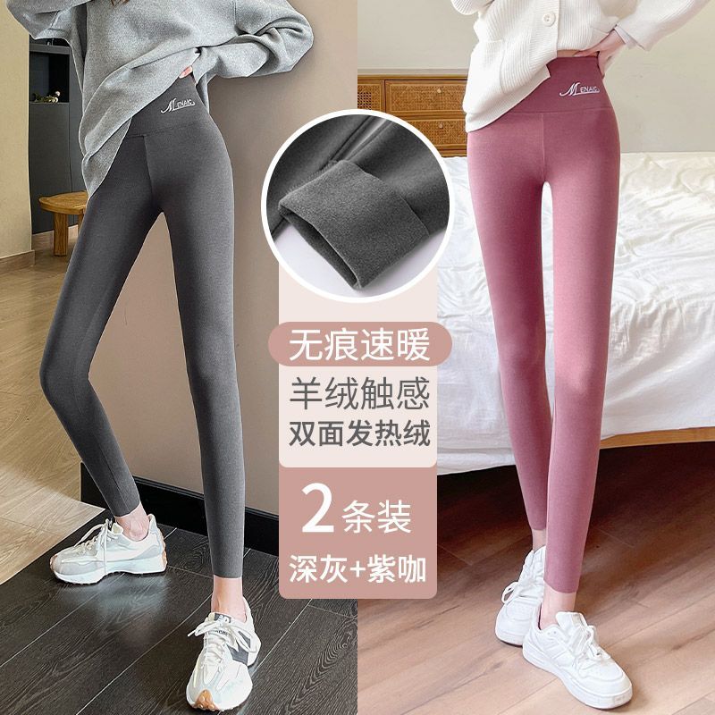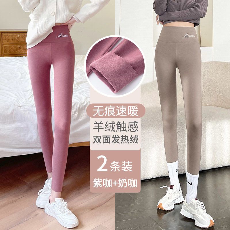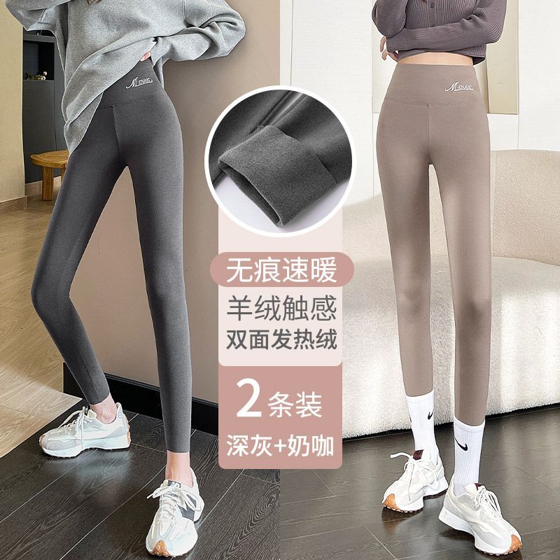 德绒秋裤女秋冬高腰紧身无痕内穿发热加绒加厚线裤保暖裤打底裤子