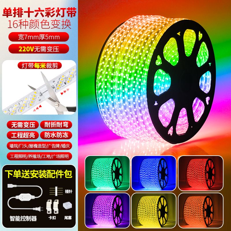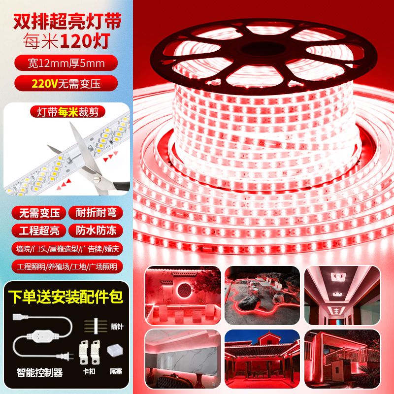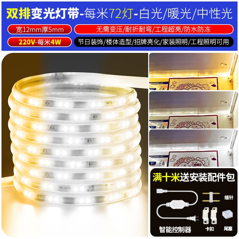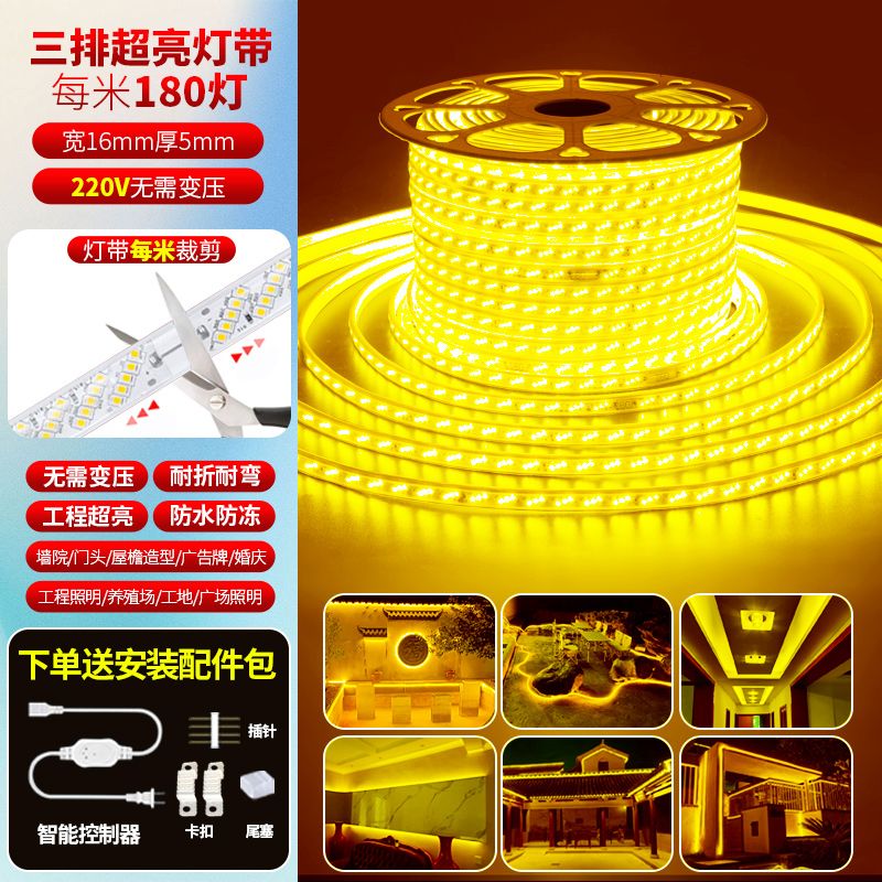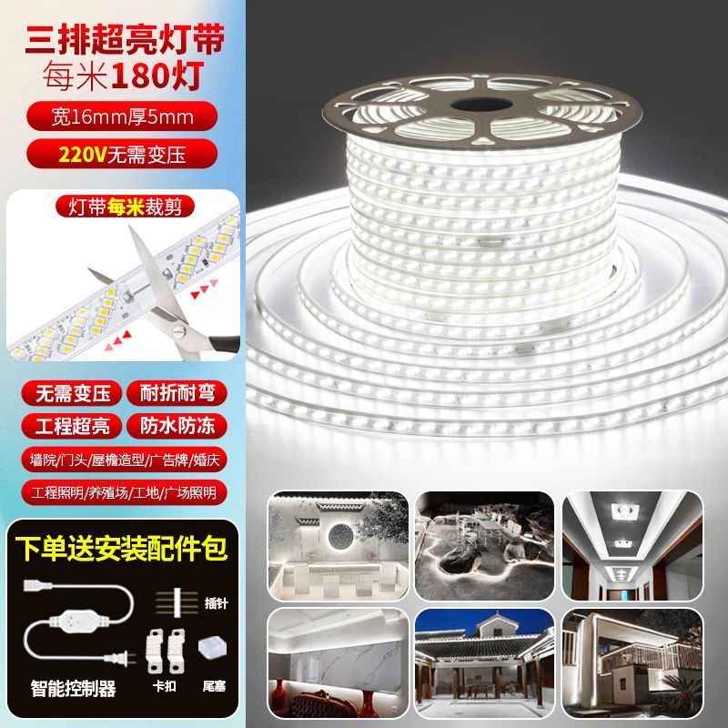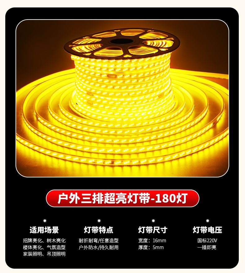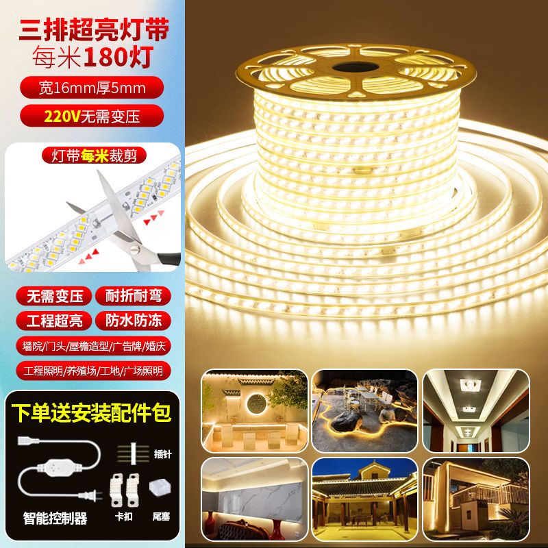灯带led超亮100米套装220V户外家装防水三色变光工地亮化工程批发