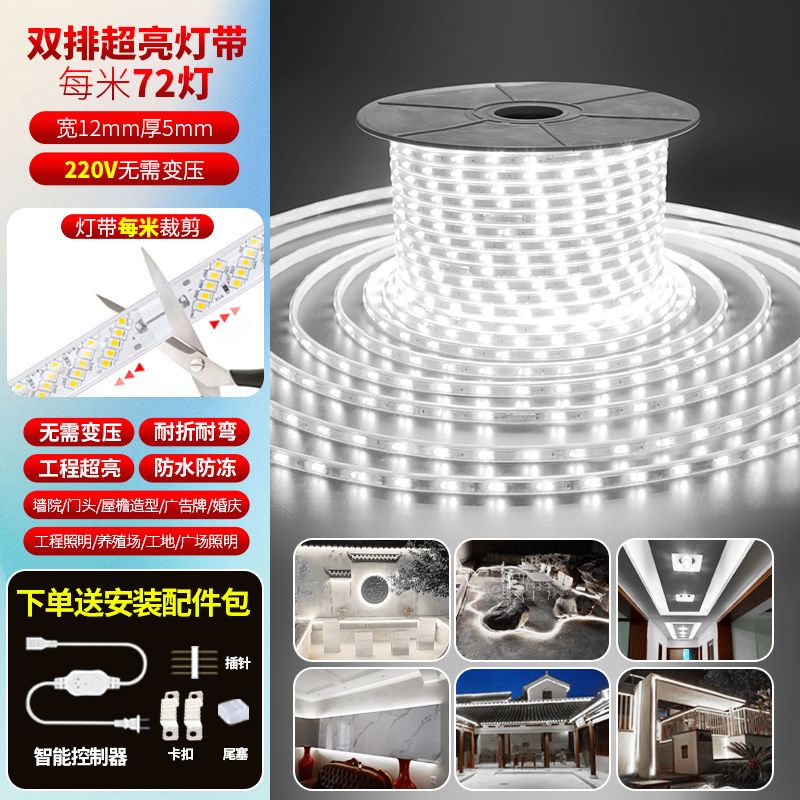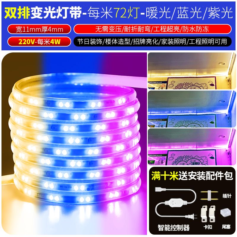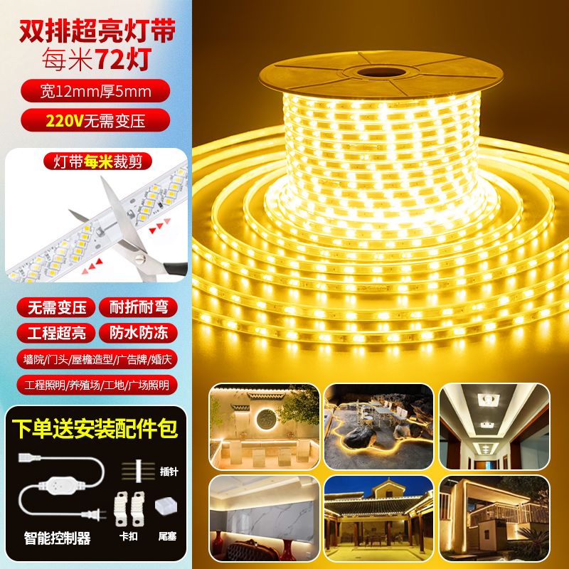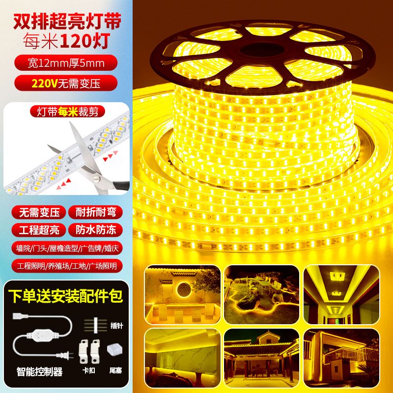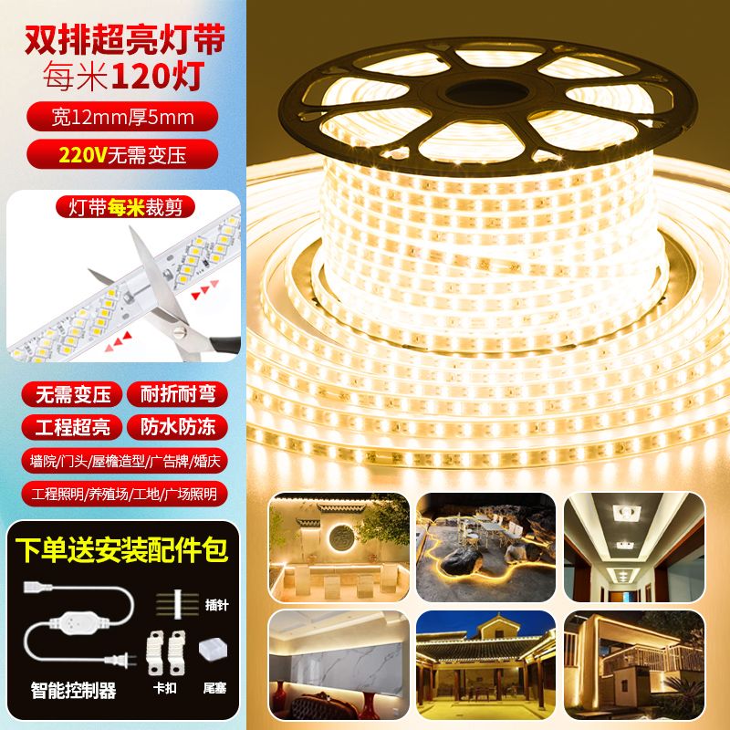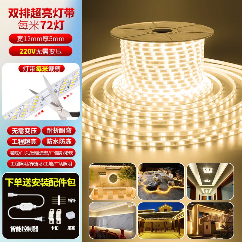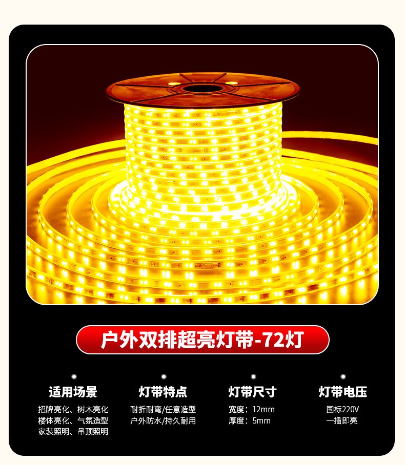 灯带led超亮100米套装220V户外家装防水三色变光工地亮化工程批发