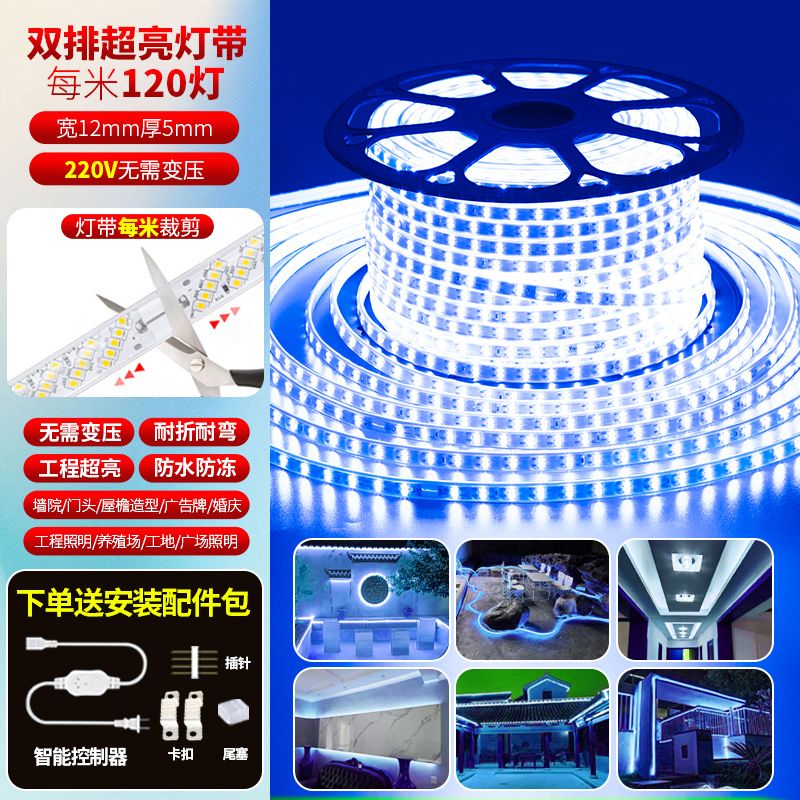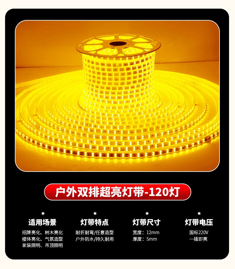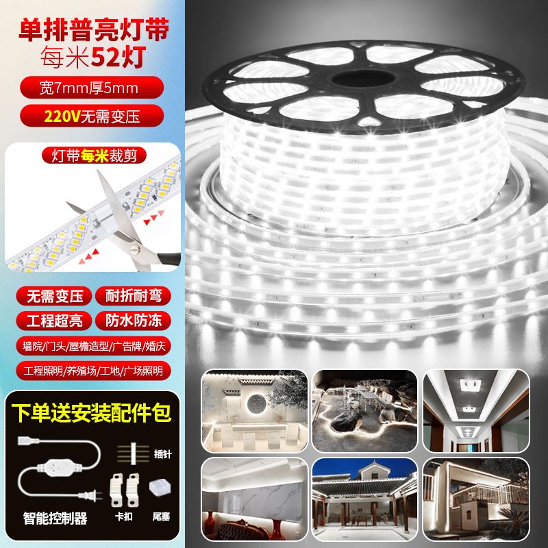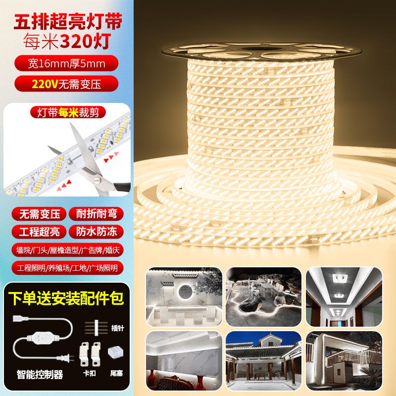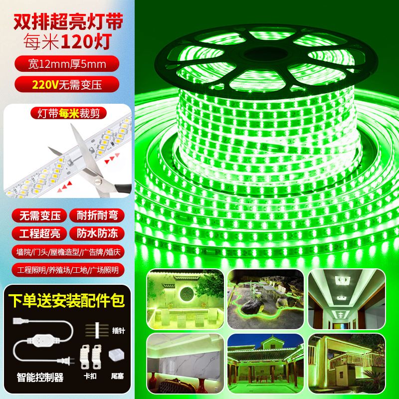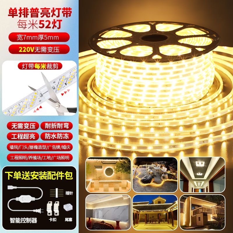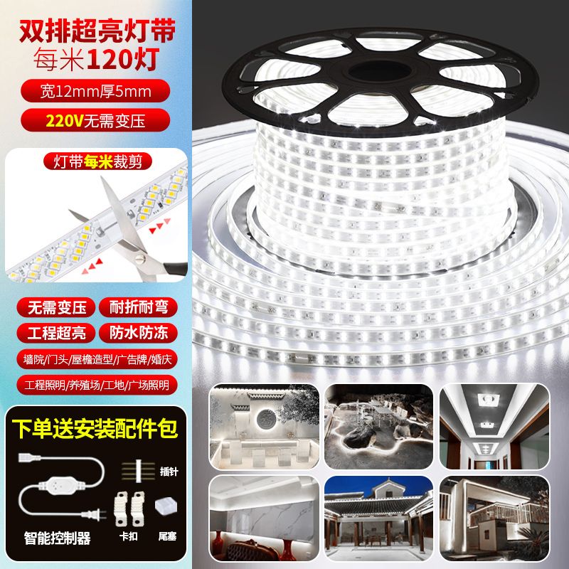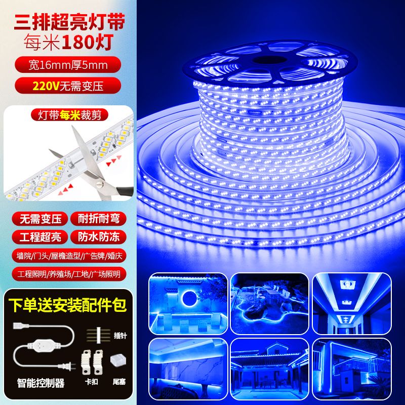 灯带led超亮100米套装220V户外家装防水三色变光工地亮化工程批发
