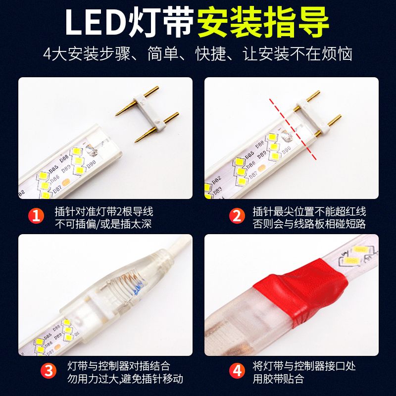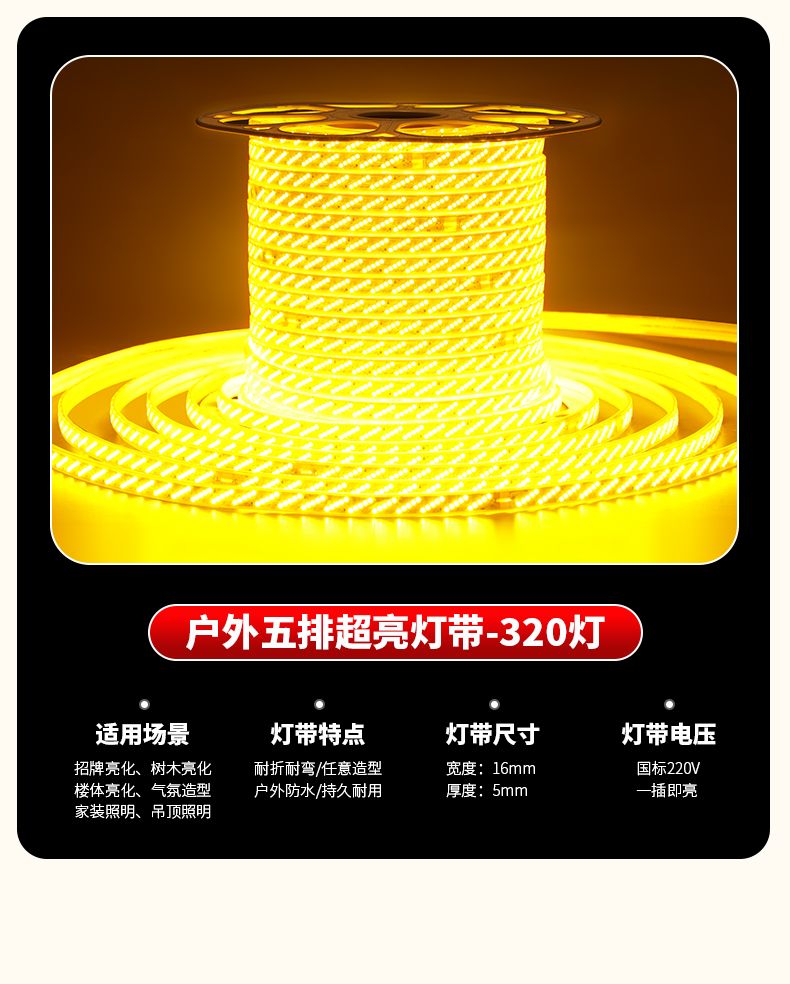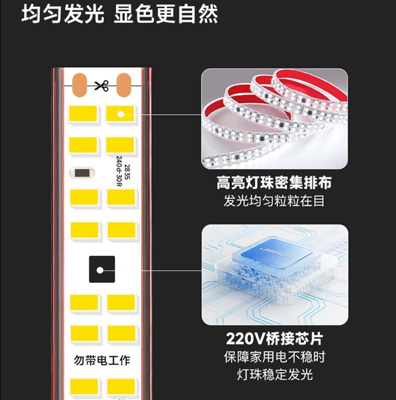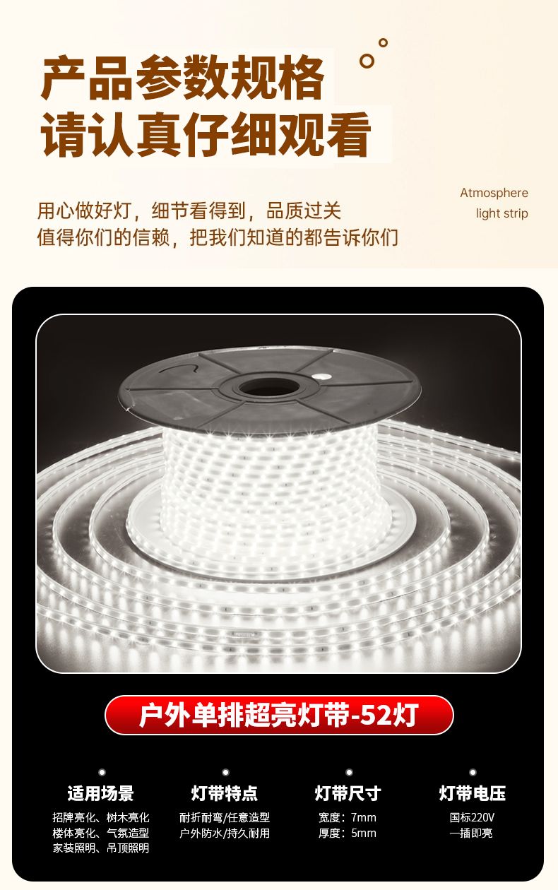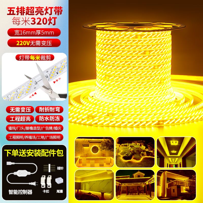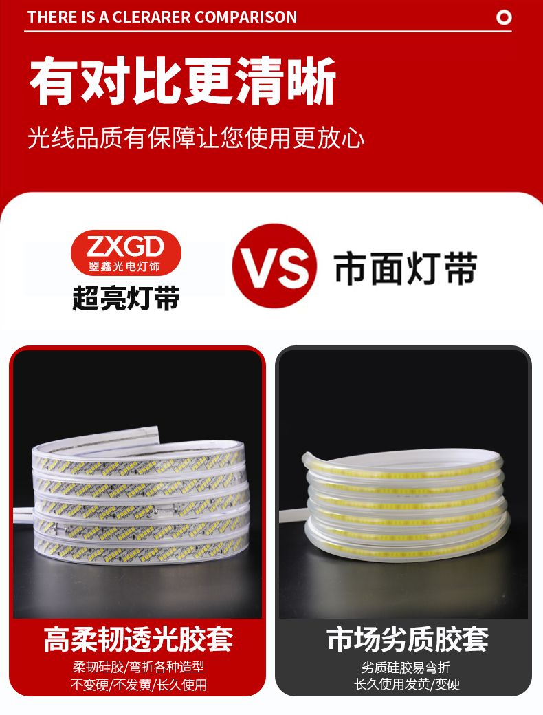 灯带led超亮100米套装220V户外家装防水三色变光工地亮化工程批发