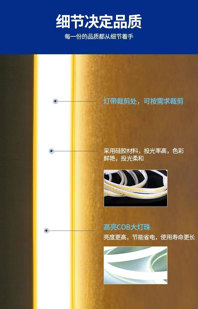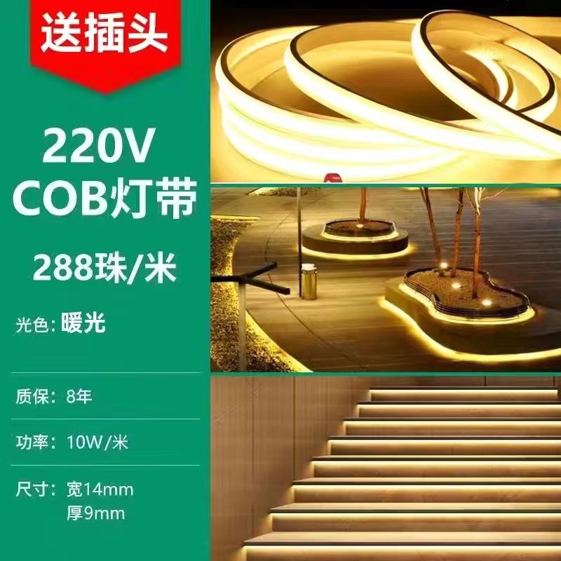 超亮COB灯带条220v高压户外防水led软灯条线型灯客厅吊顶室外批发