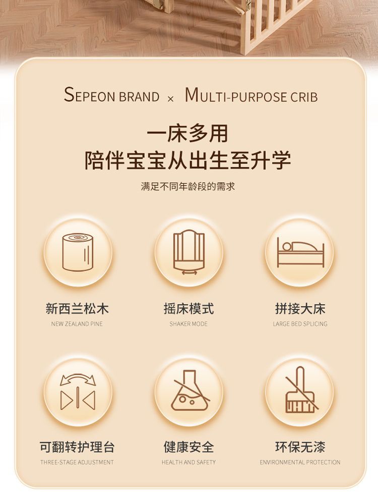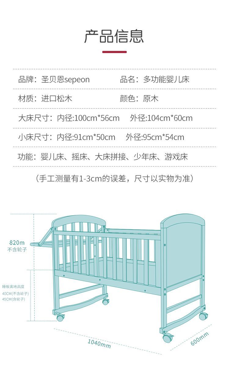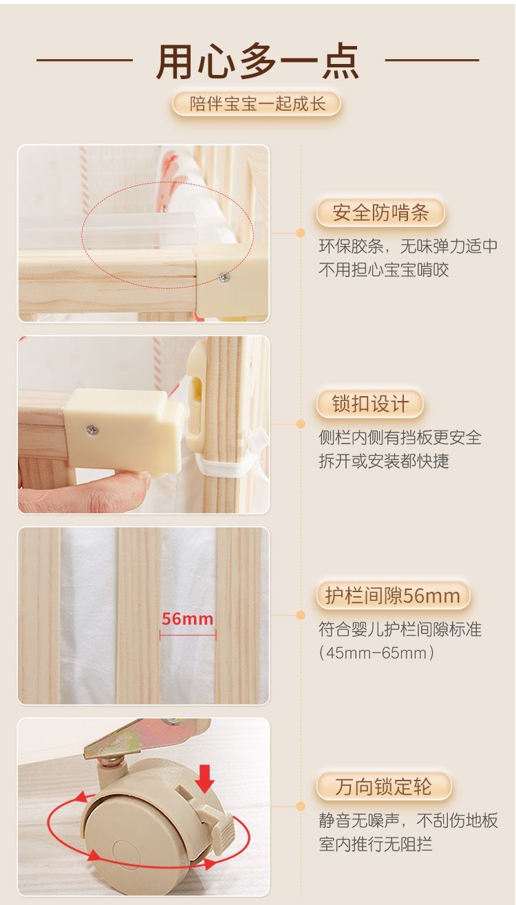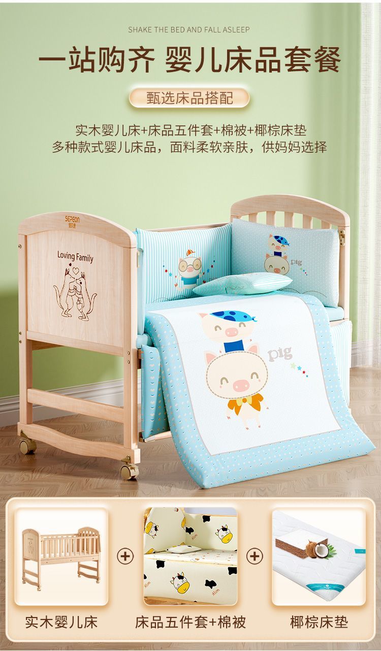 圣贝恩婴儿床拼接婴儿大床实木无漆环保摇篮儿童新生儿宝宝儿童床
