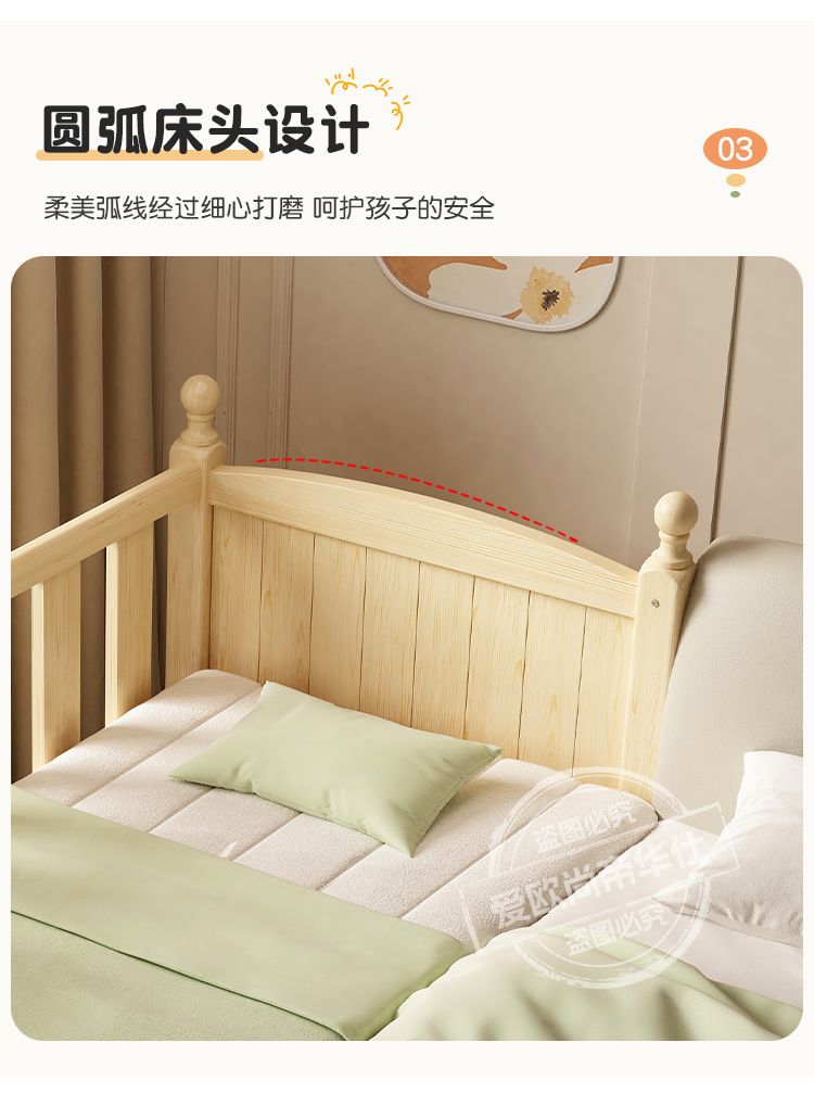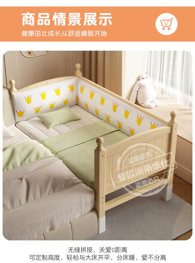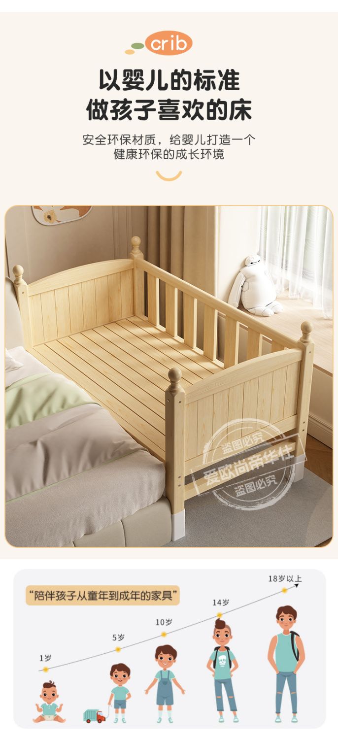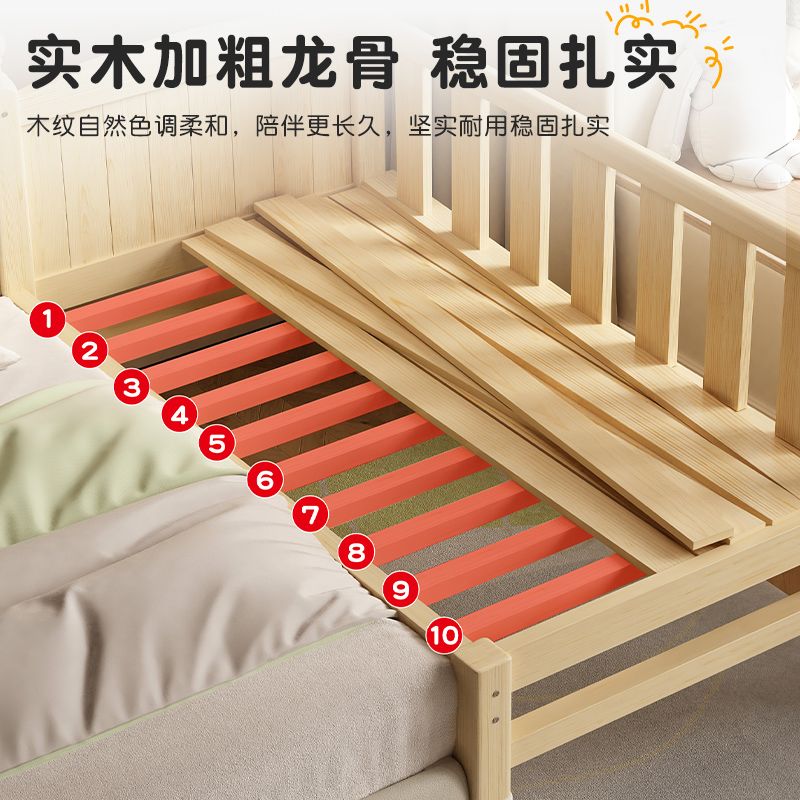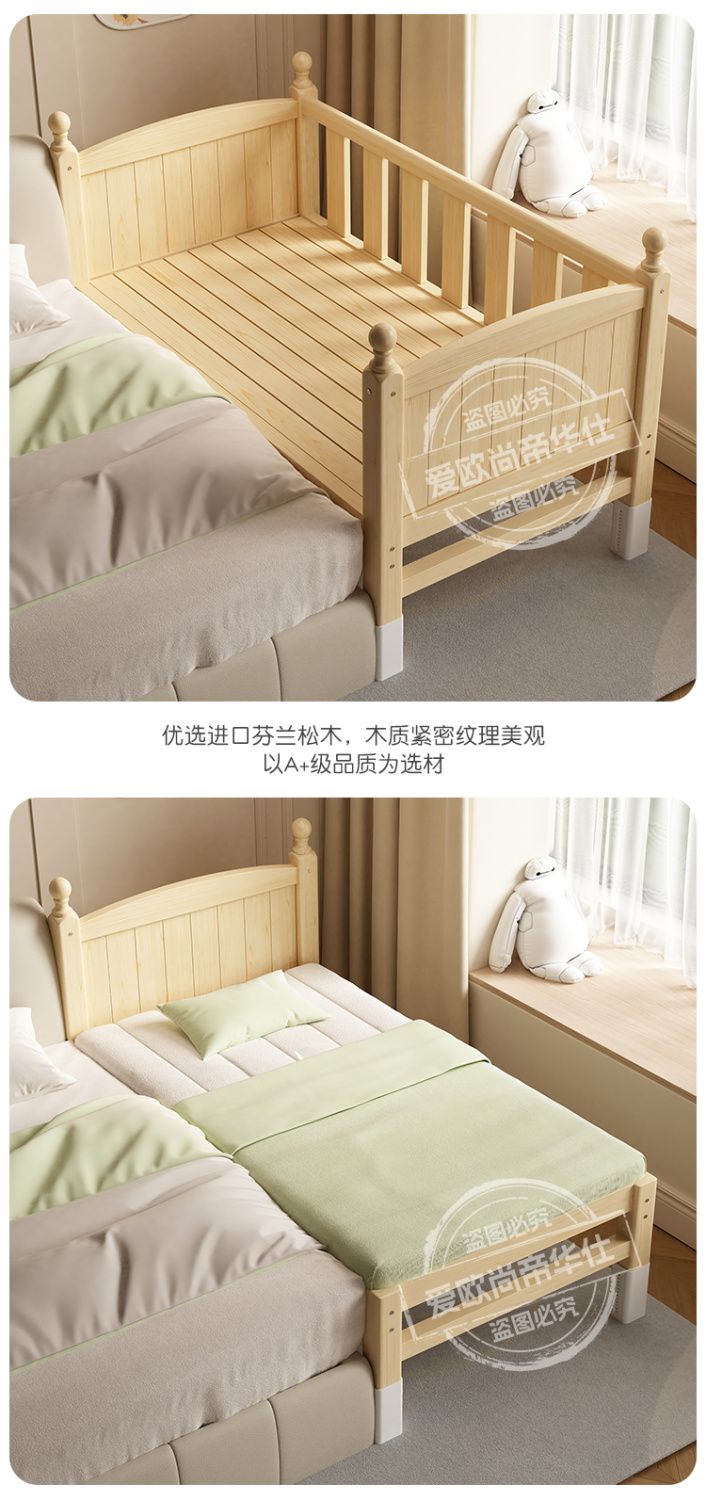 实木婴儿拼接床儿童带护栏加宽宝宝床男孩女孩床边大床儿童拼接床