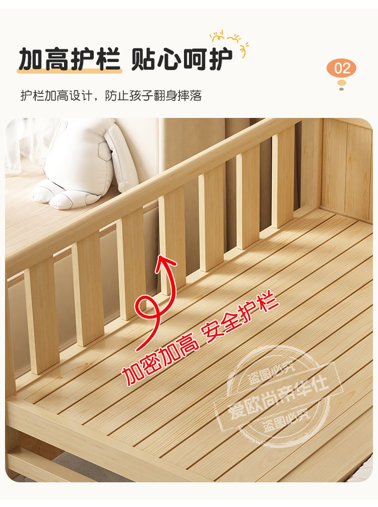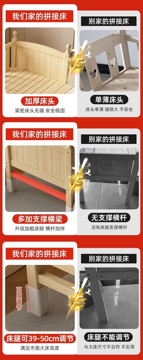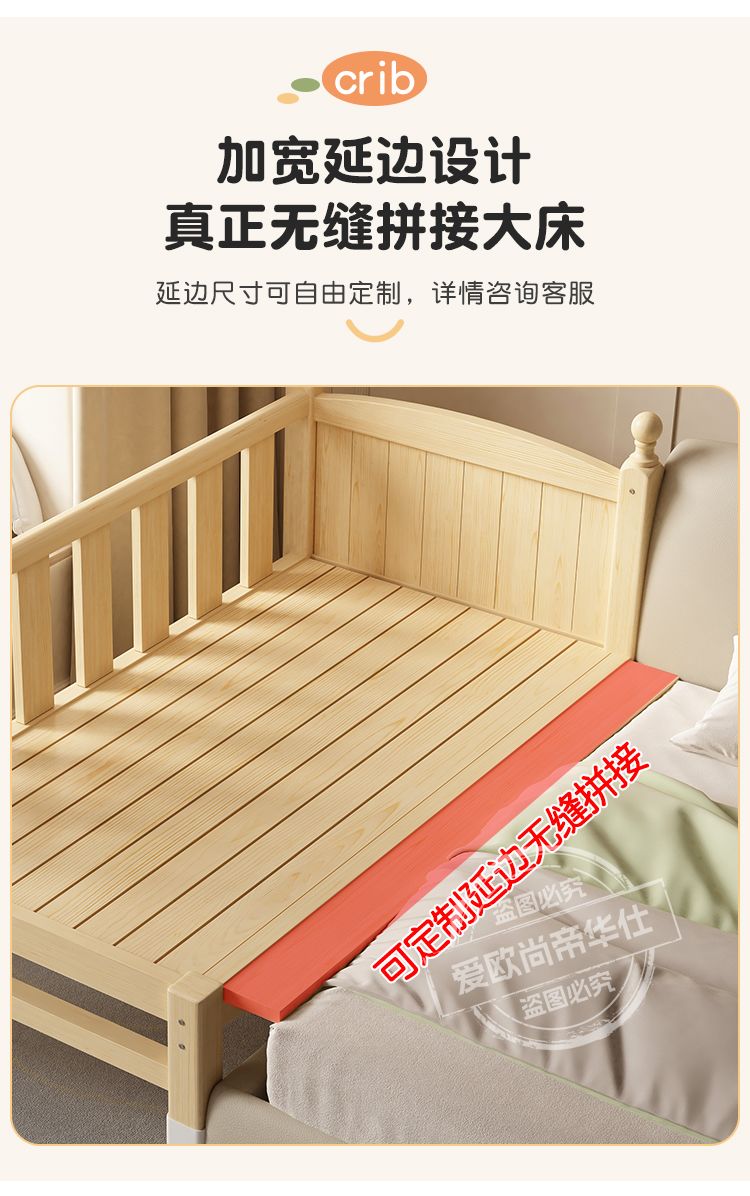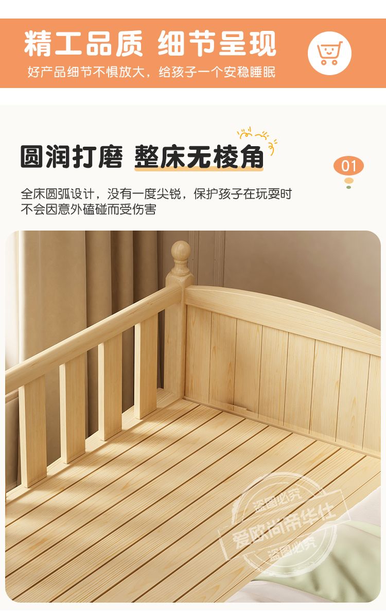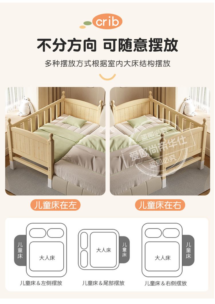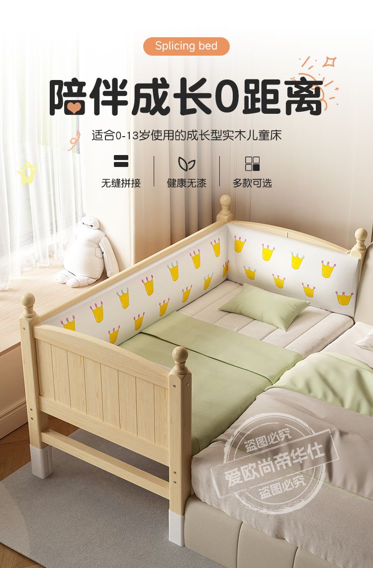 实木婴儿拼接床儿童带护栏加宽宝宝床男孩女孩床边大床儿童拼接床