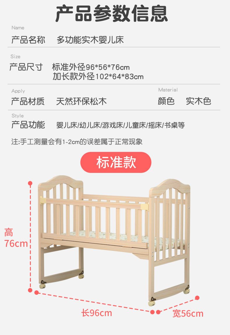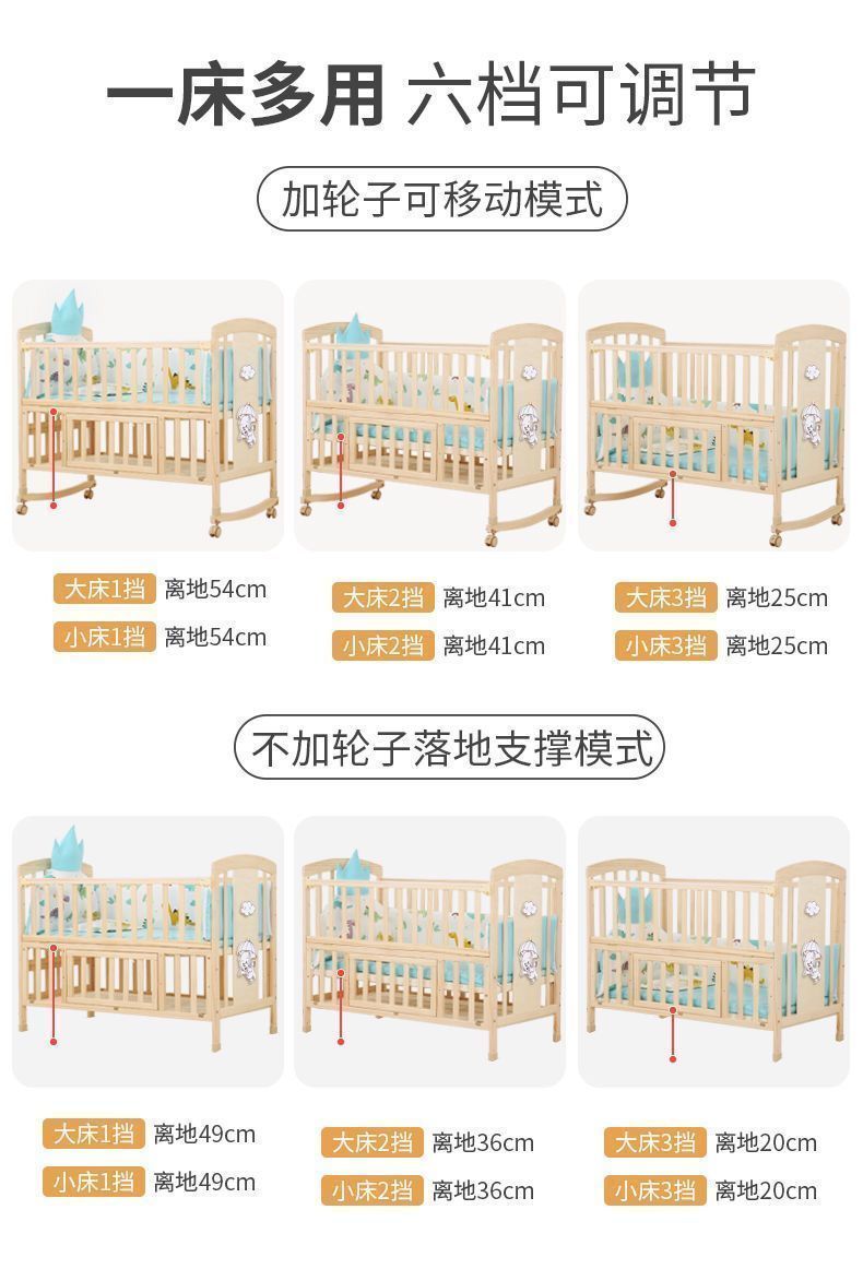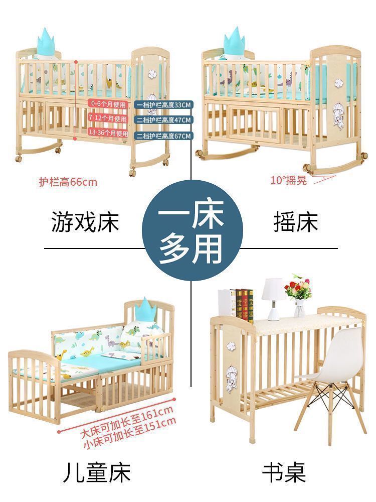 无漆环保BB宝宝摇篮床可变书桌可拼大床婴儿床0-3岁幼儿园可移动