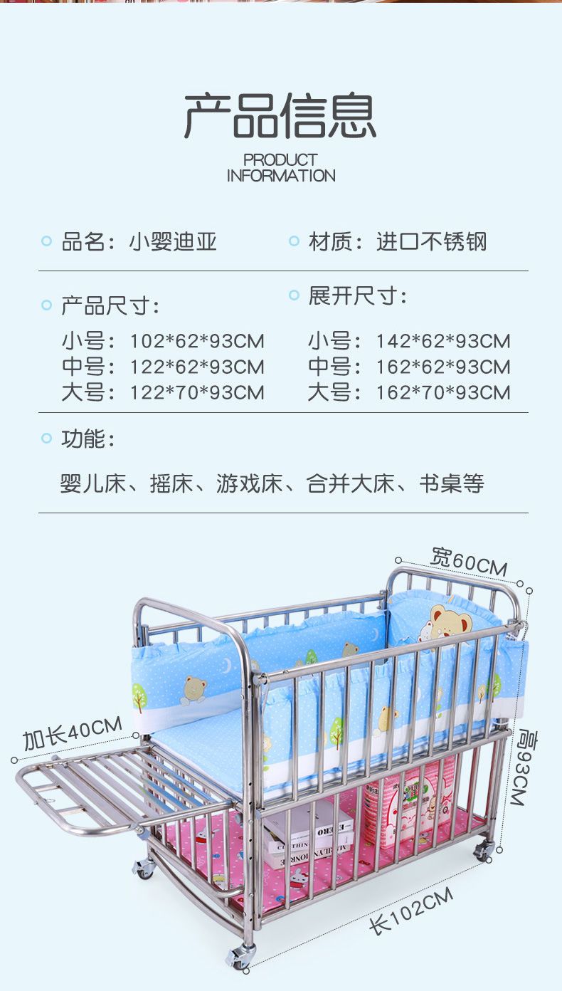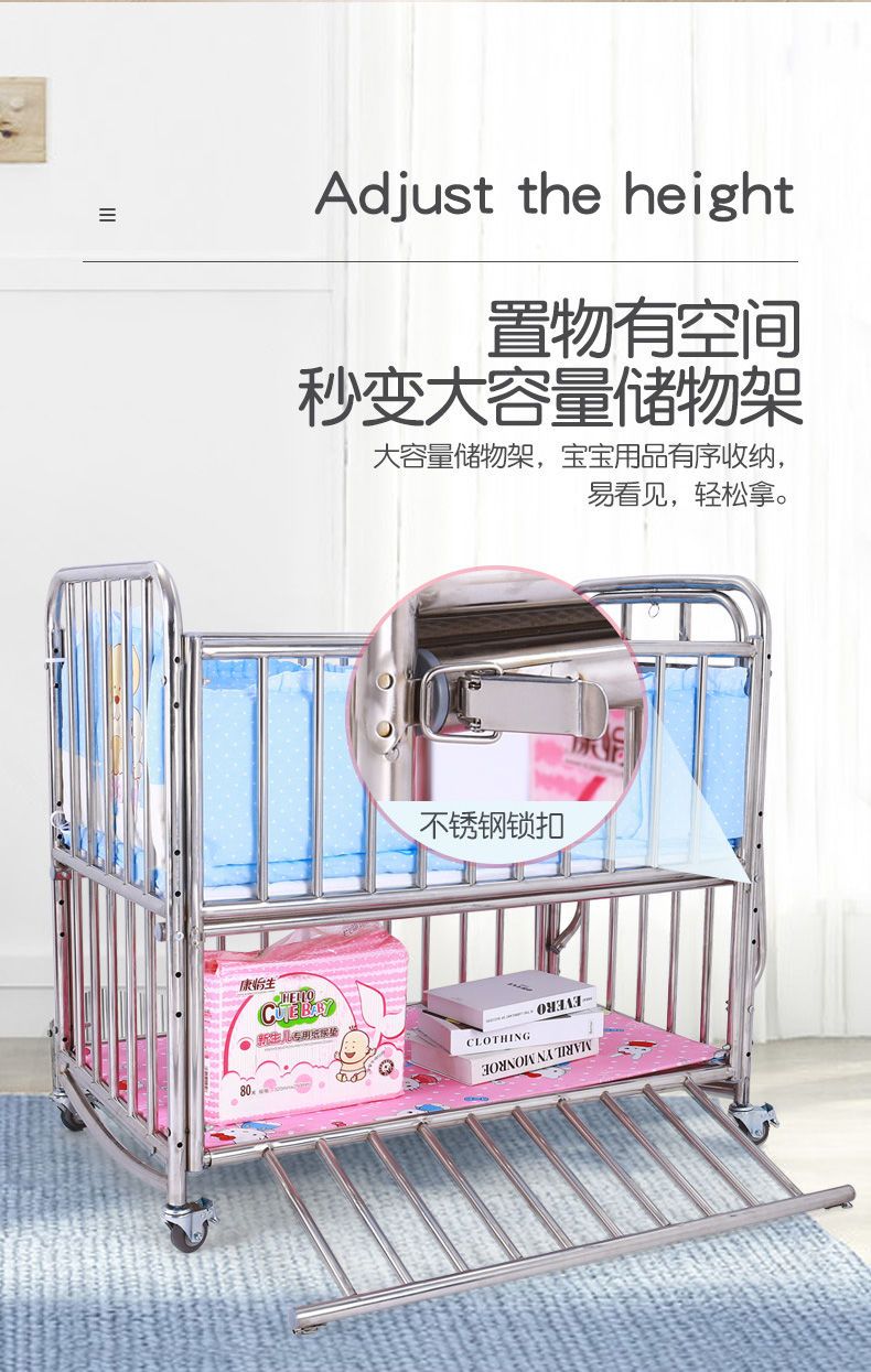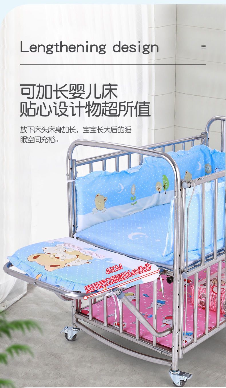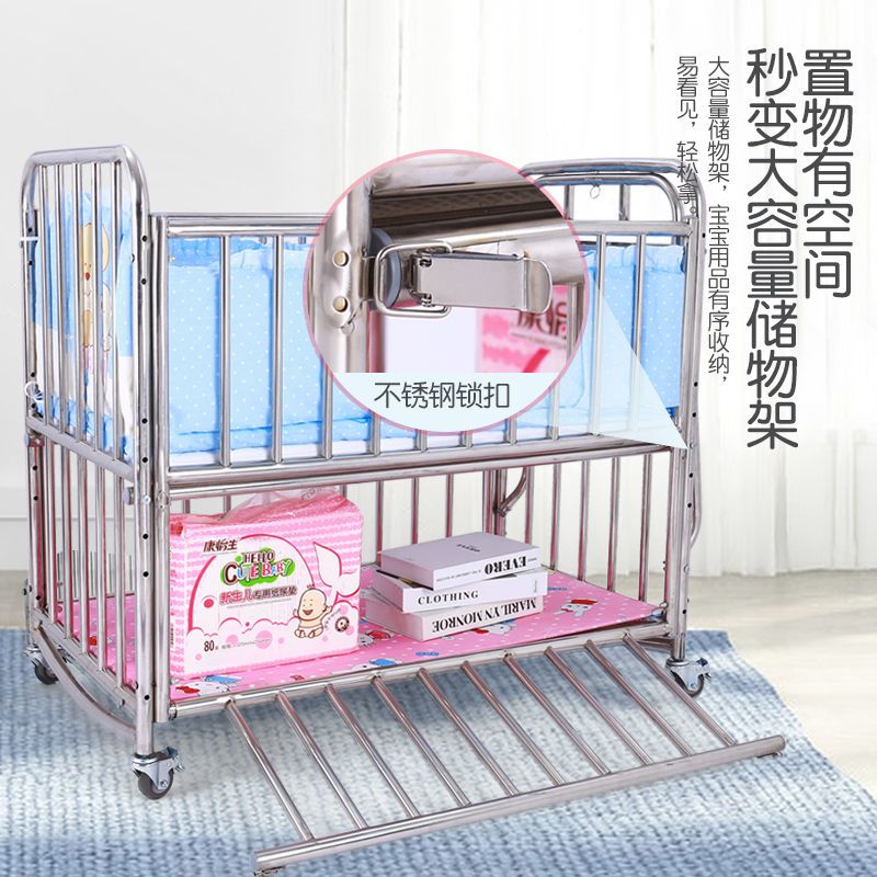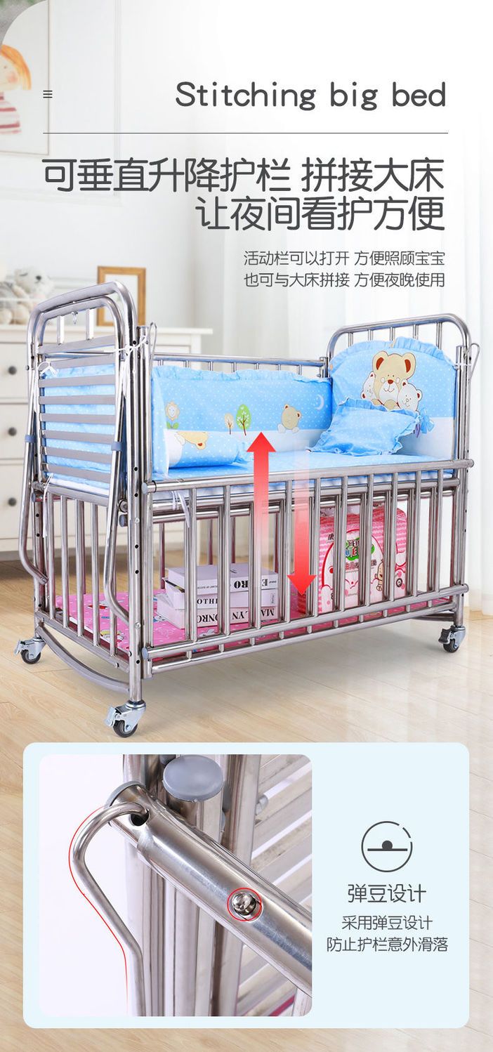 不锈钢婴儿床拼接大床摇篮床新生儿宝宝床铁艺婴儿床可移动带蚊帐