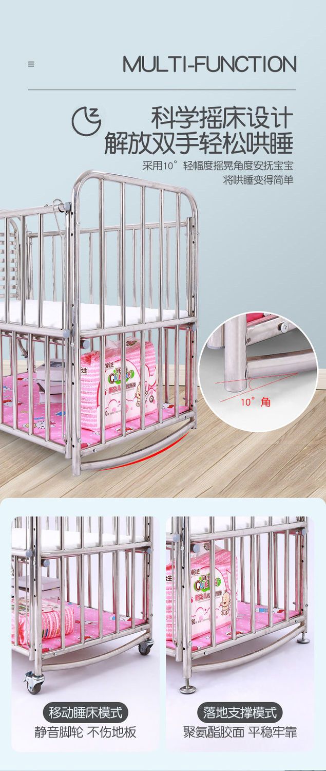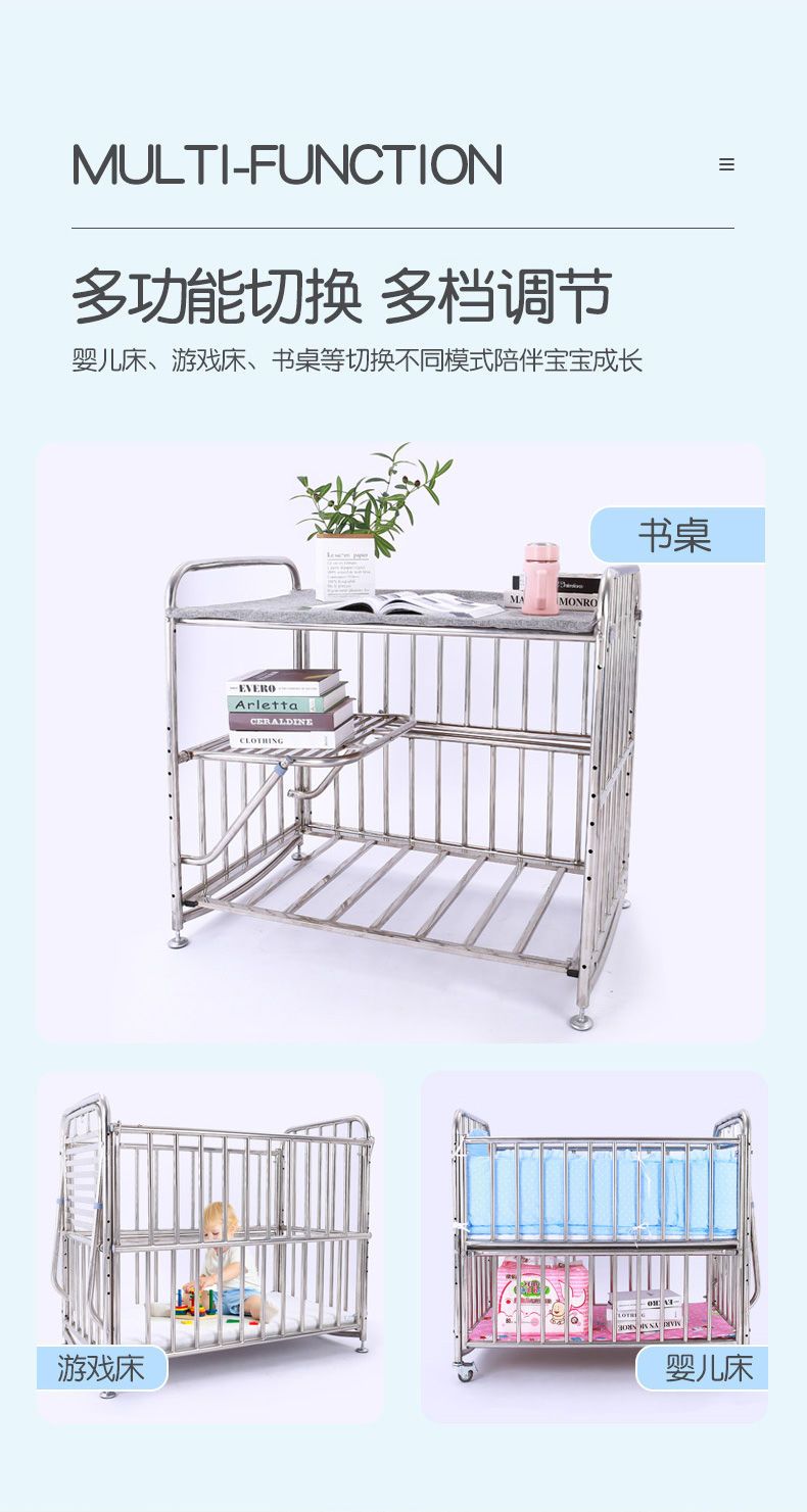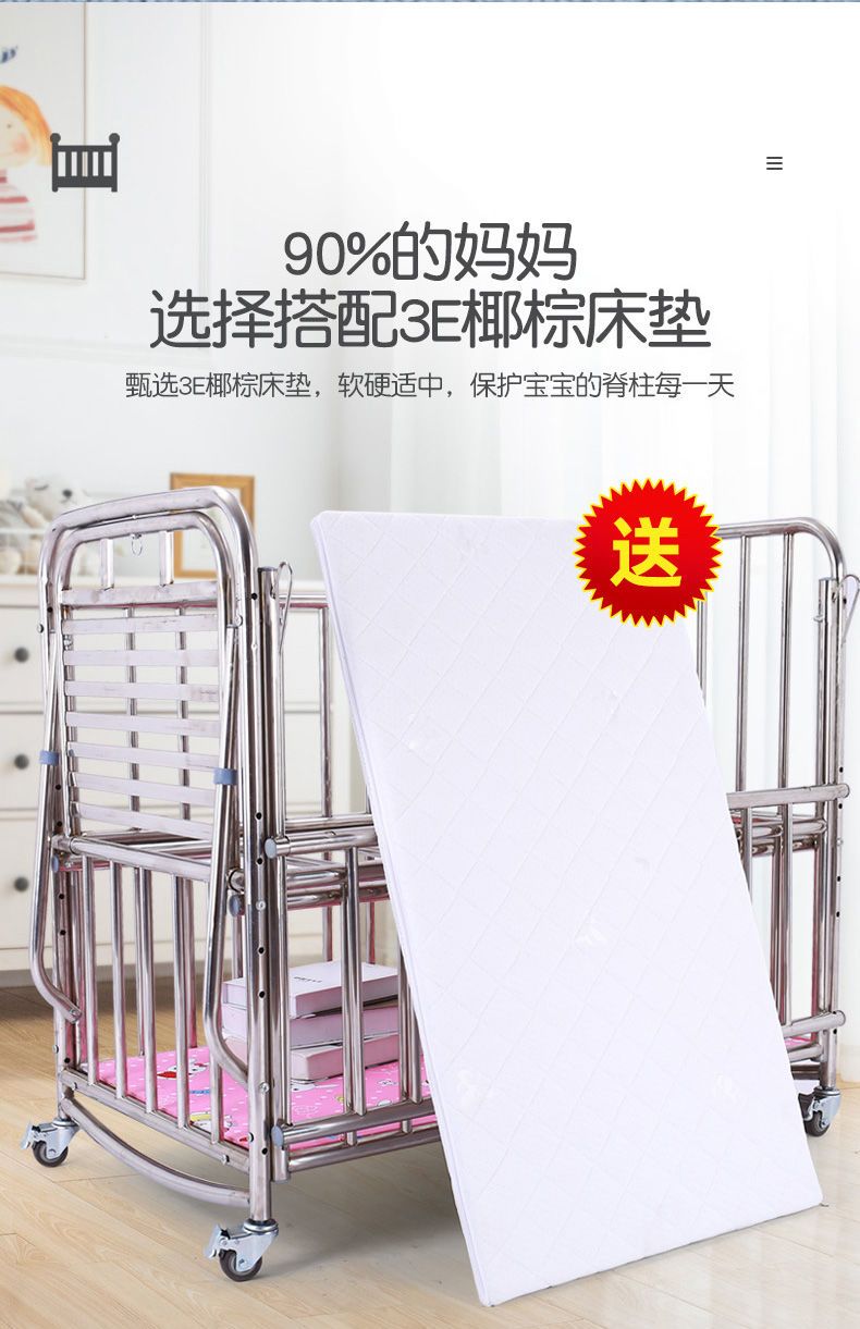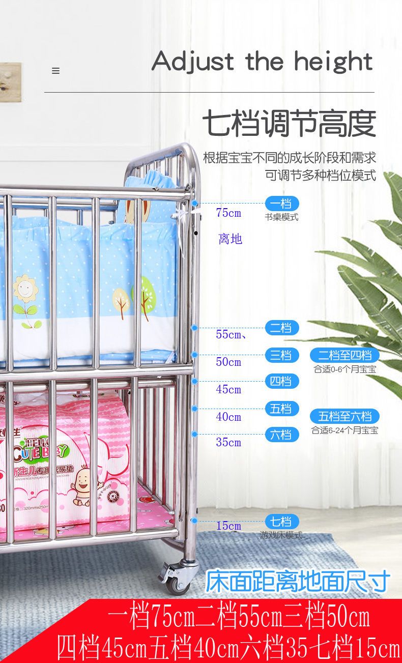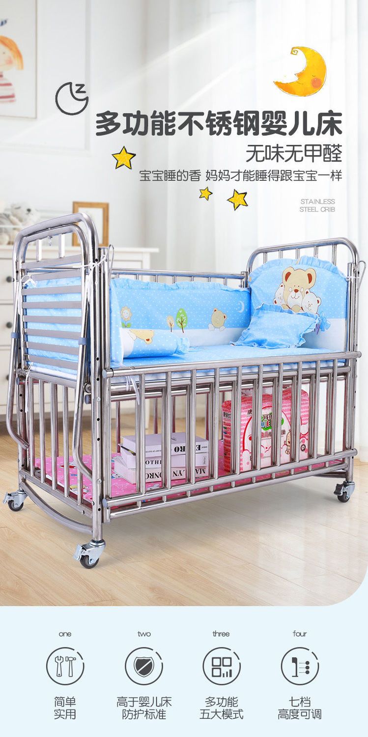 不锈钢婴儿床拼接大床摇篮床新生儿宝宝床铁艺婴儿床可移动带蚊帐