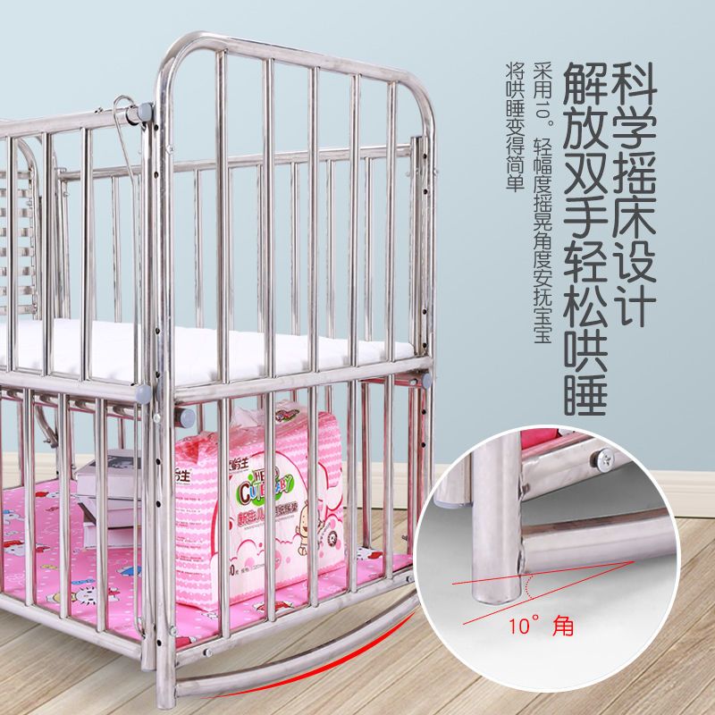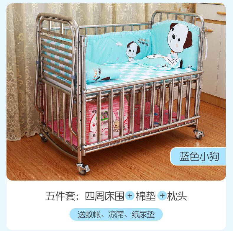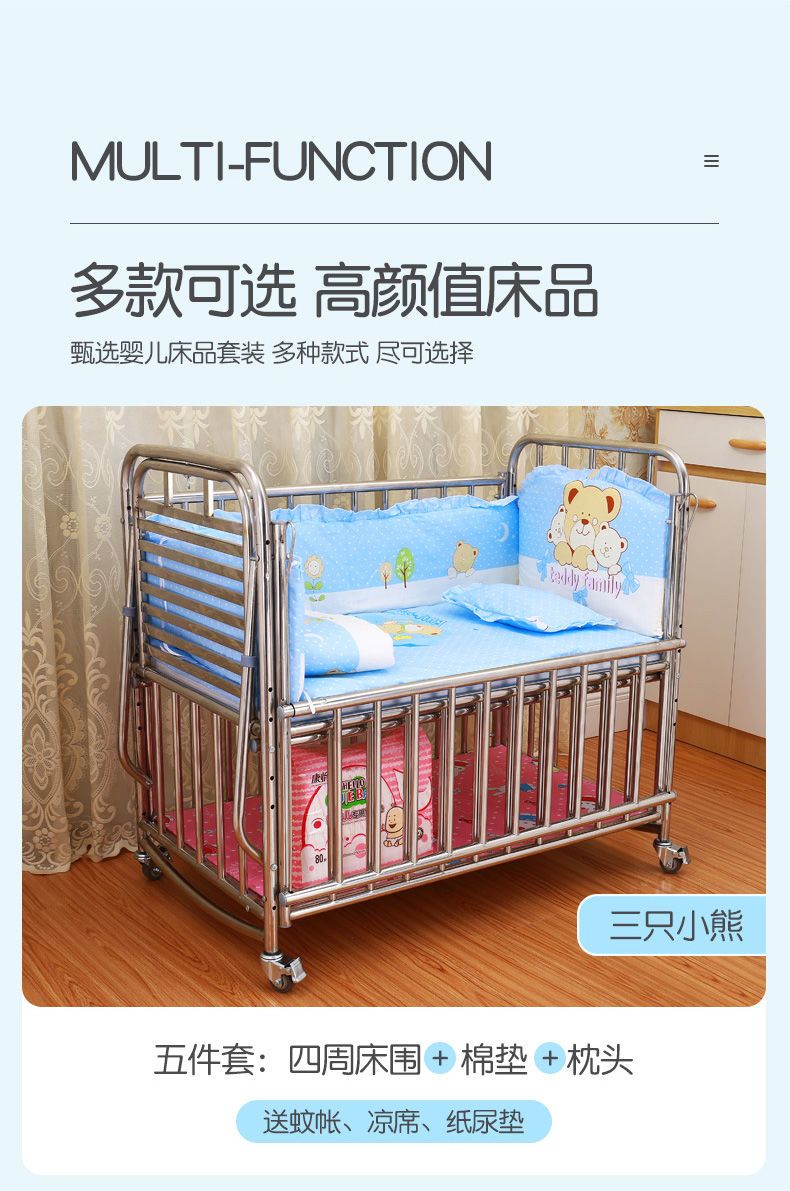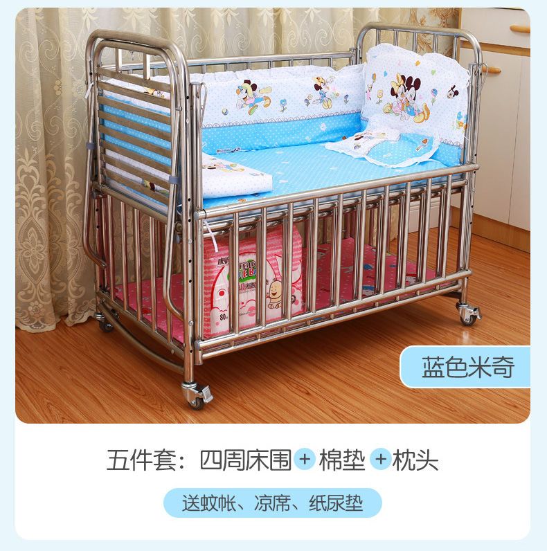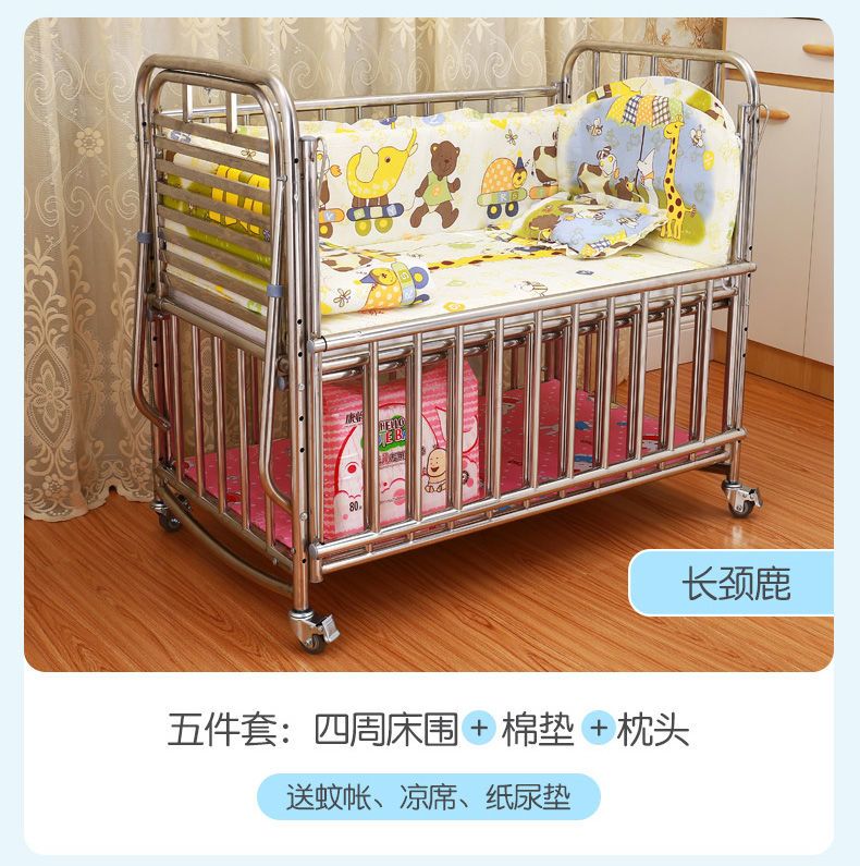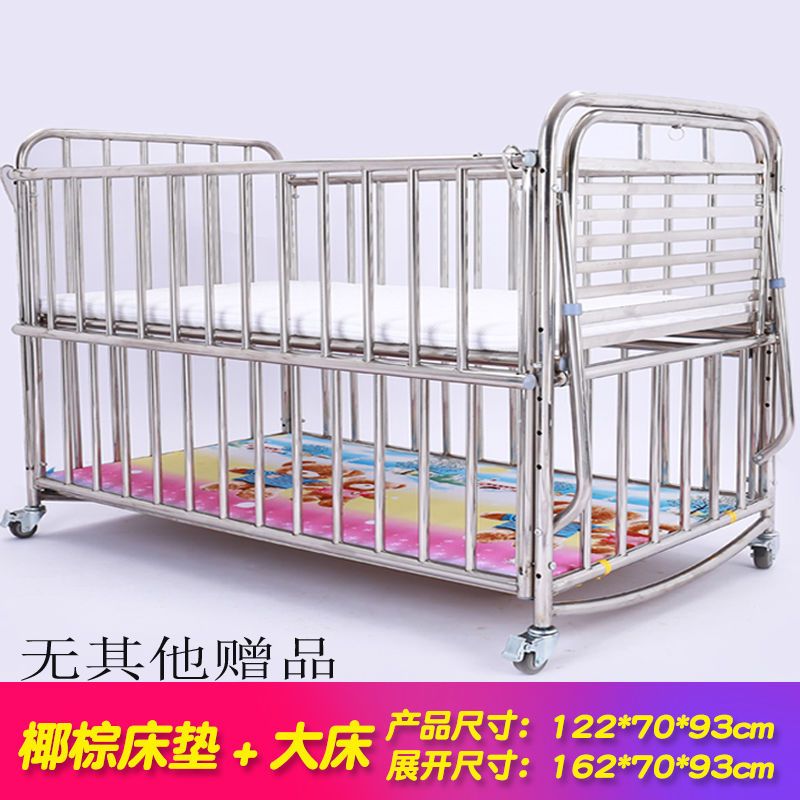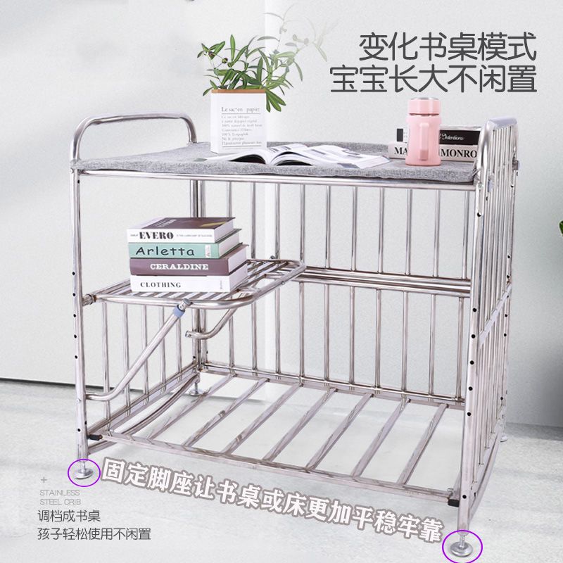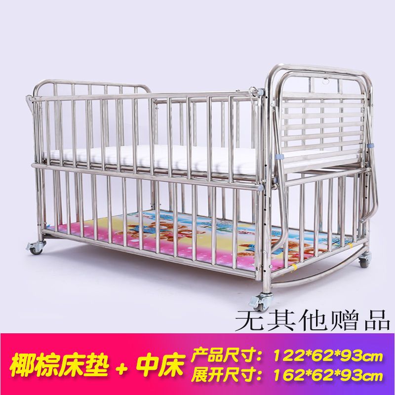 不锈钢婴儿床拼接大床摇篮床新生儿宝宝床铁艺婴儿床可移动带蚊帐
