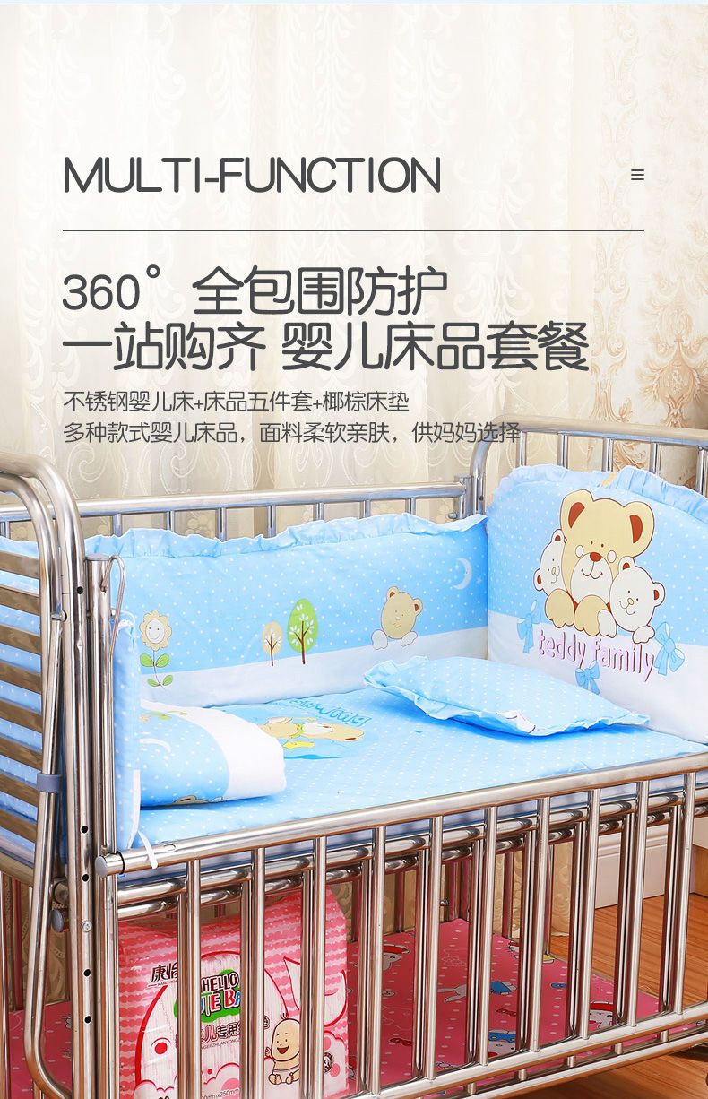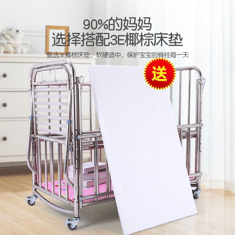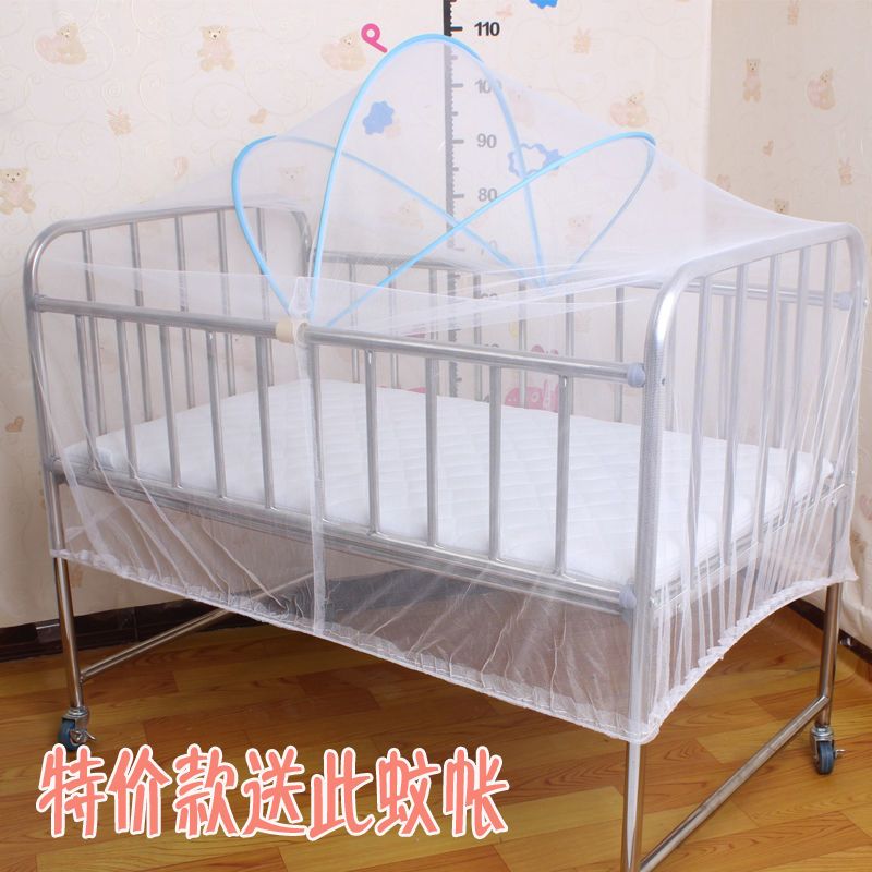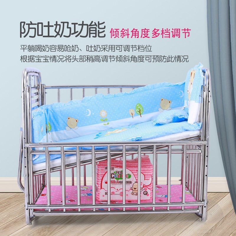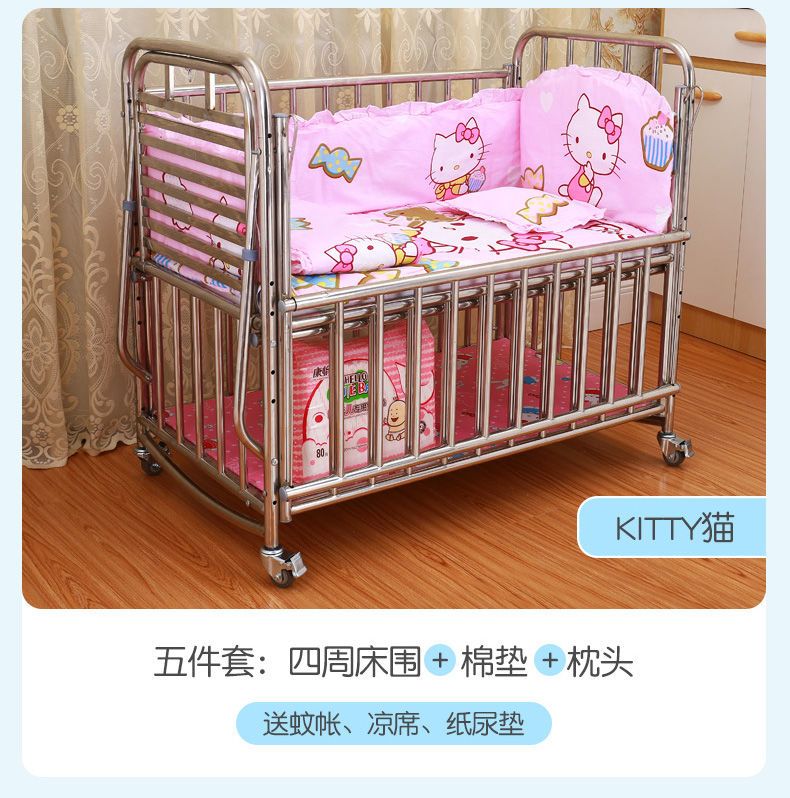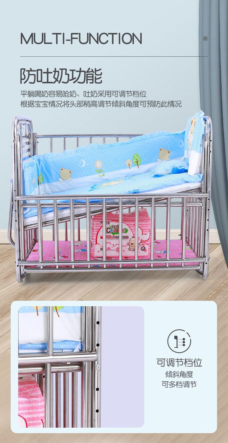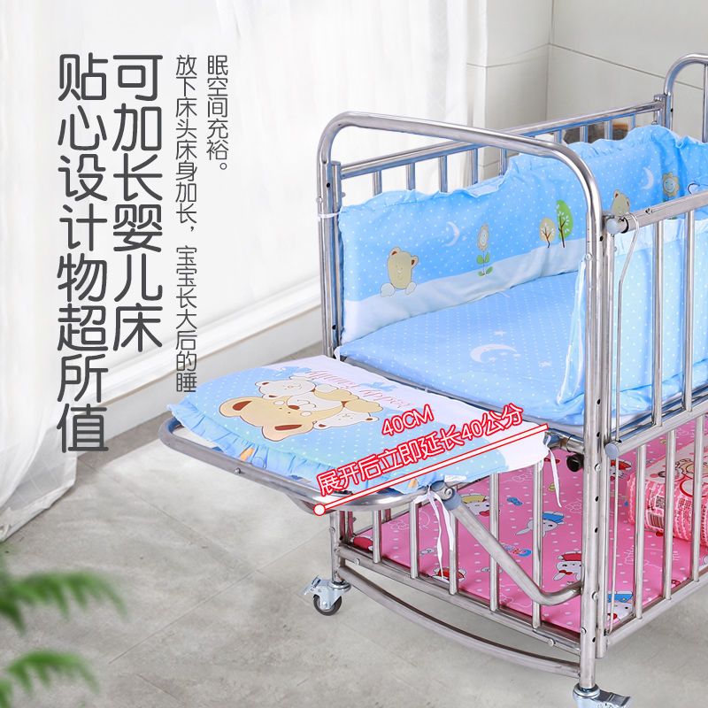 不锈钢婴儿床拼接大床摇篮床新生儿宝宝床铁艺婴儿床可移动带蚊帐