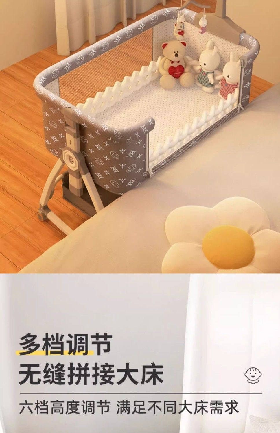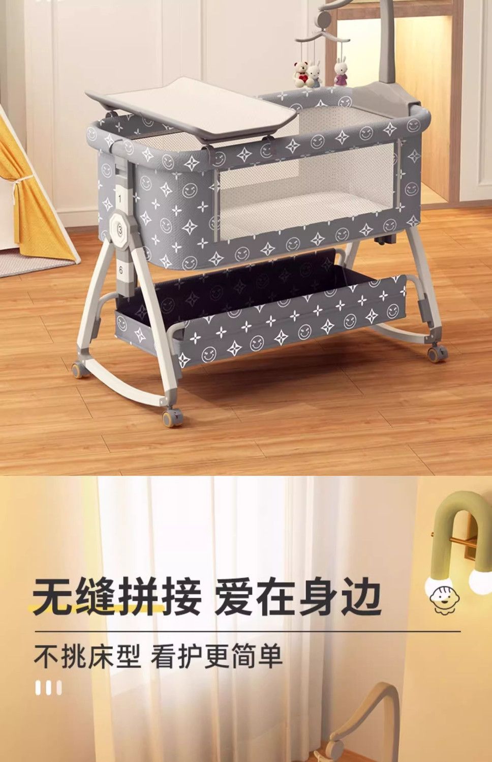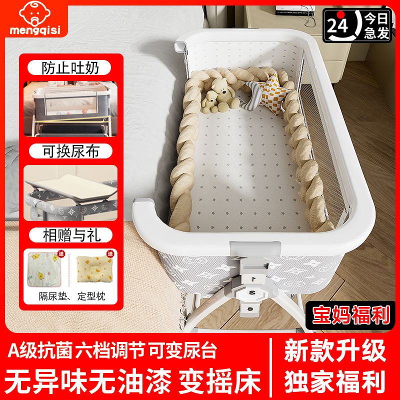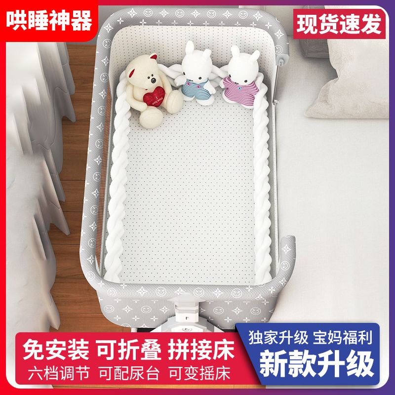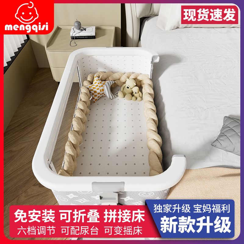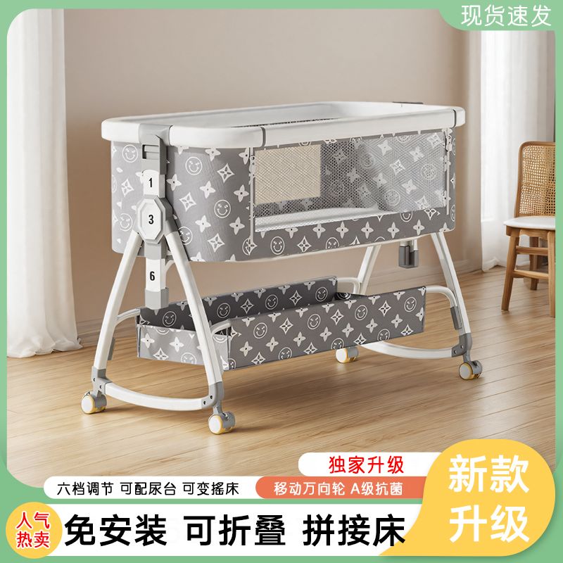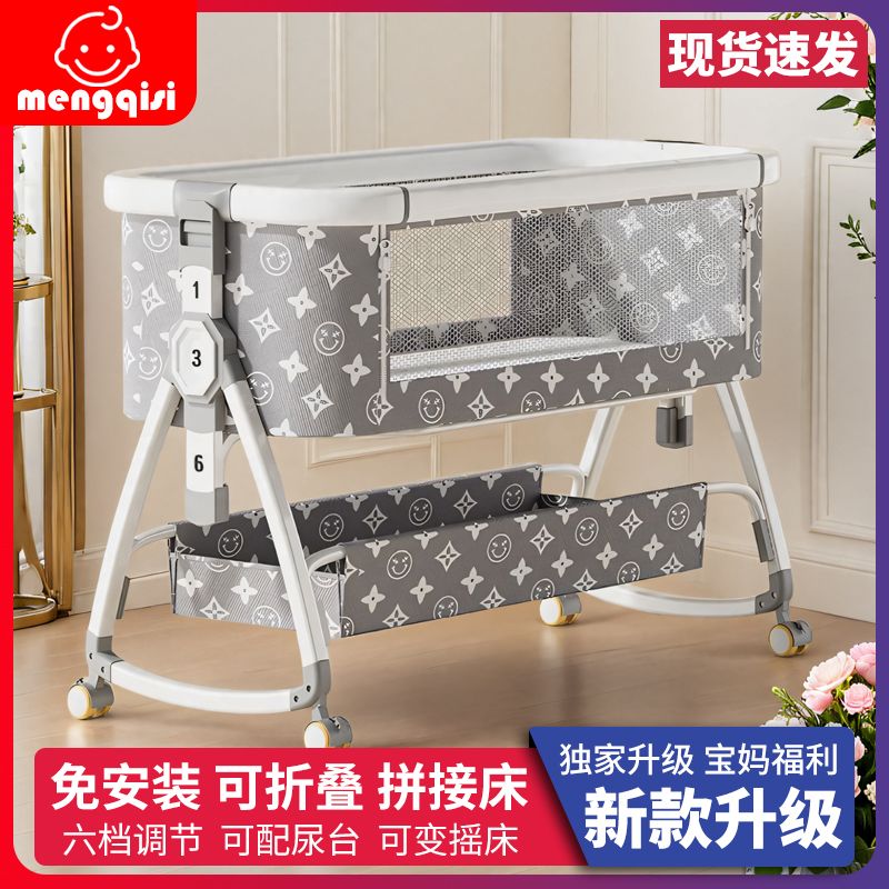 涂鸦铝合金婴儿床无缝拼接大床多功能新生儿童床便携式移动可折叠
