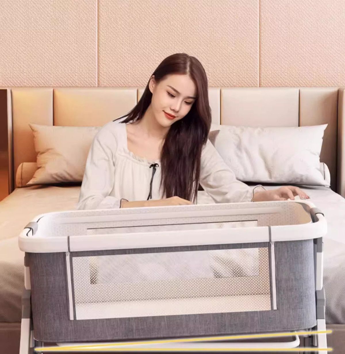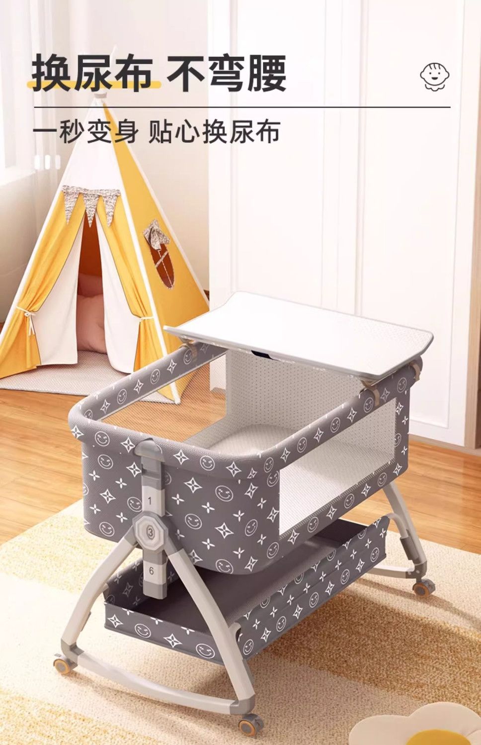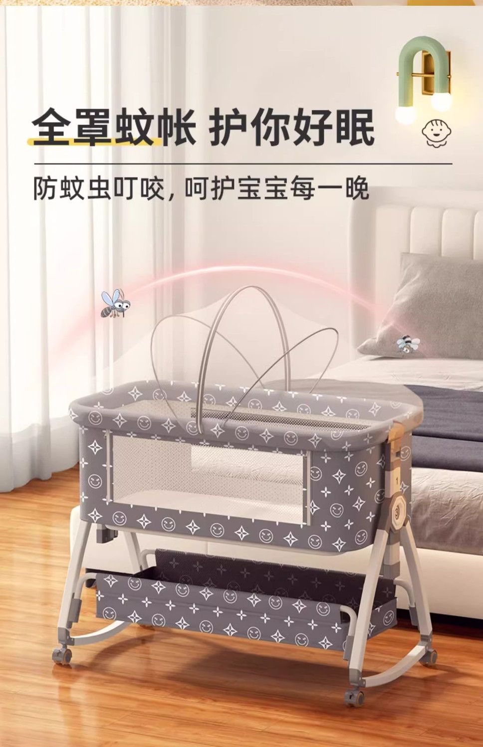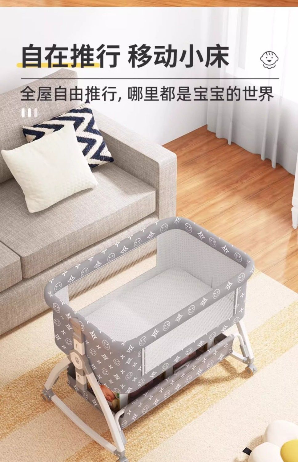 涂鸦铝合金婴儿床无缝拼接大床多功能新生儿童床便携式移动可折叠