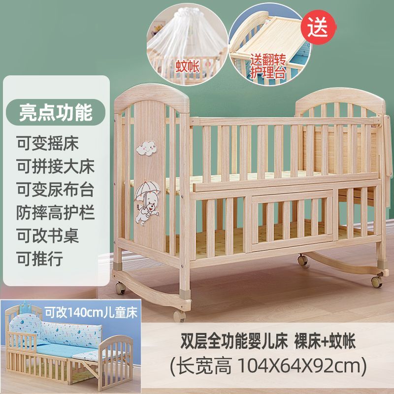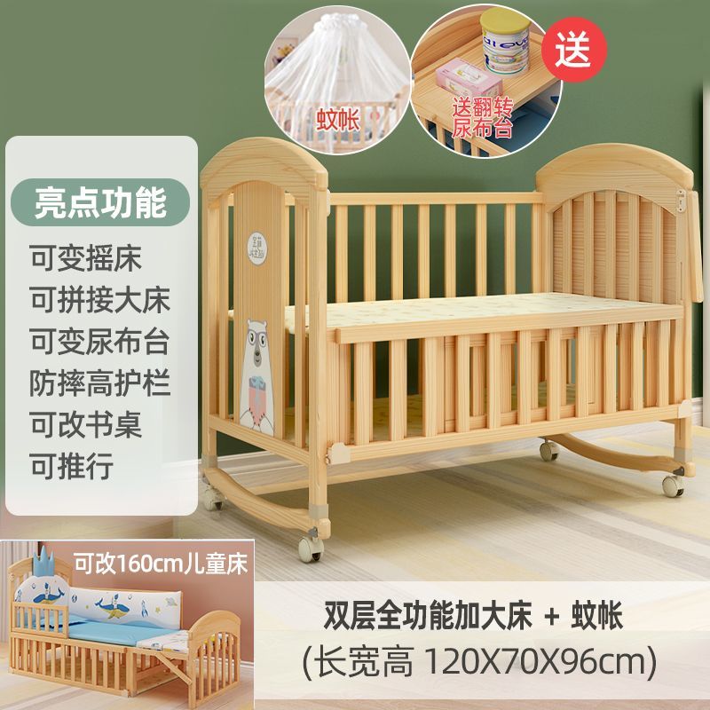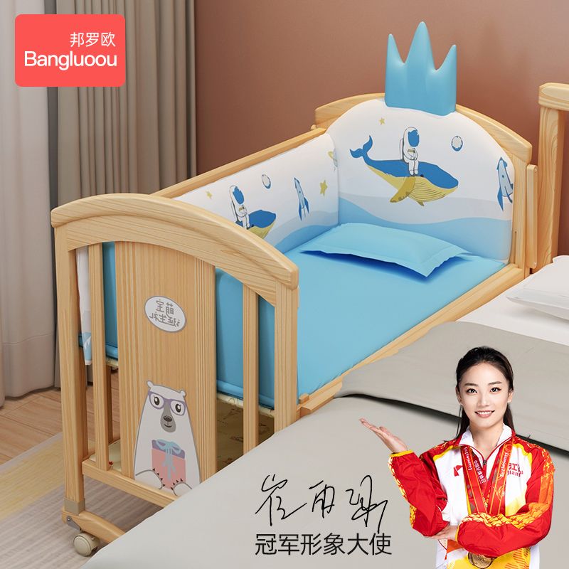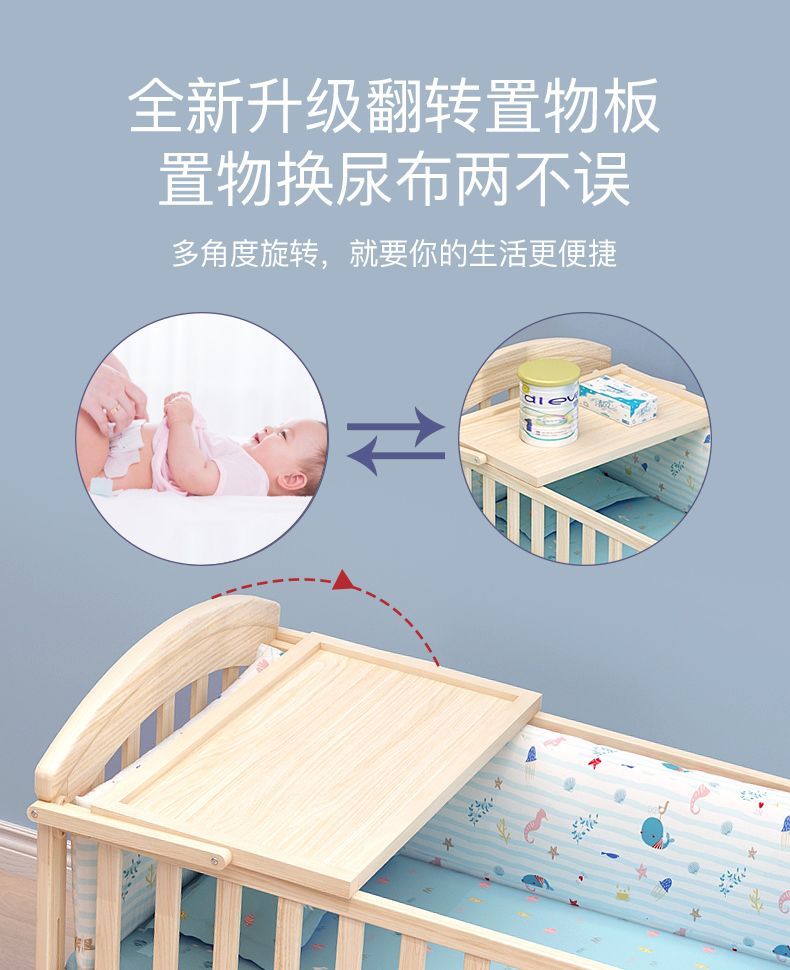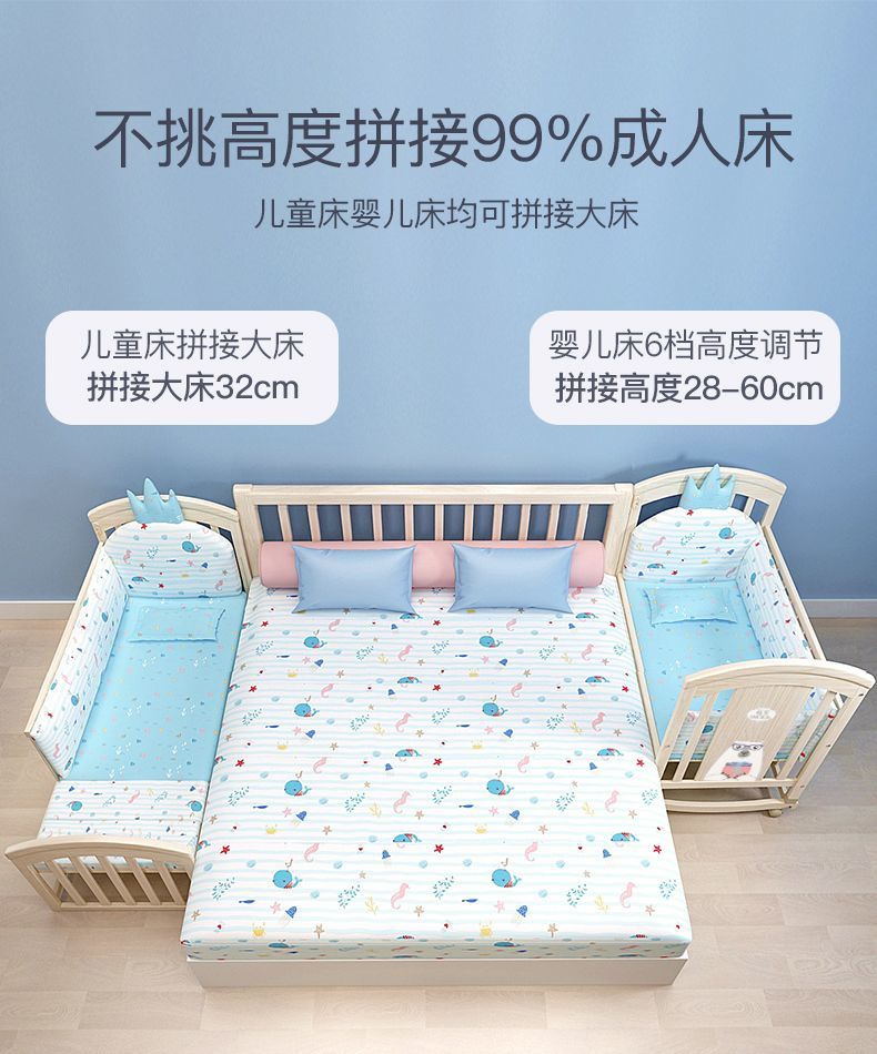 实木婴儿床拼接大床可移动宝宝床儿童小孩床多功能摇篮床睡床