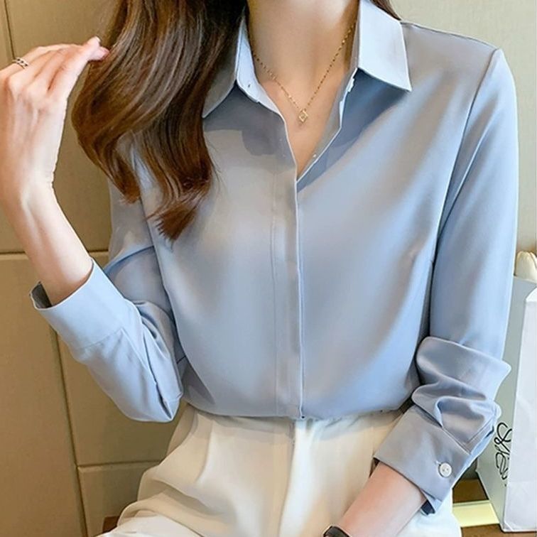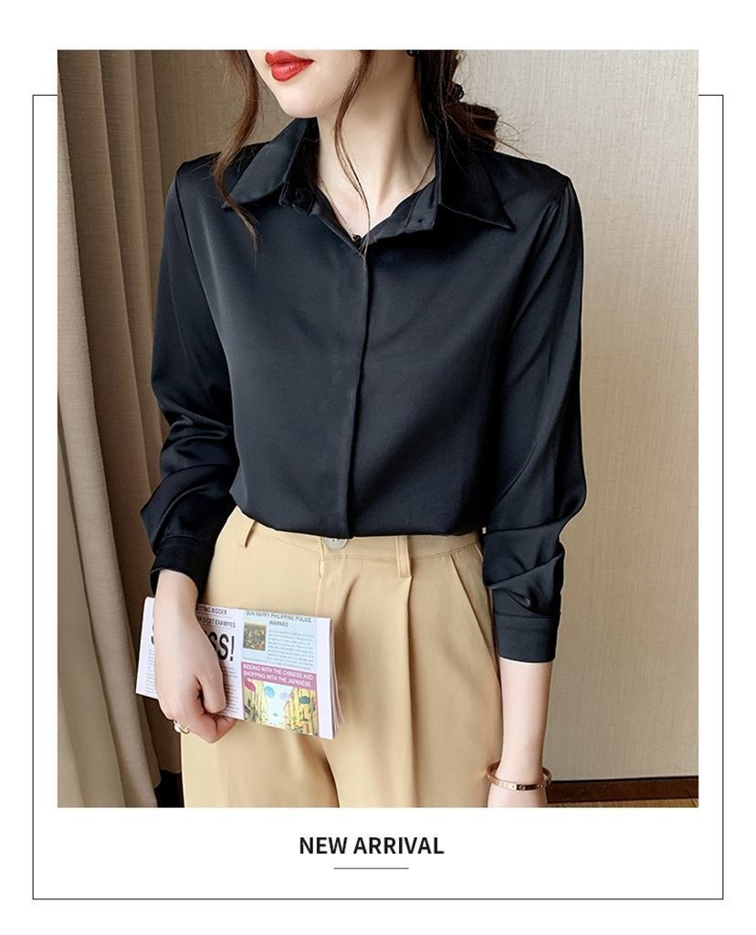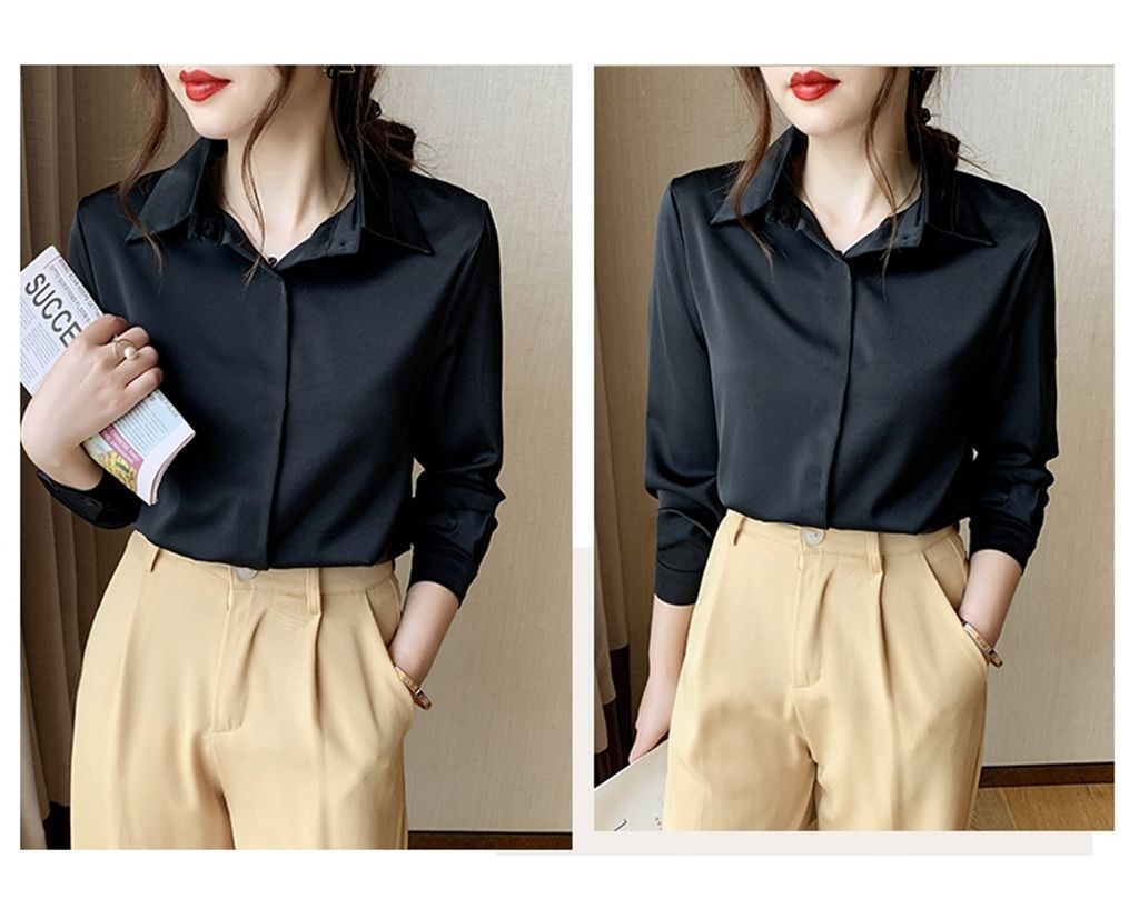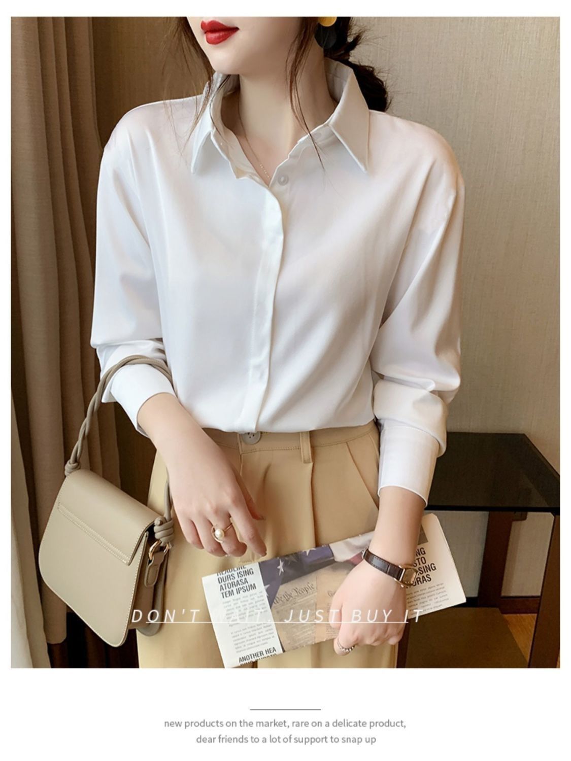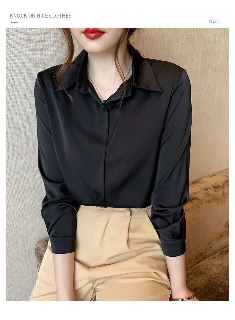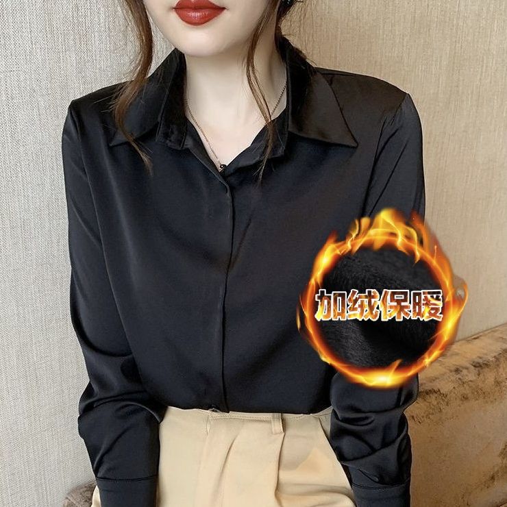 2024秋冬季免烫抗皱防皱长袖黑色衬衫女正式大学生工作服打底衬衣