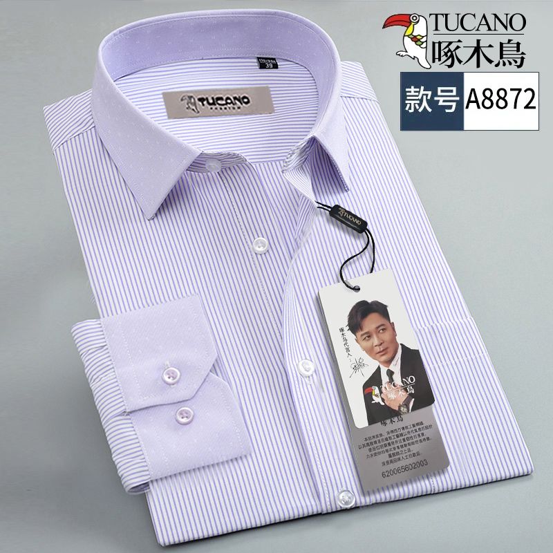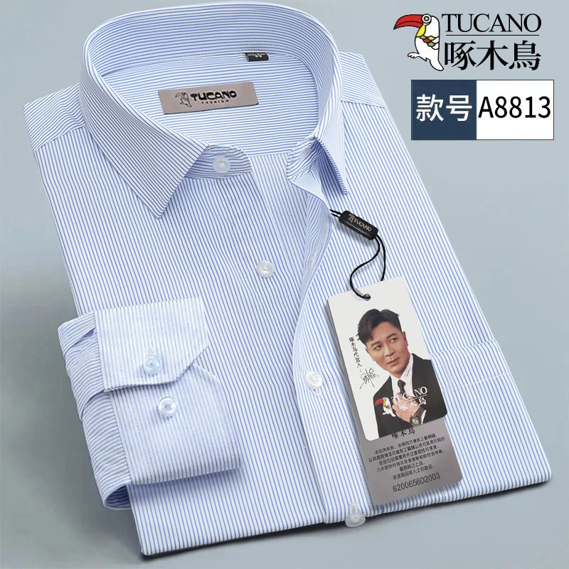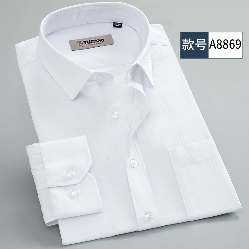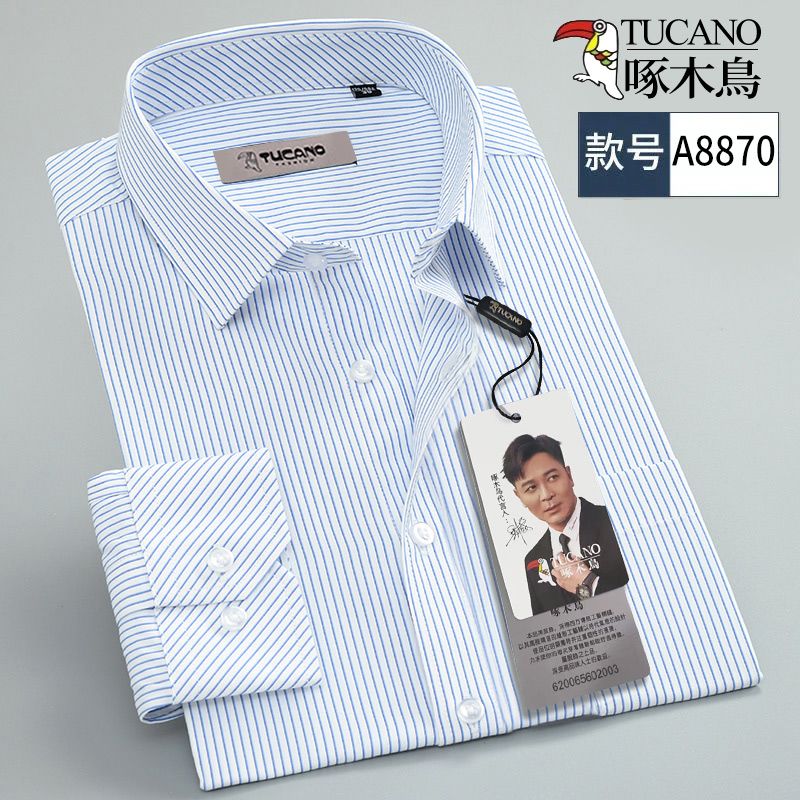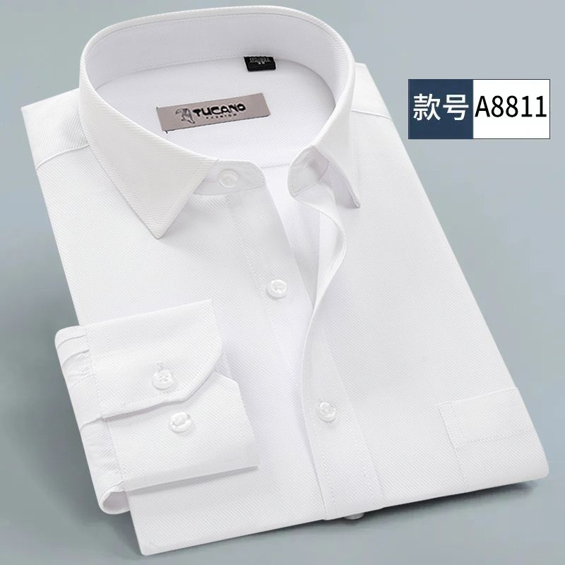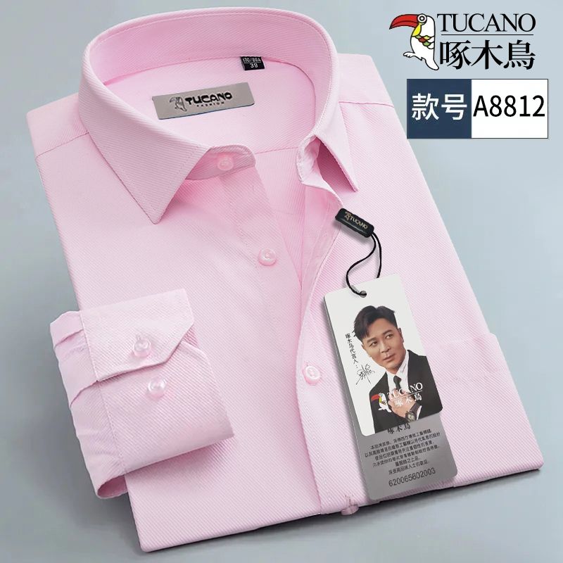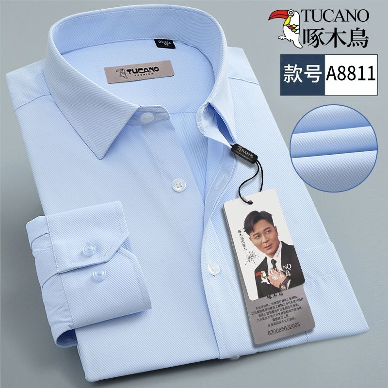 啄木鸟白衬衫男长袖商务休闲免烫中年短袖职业上班工装衬衣