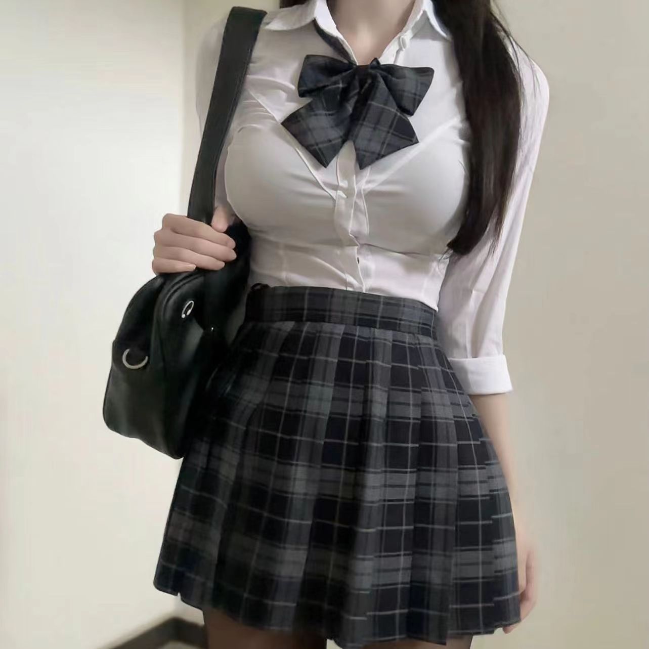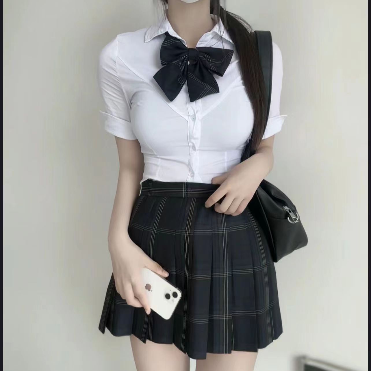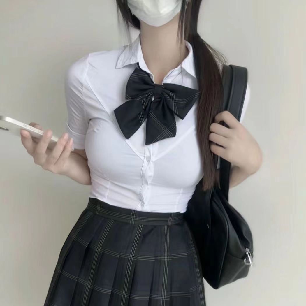 jk制服收腰衬衫上衣短袖原创正版学院风修身显瘦白色衬衣辣妹套装