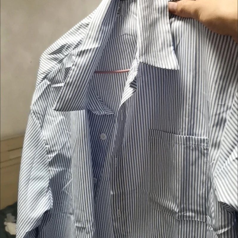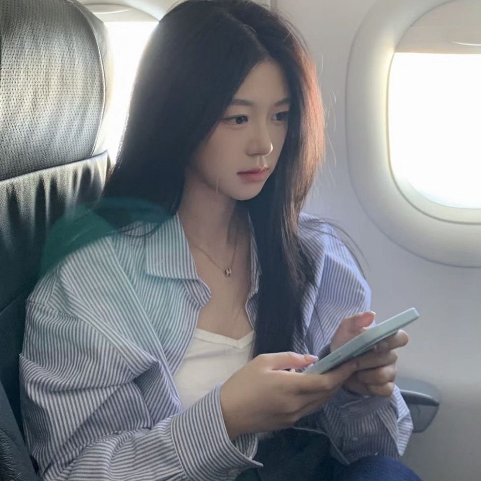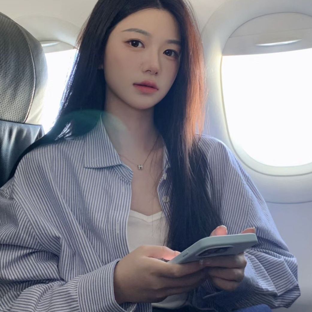 2024韩系甜美温柔蓝色条纹衬衣女春秋季外穿百搭宽松显瘦衬衫外套