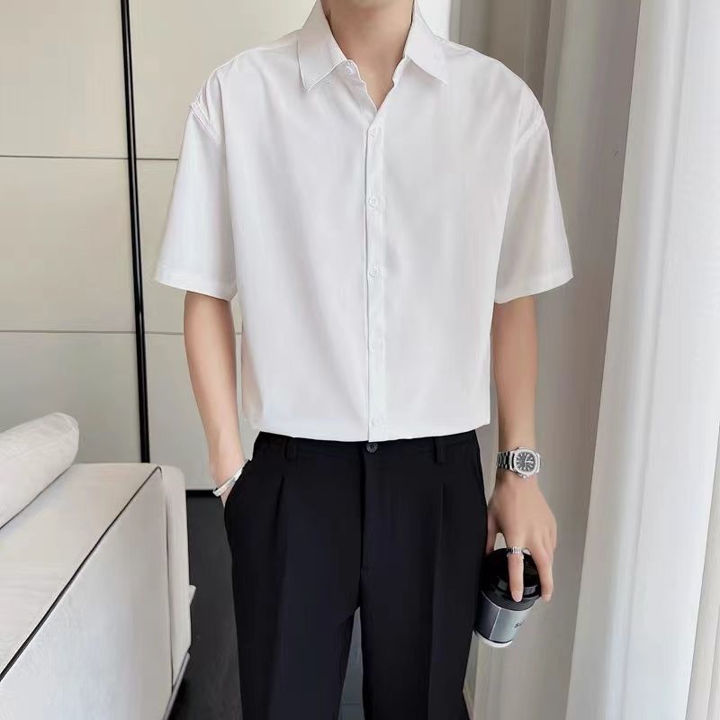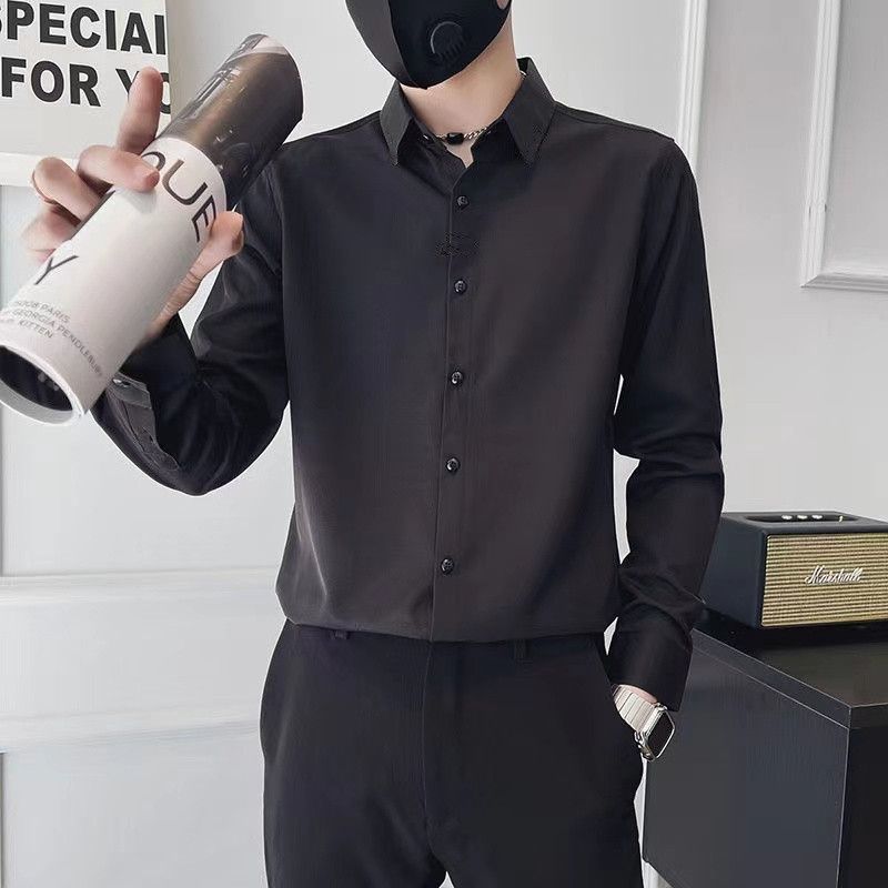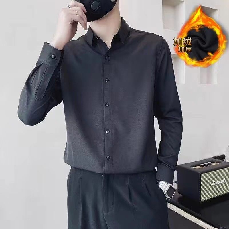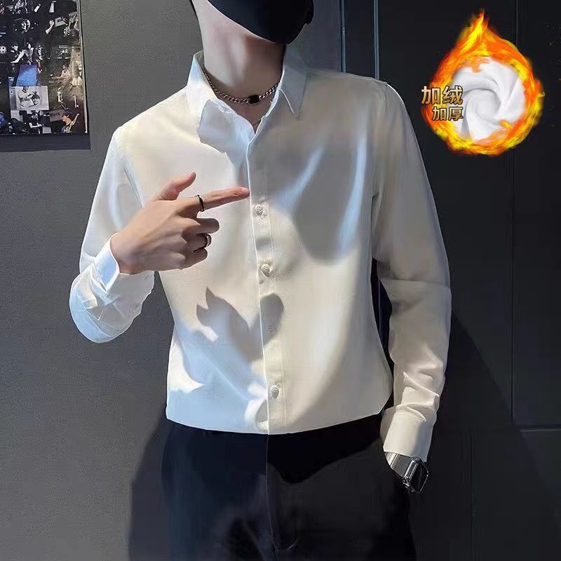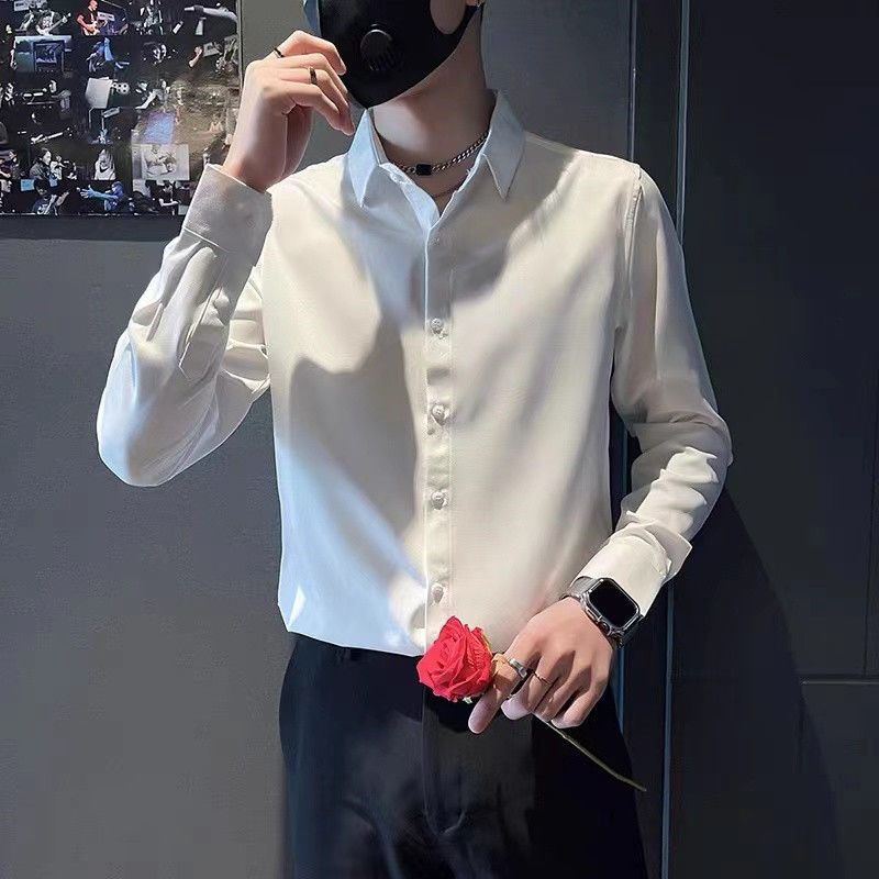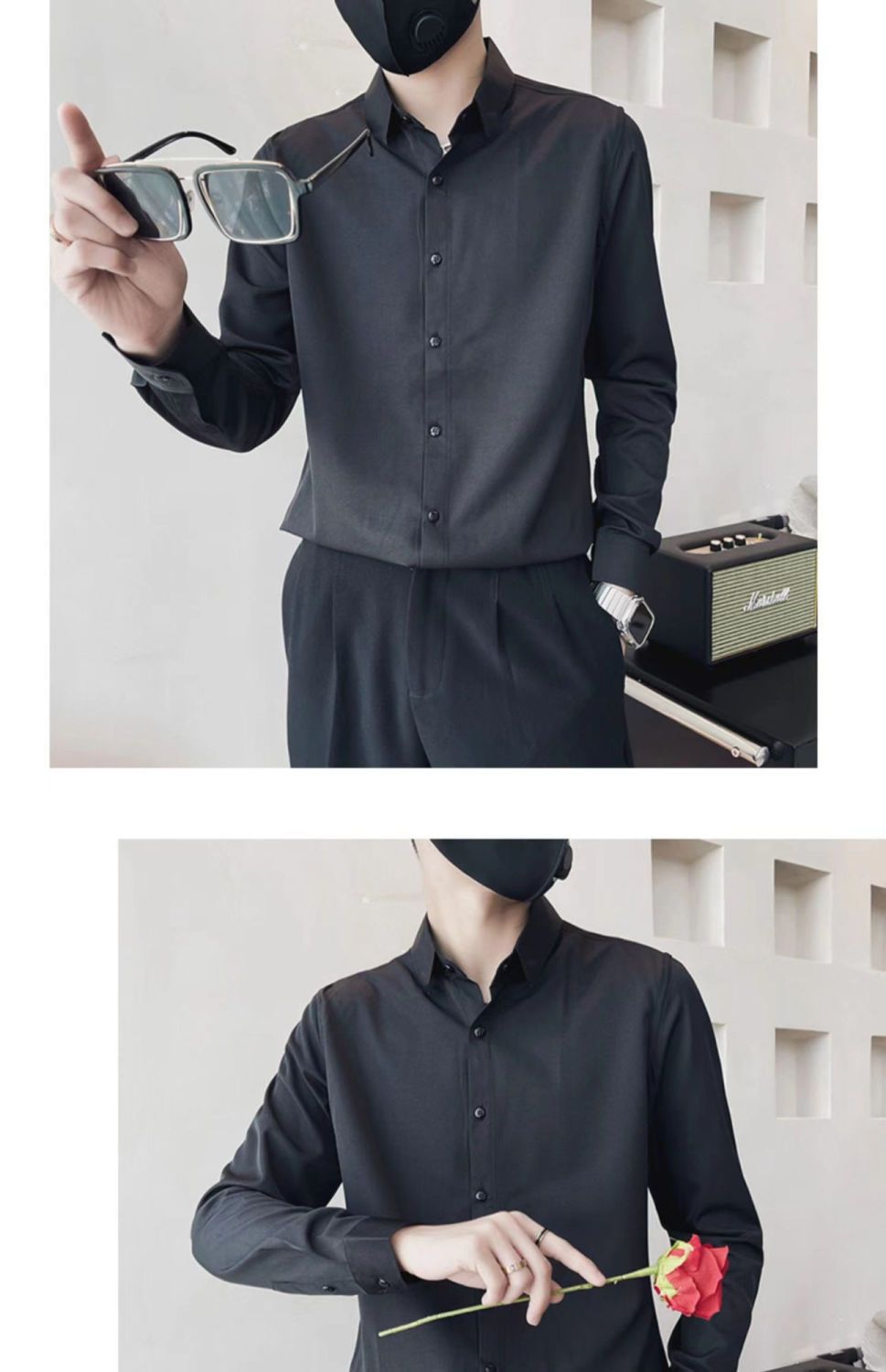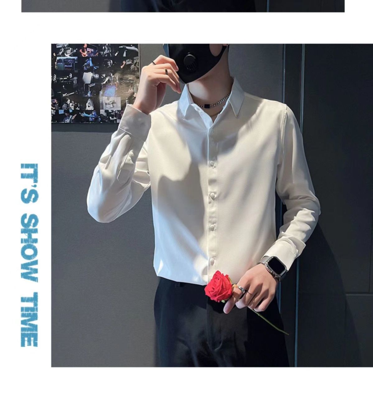 弹力长袖衬衫男韩版修身薄款纯色男士抗皱免烫青年白衬衣外套工装