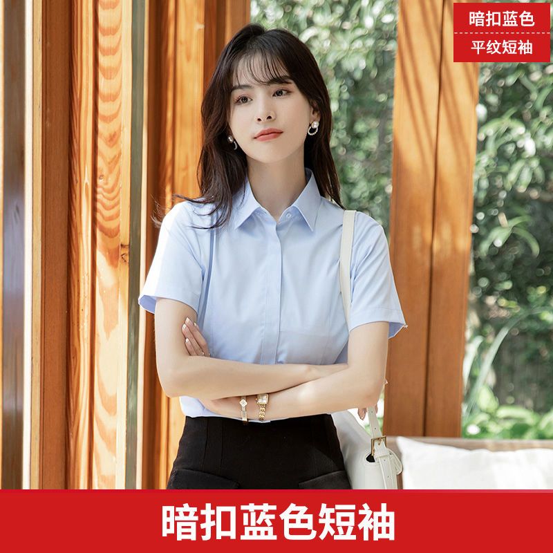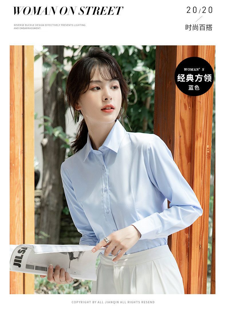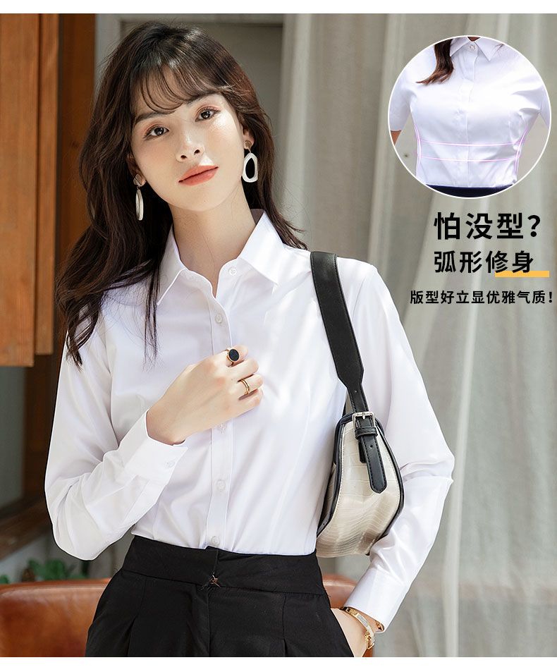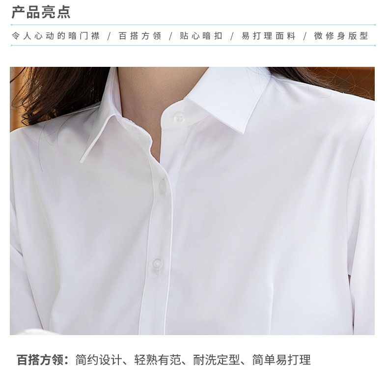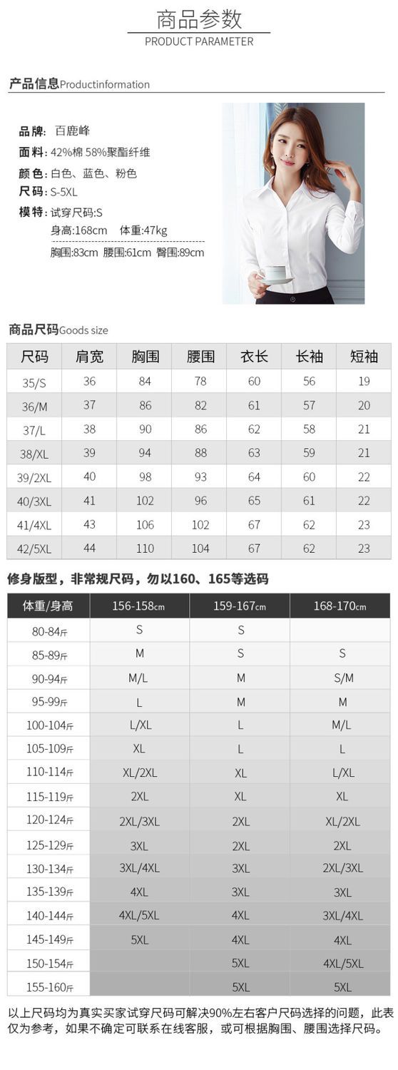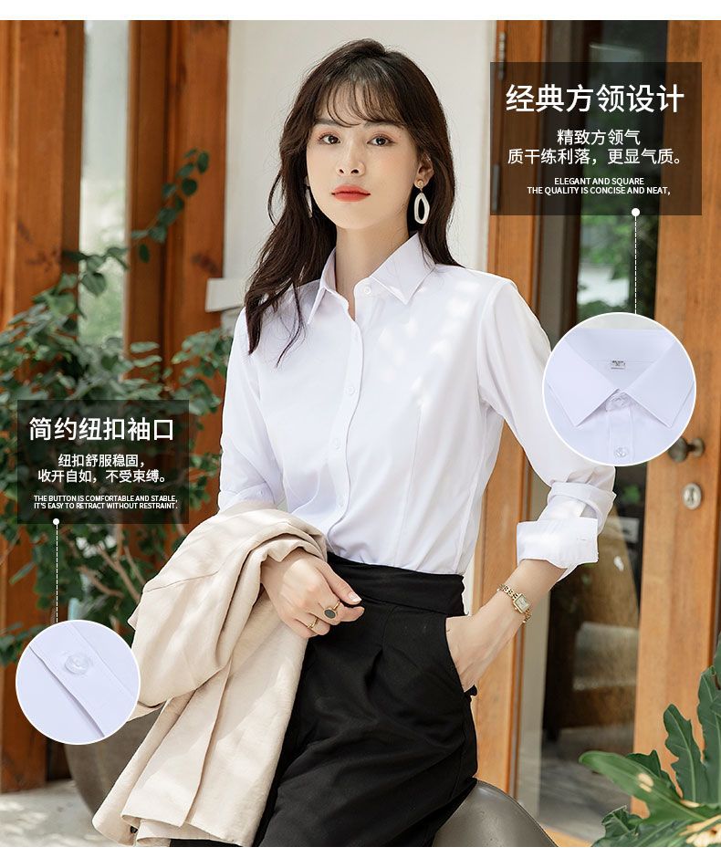 百鹿峰春秋新款白衬衫女方领长袖正装职业大码工作服短袖女装衬衣