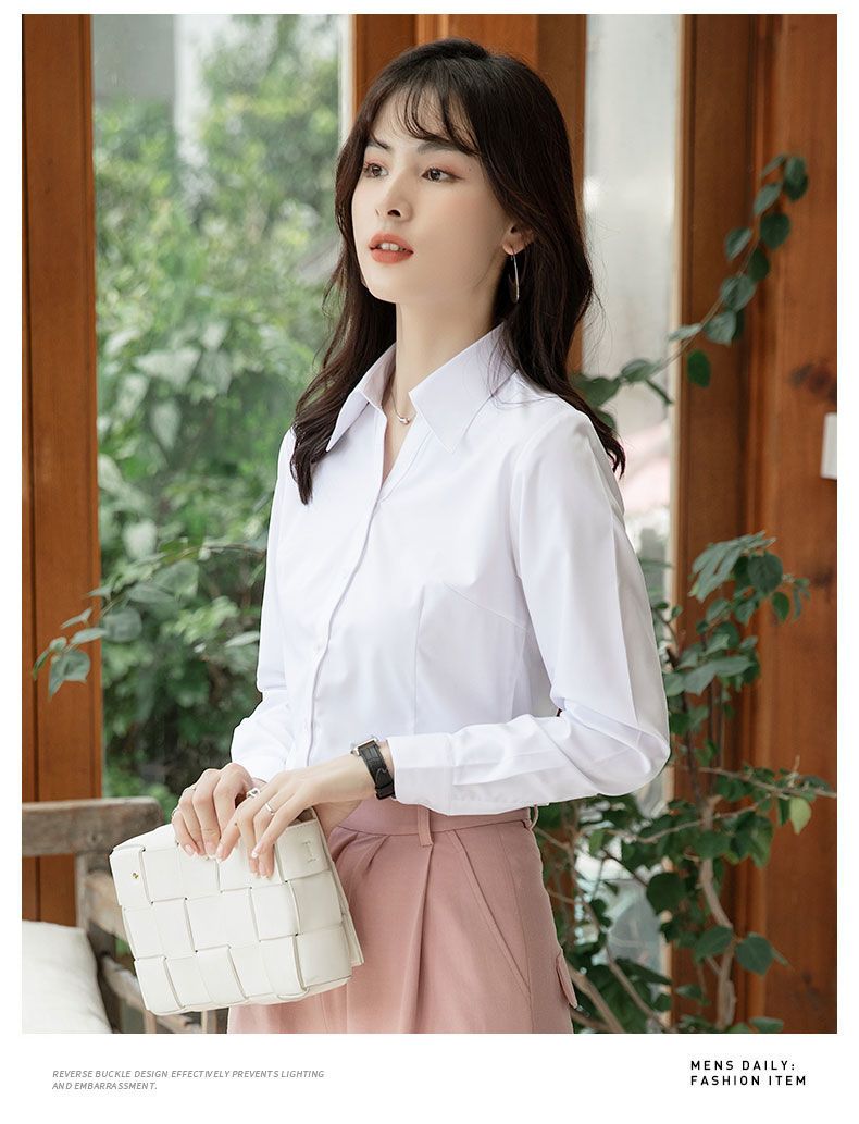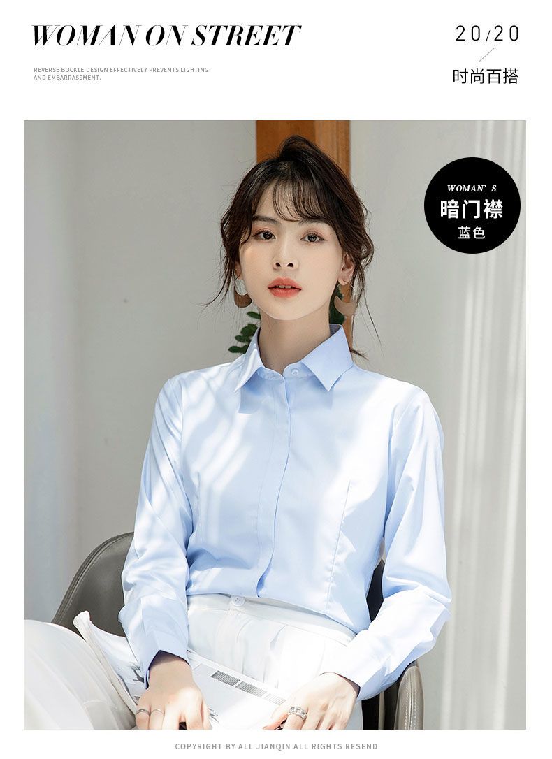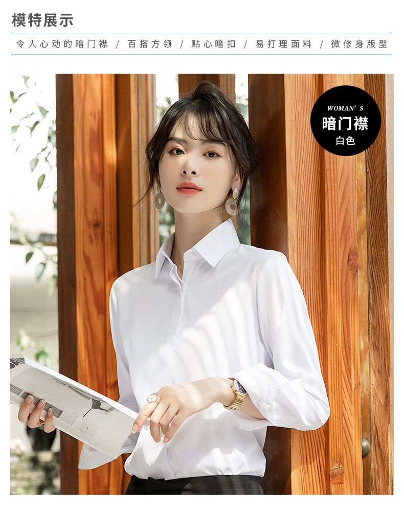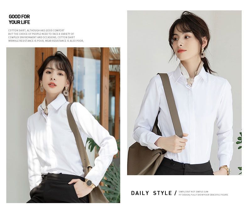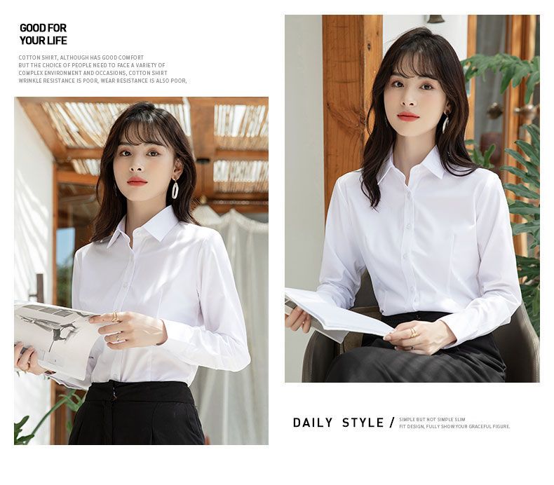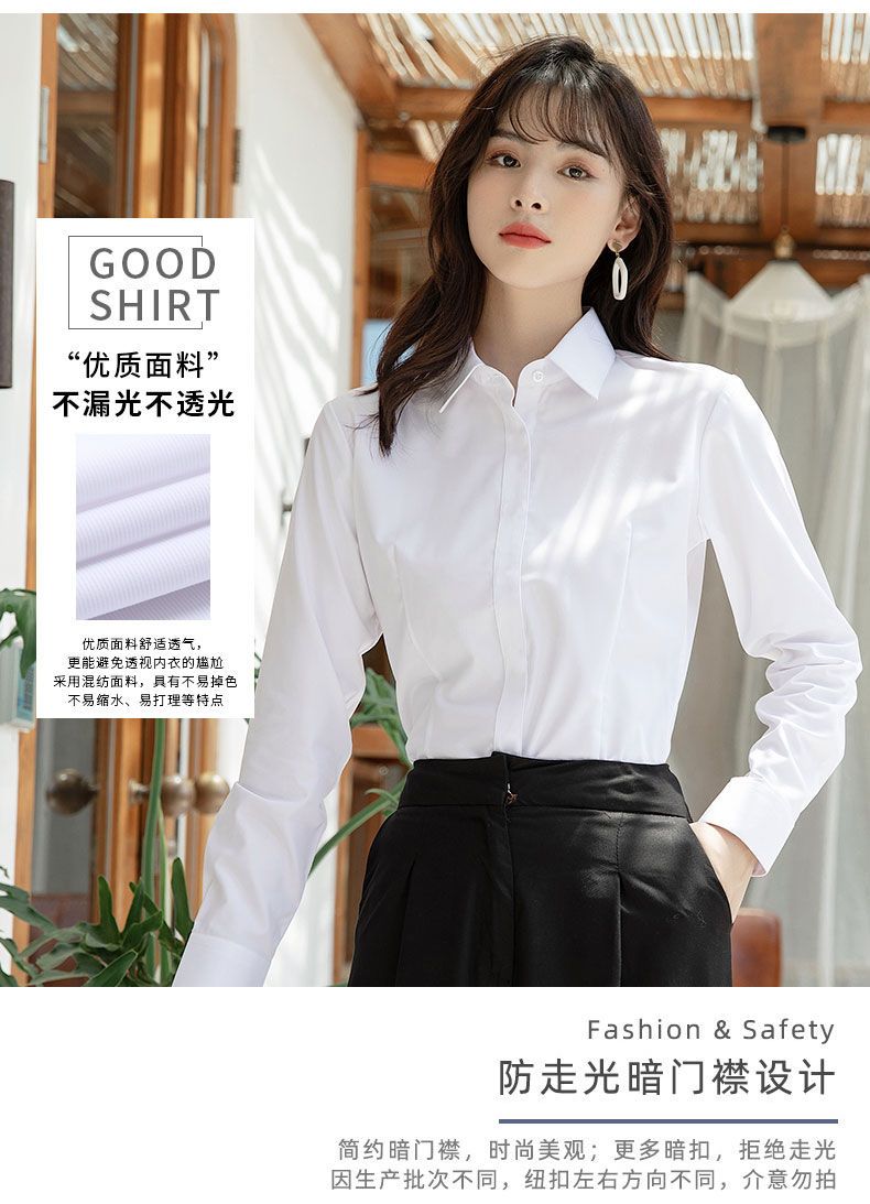 百鹿峰春秋新款白衬衫女方领长袖正装职业大码工作服短袖女装衬衣