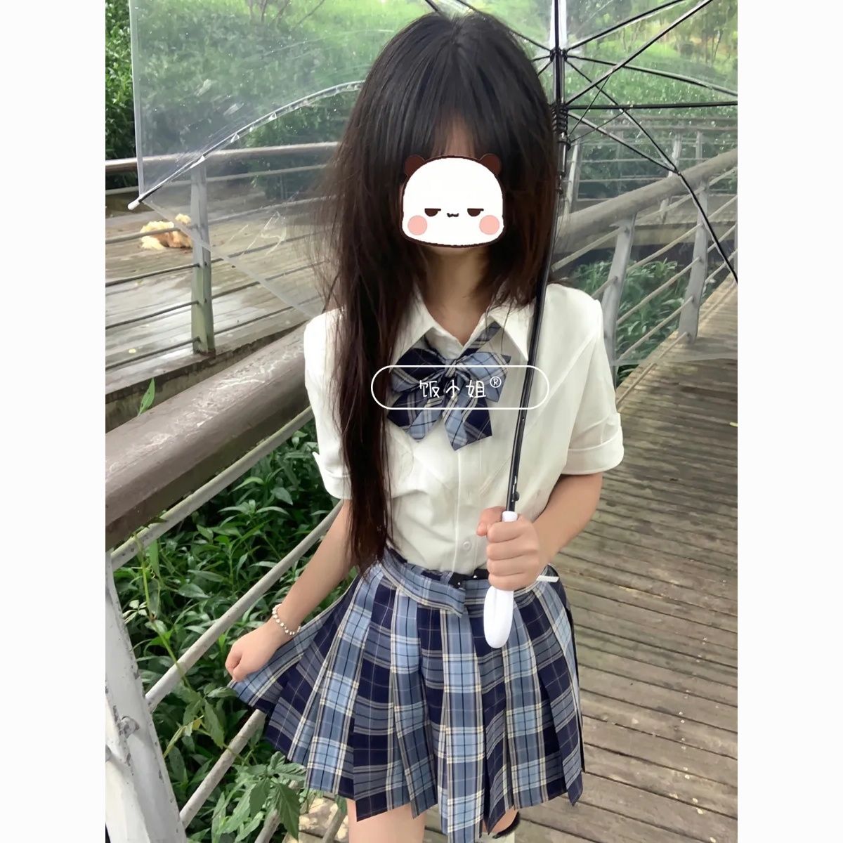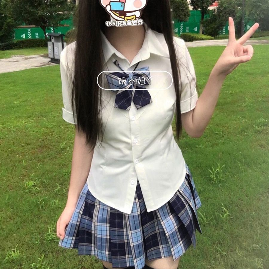JK制服套装女学生收腰衬衫上衣女学院风修身显瘦白色辣妹短袖衬衣