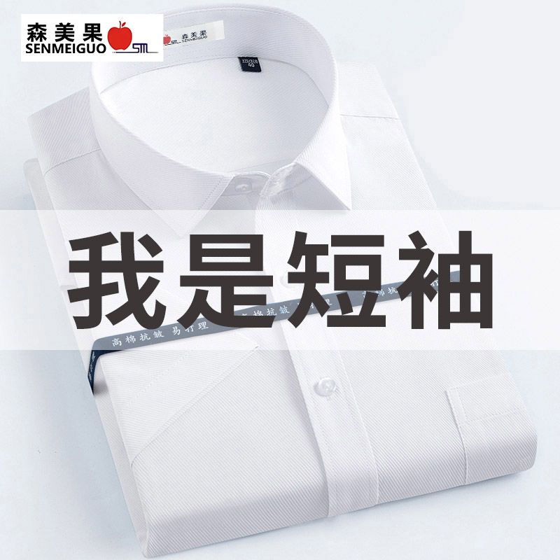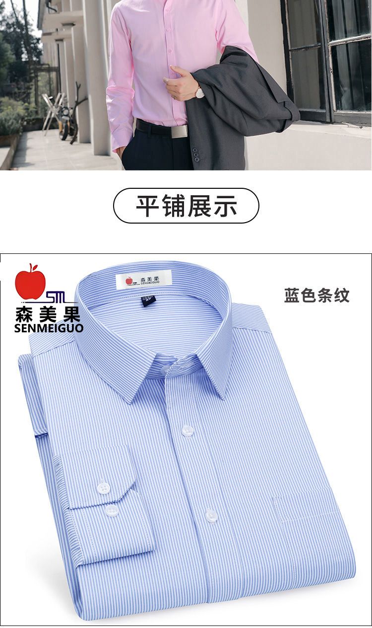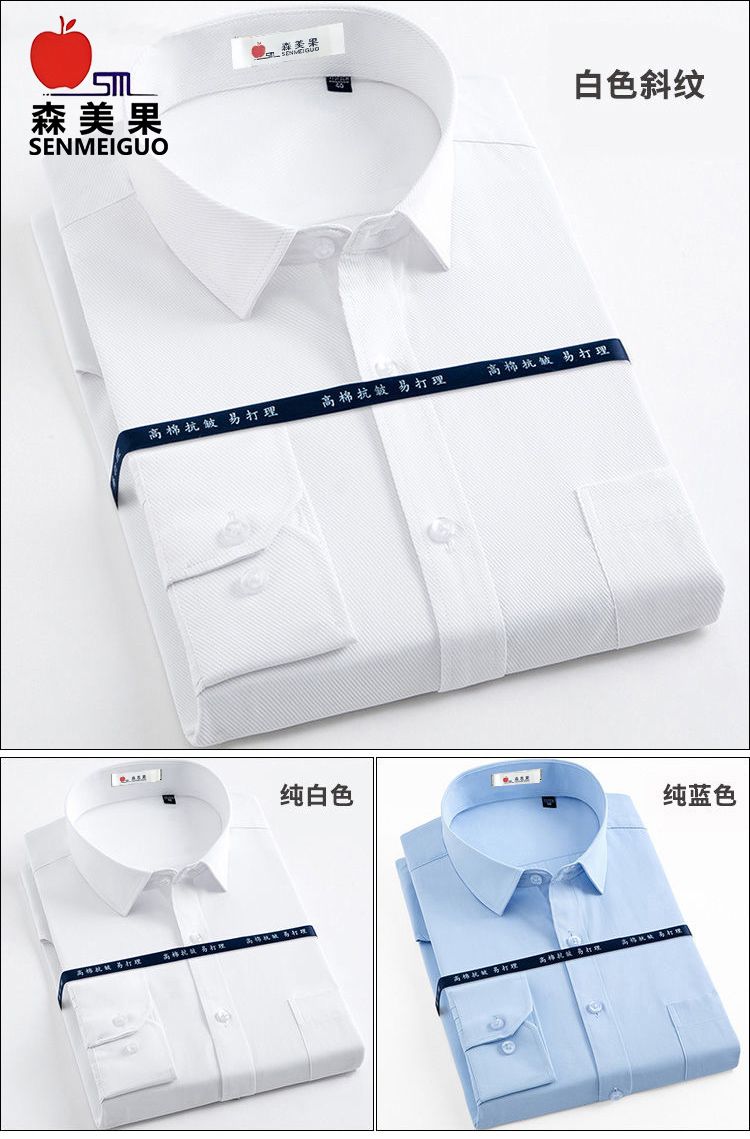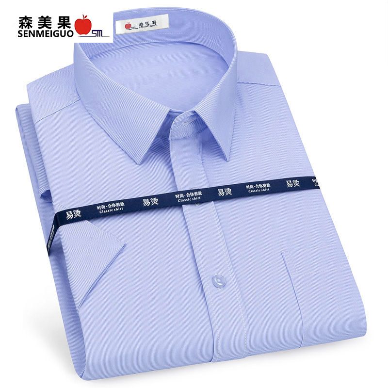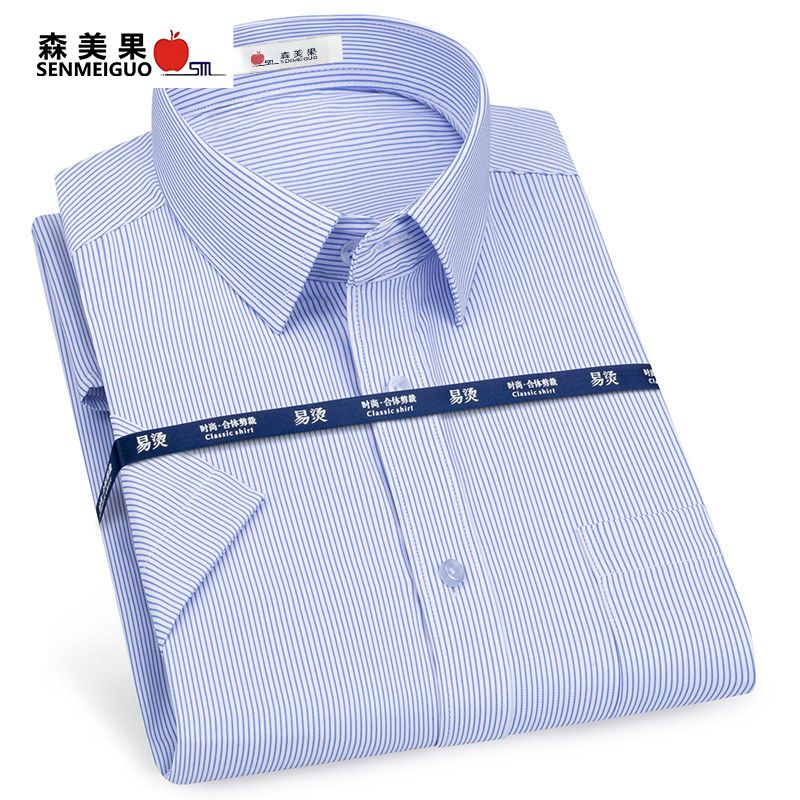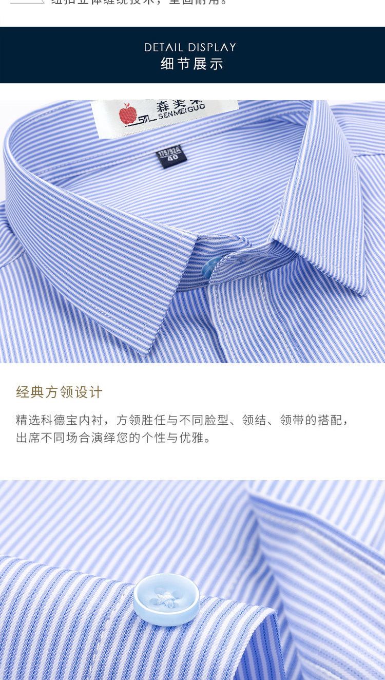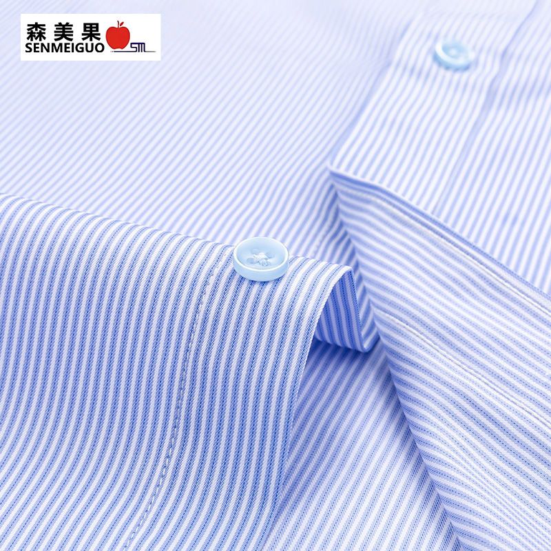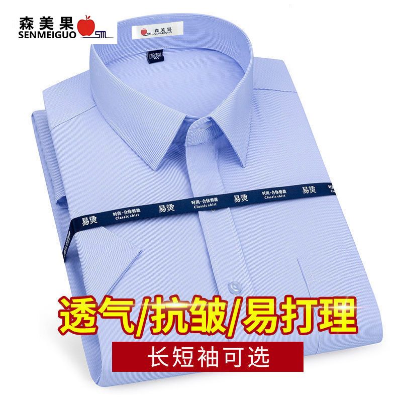 森美果新款男士长袖休闲条纹衬衫短袖商务白色工装免烫抗皱棉衬衣
