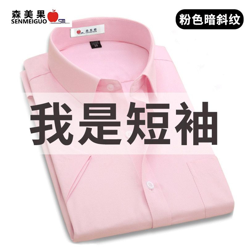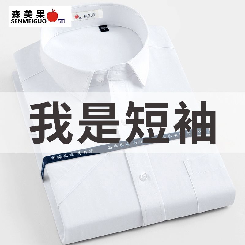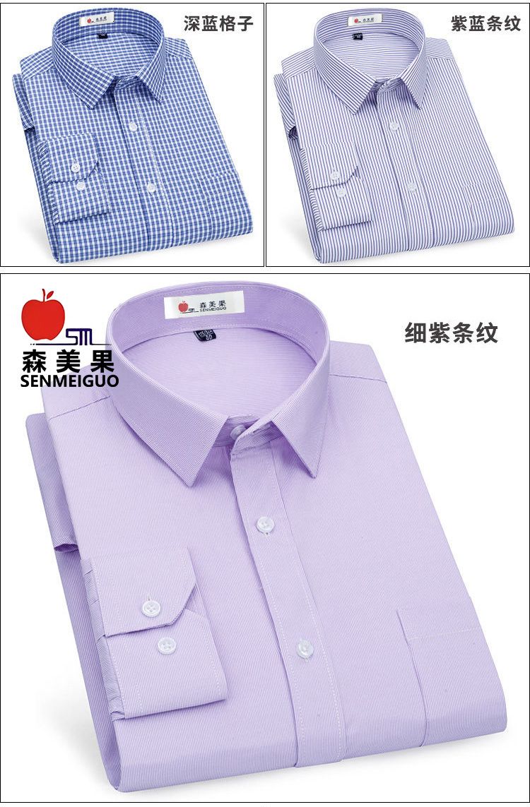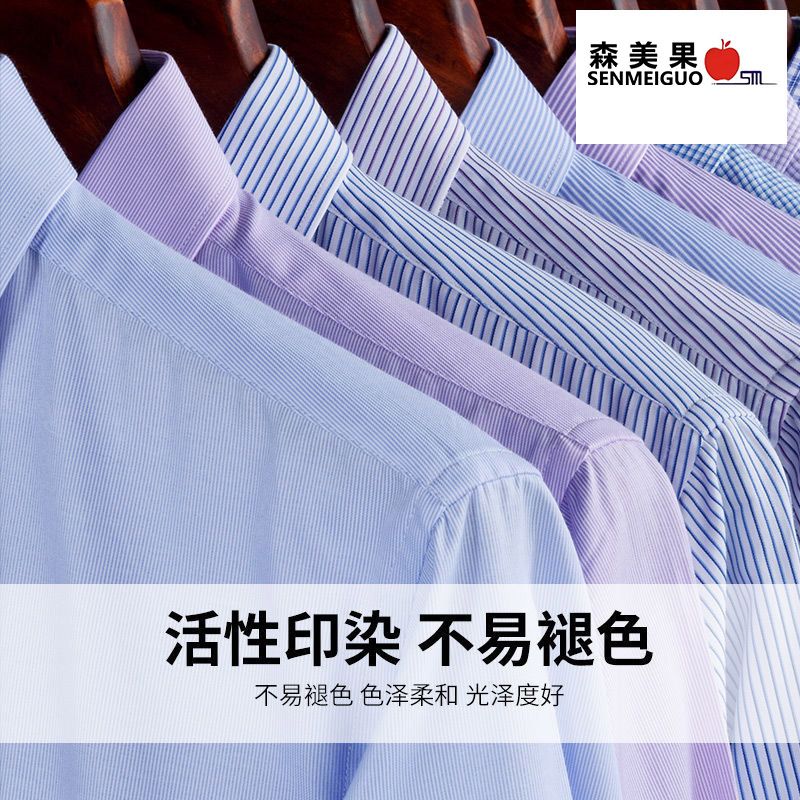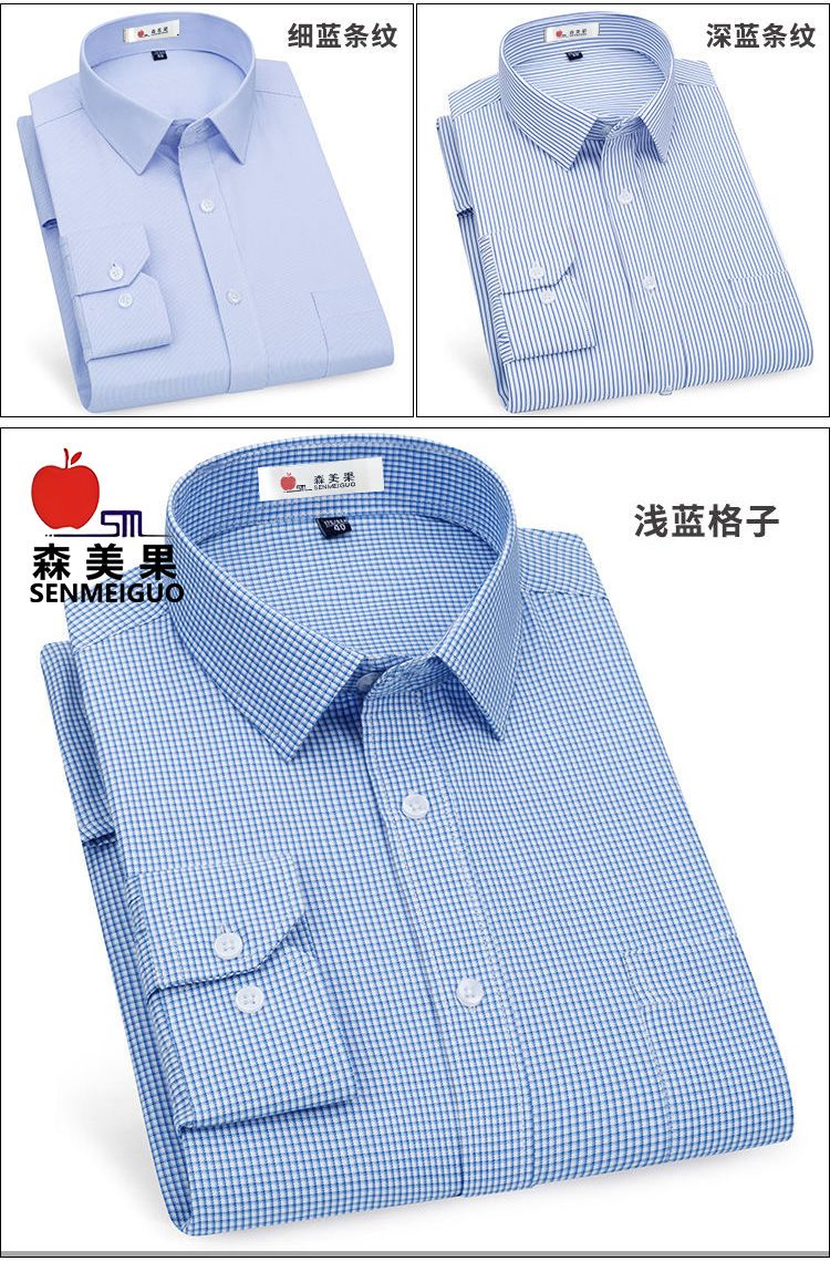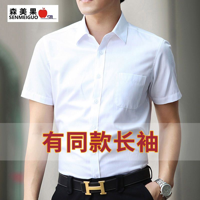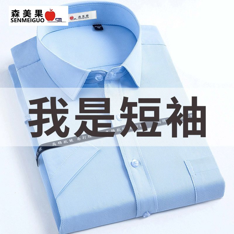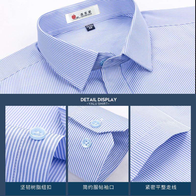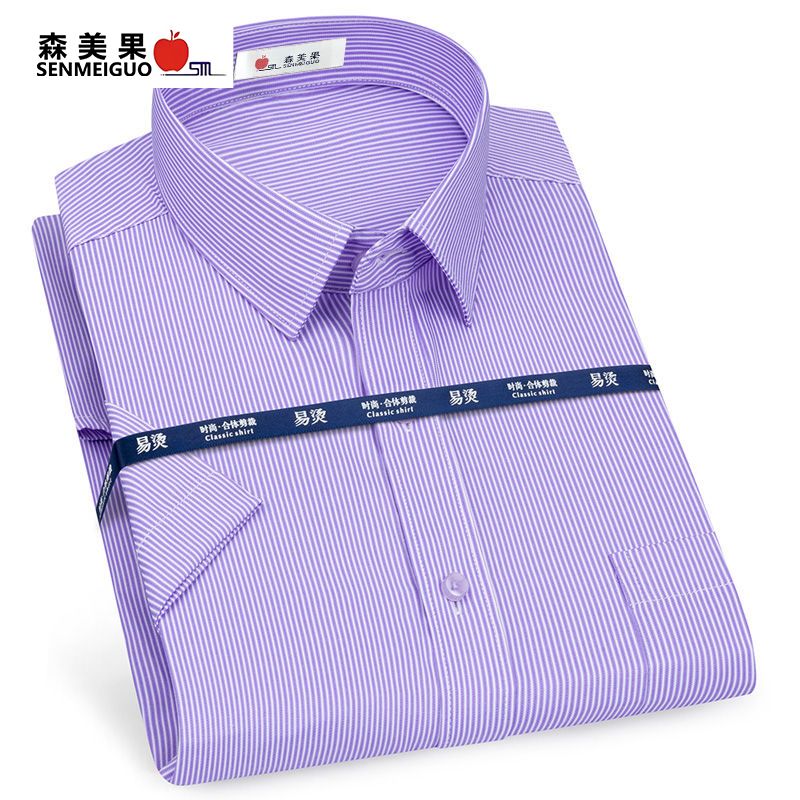 森美果新款男士长袖休闲条纹衬衫短袖商务白色工装免烫抗皱棉衬衣