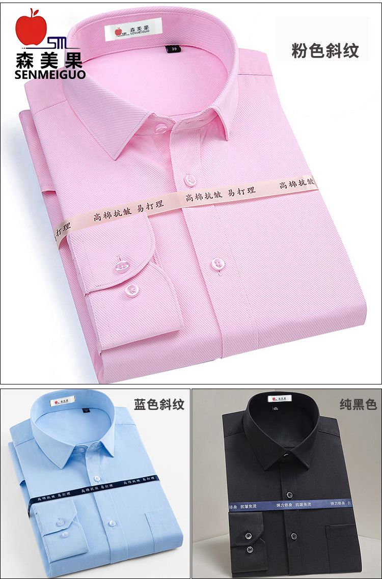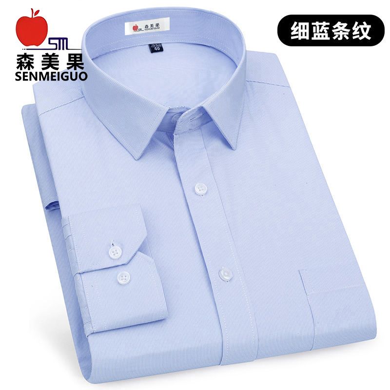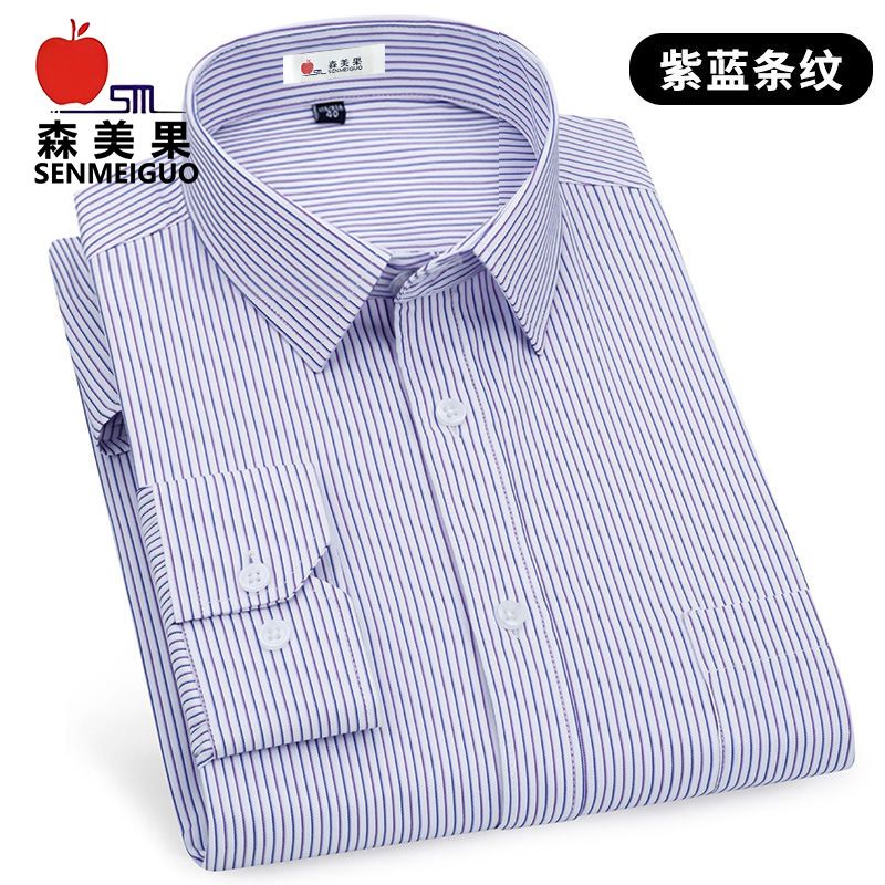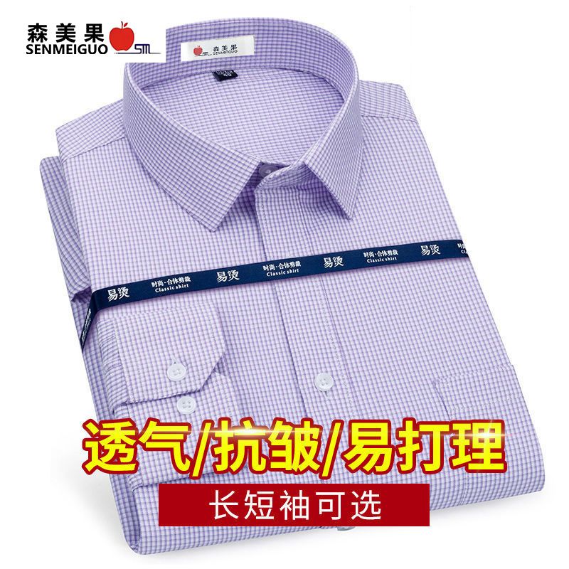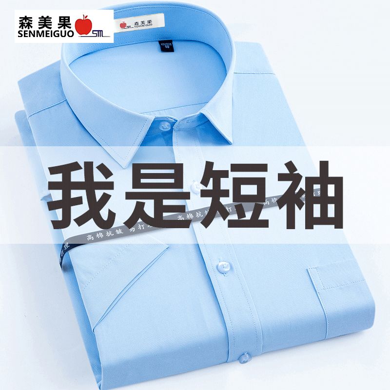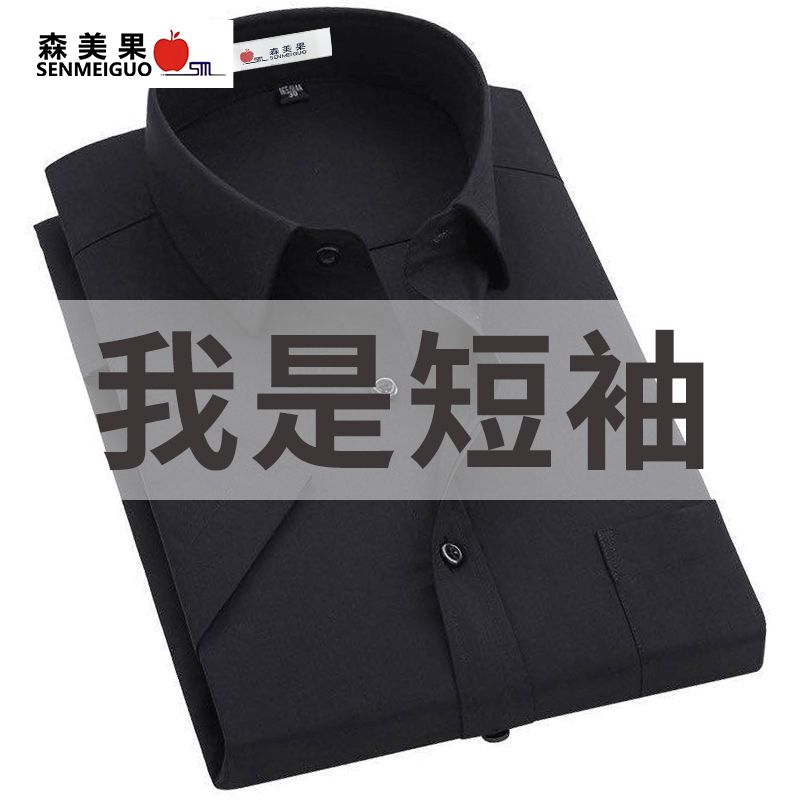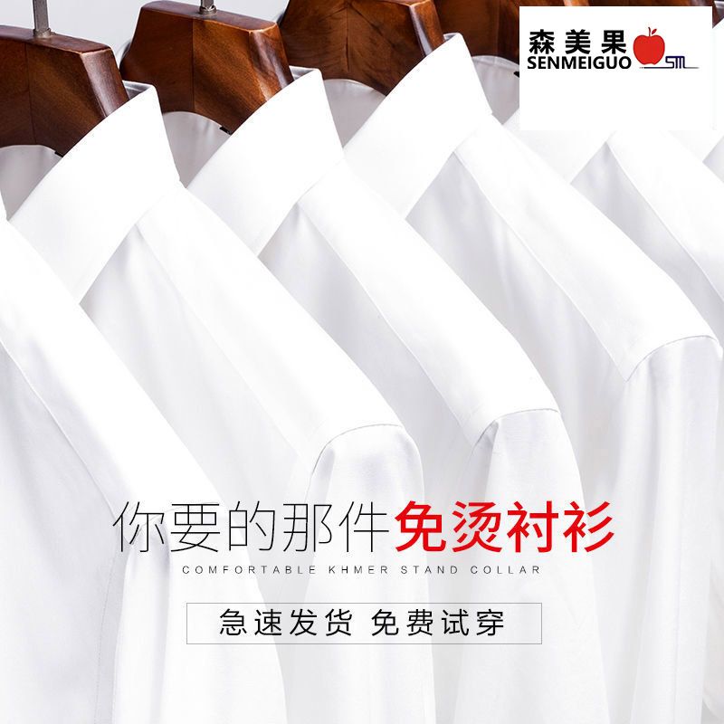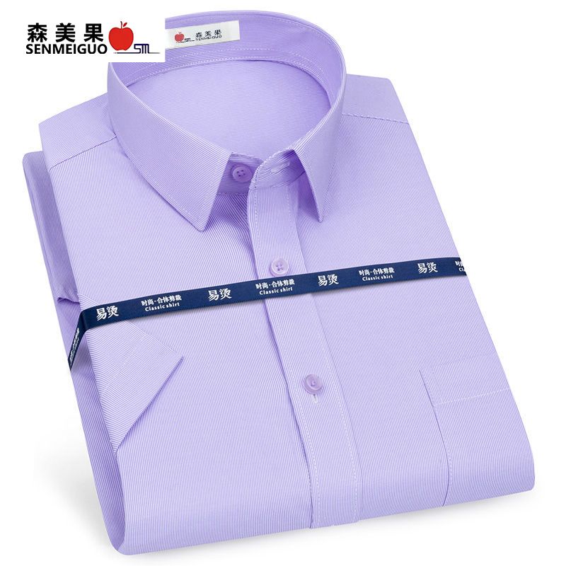 森美果新款男士长袖休闲条纹衬衫短袖商务白色工装免烫抗皱棉衬衣