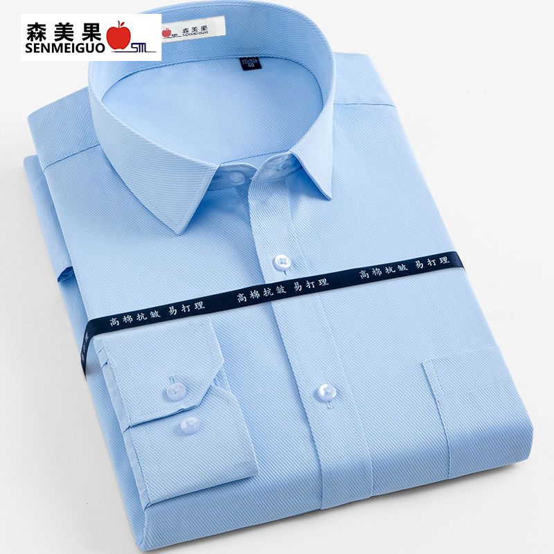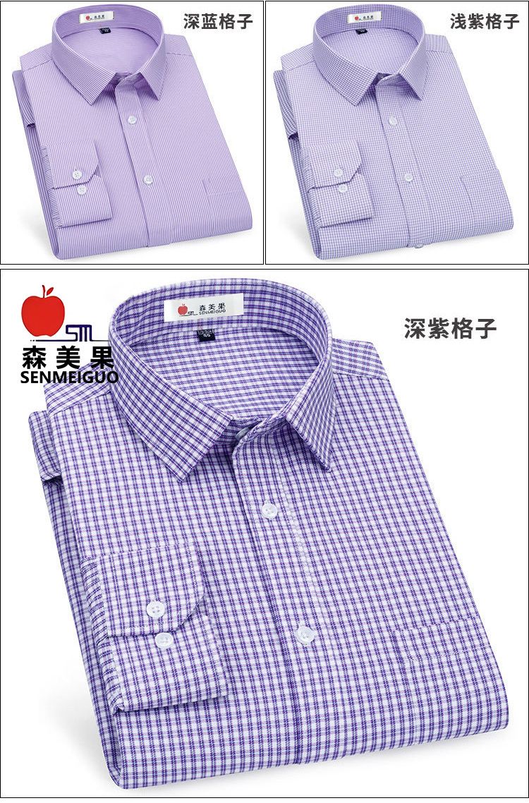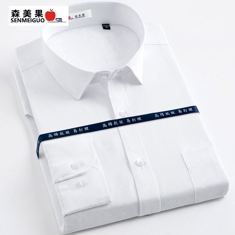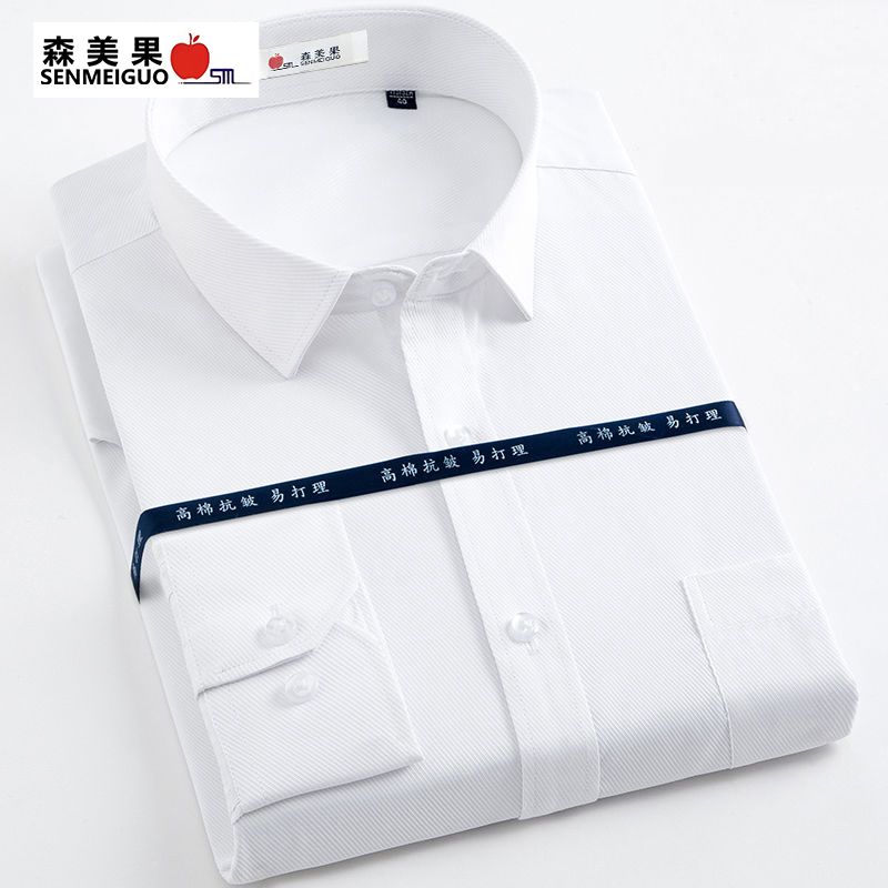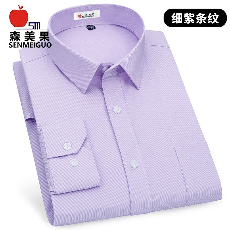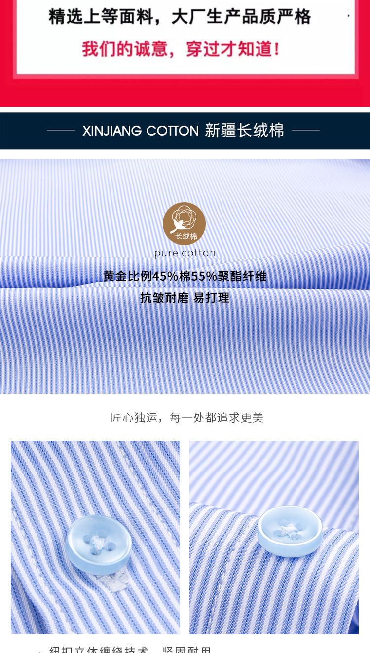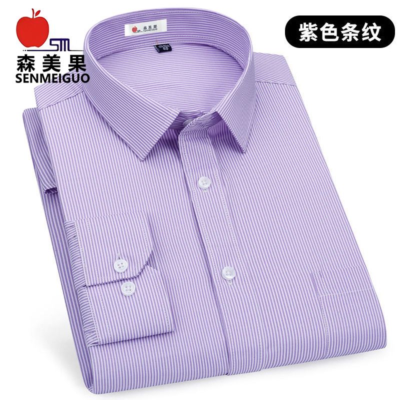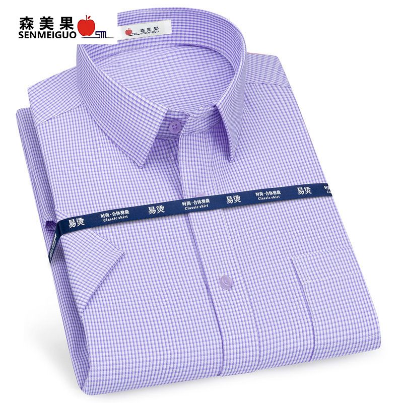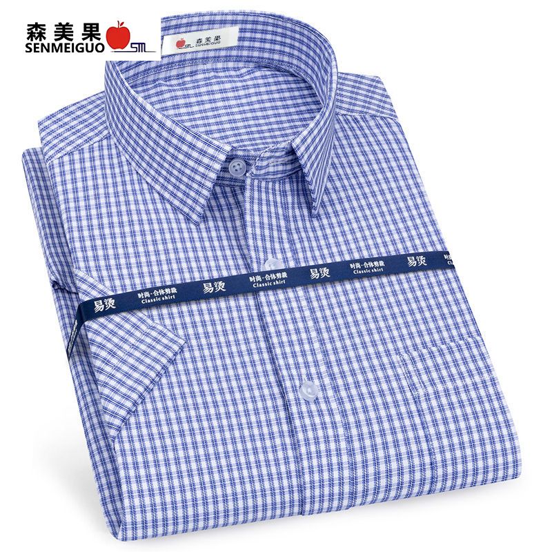 森美果新款男士长袖休闲条纹衬衫短袖商务白色工装免烫抗皱棉衬衣