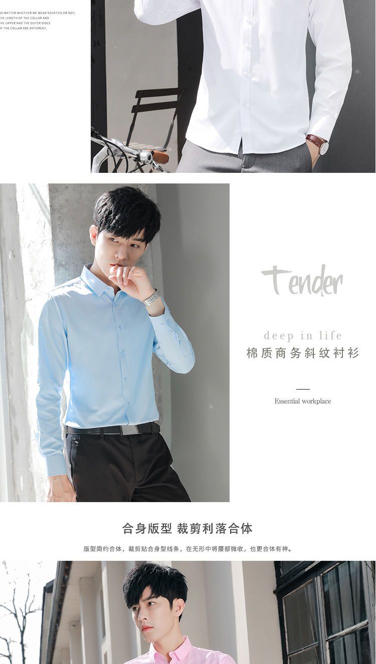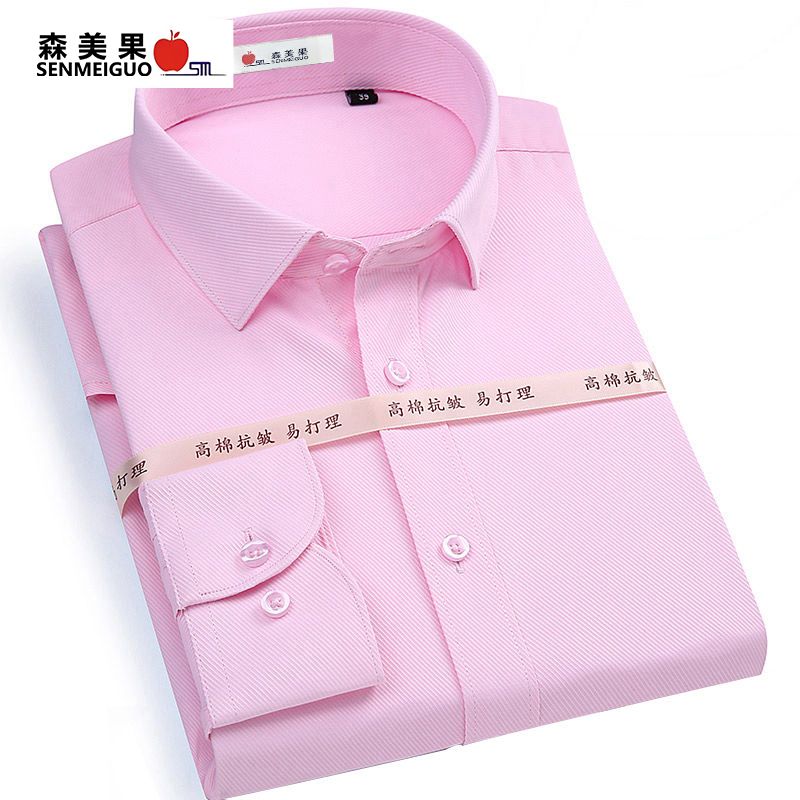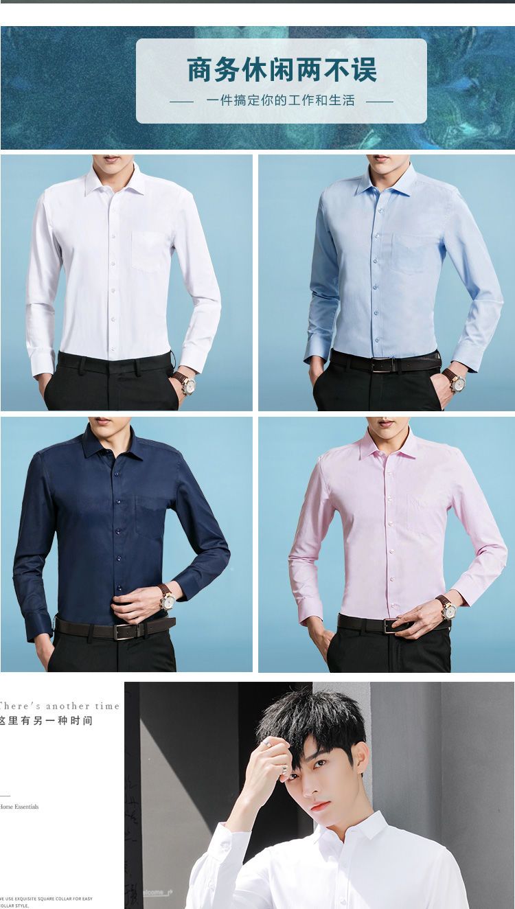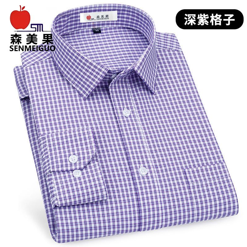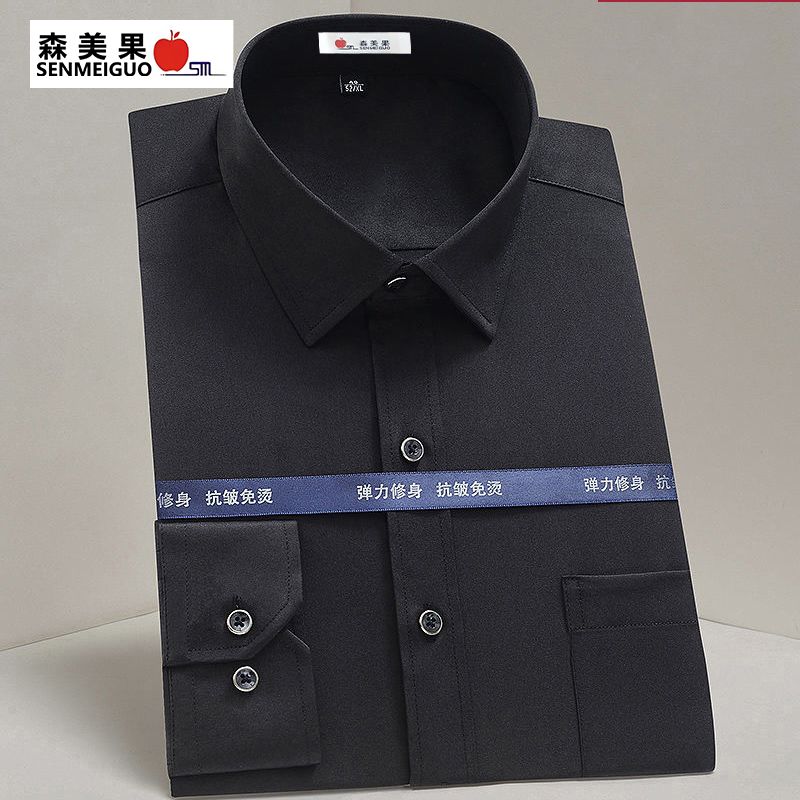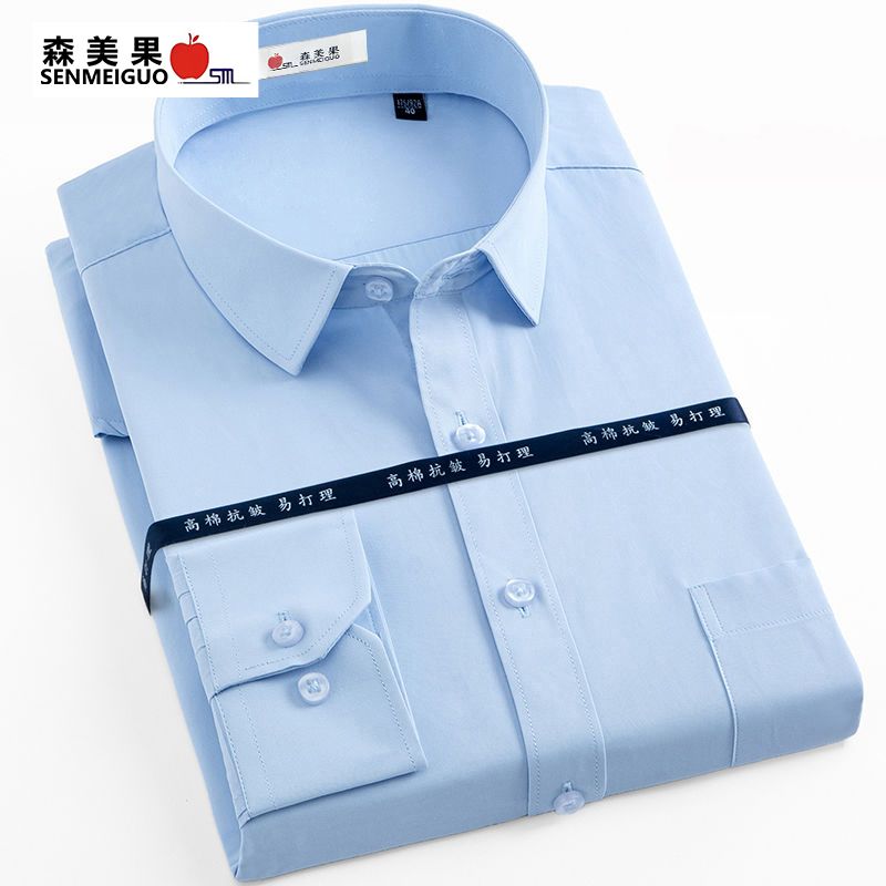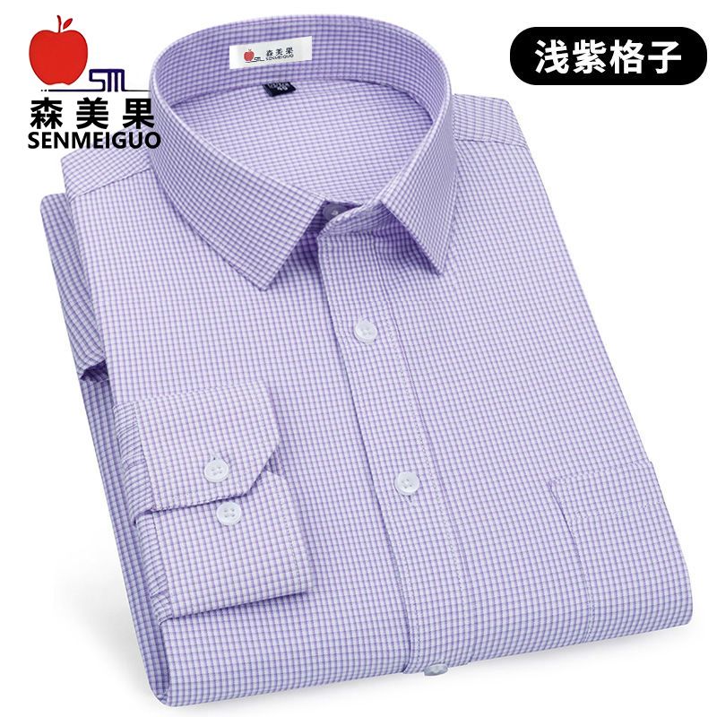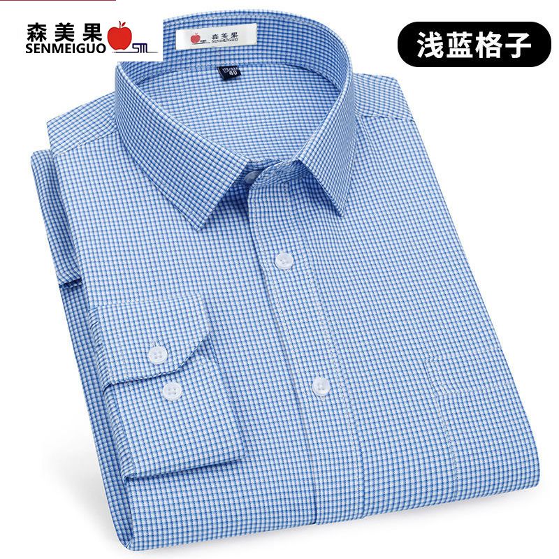 森美果新款男士长袖休闲条纹衬衫短袖商务白色工装免烫抗皱棉衬衣