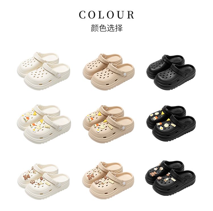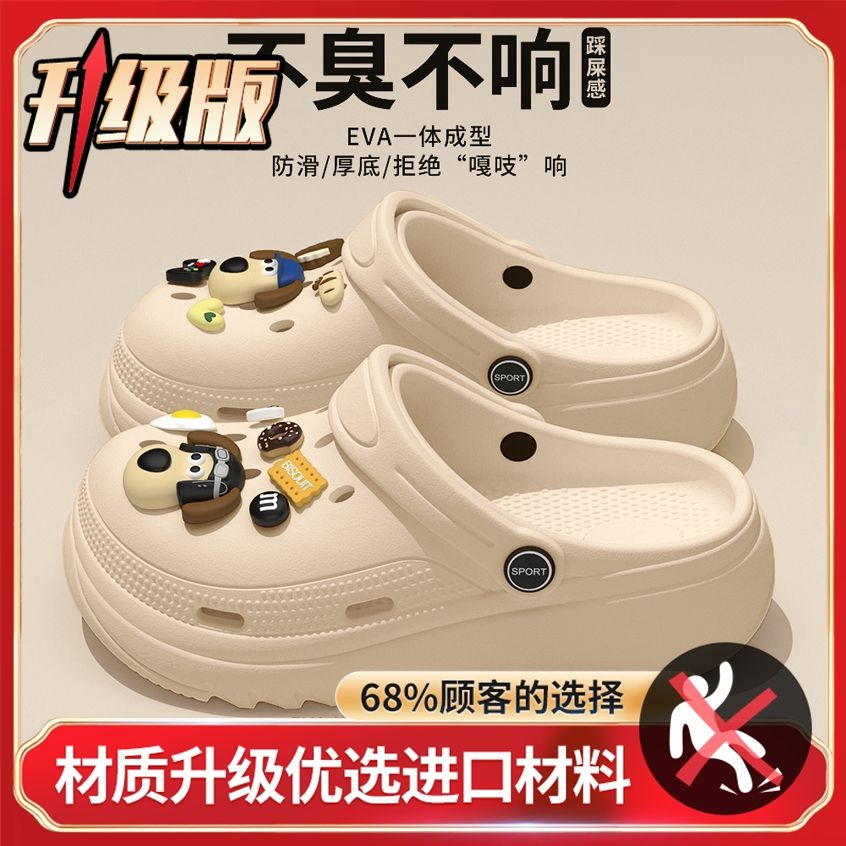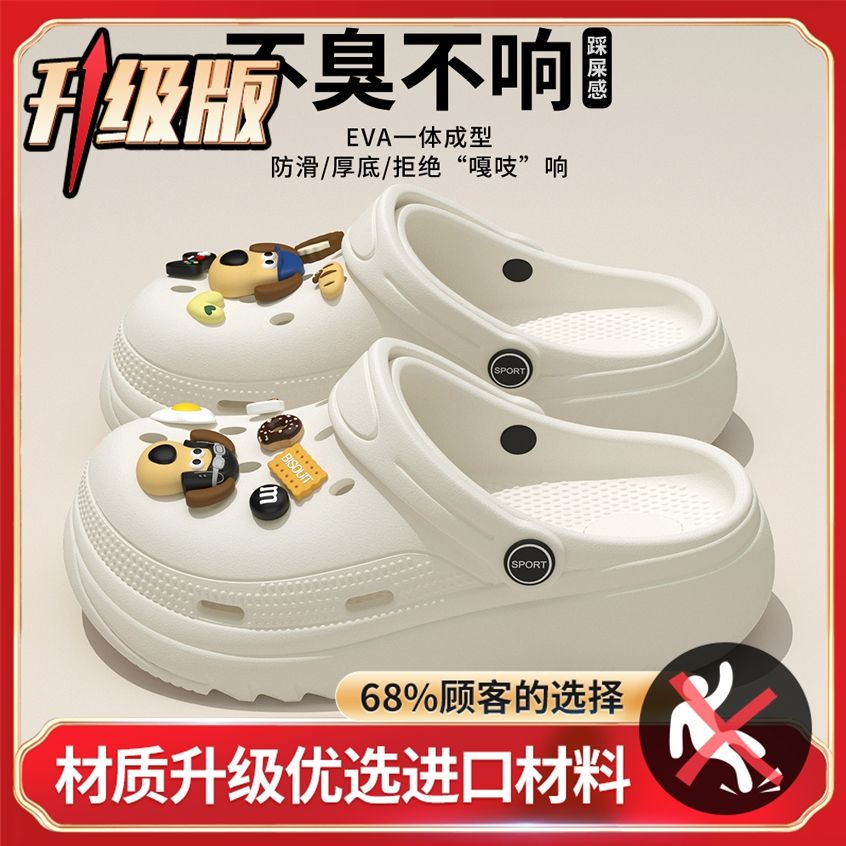 厚底洞洞鞋女款2024新款夏季外穿防滑沙滩凉鞋包头eva加厚拖鞋女