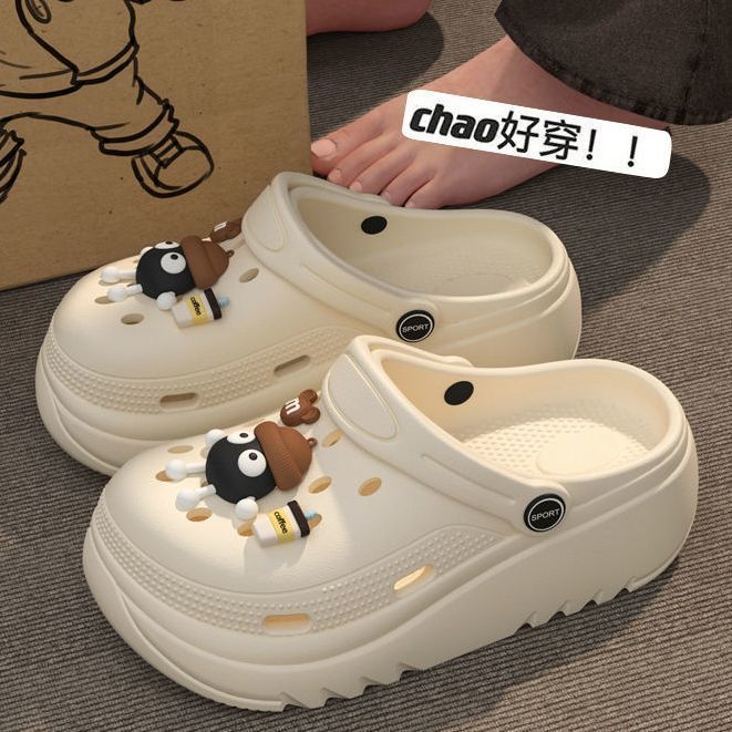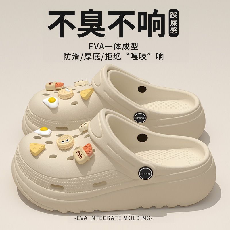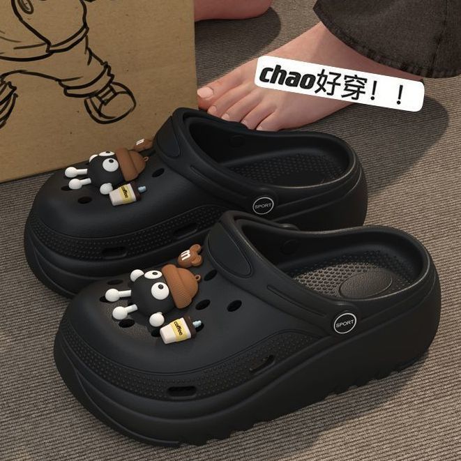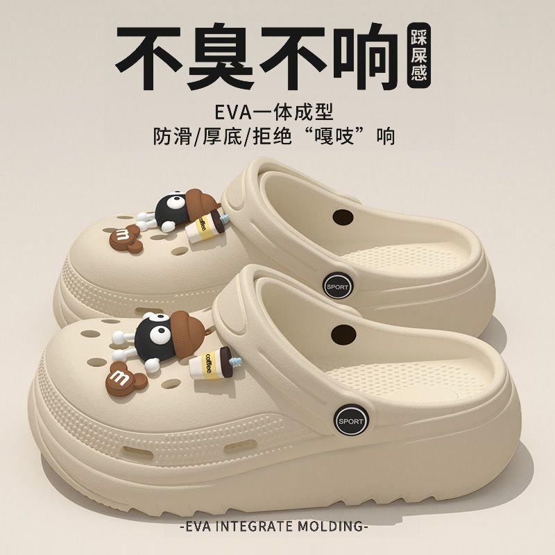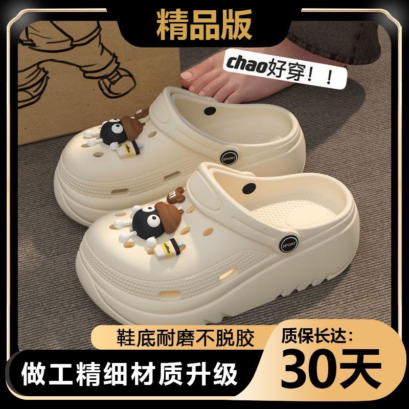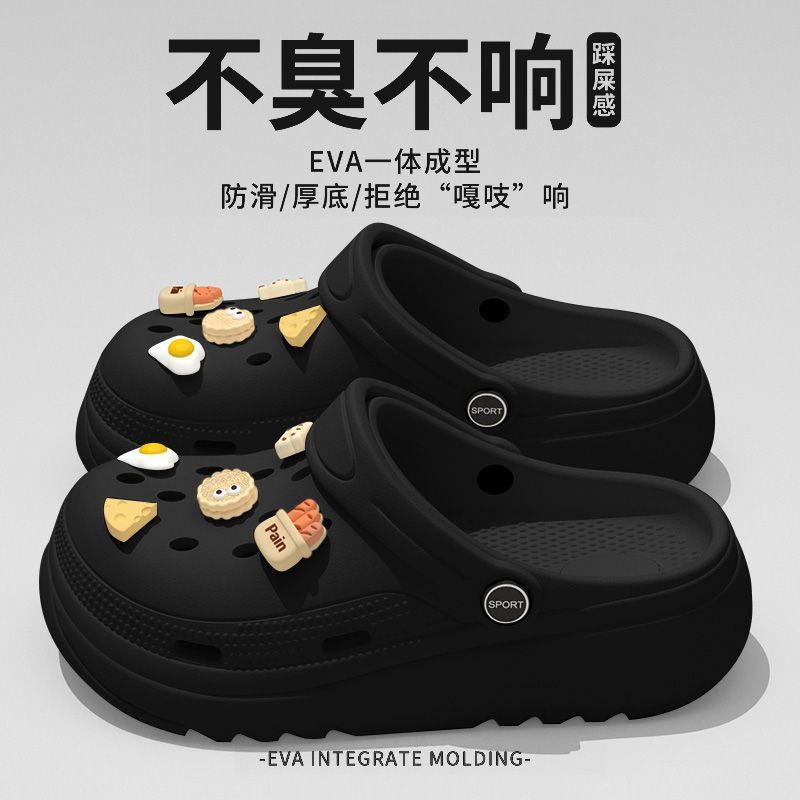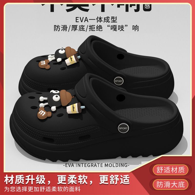 夏季新款eva厚底煤球卡通百搭洞洞鞋女外穿防滑不臭沙滩包头拖男