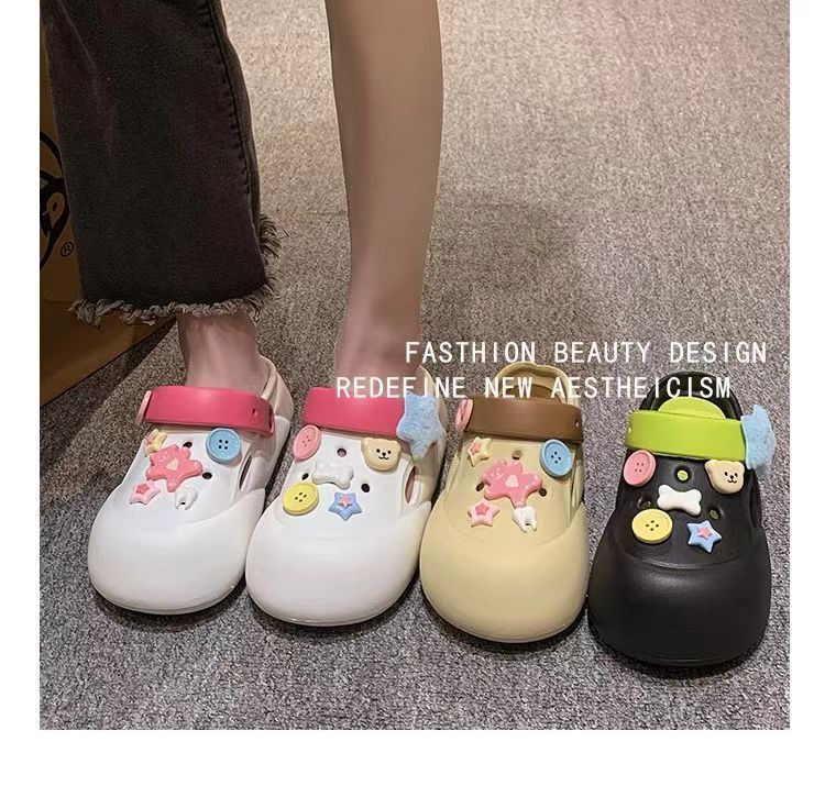 高颜值DIY洞洞鞋女款夏季可爱时尚居家户外防滑厚底舒适沙滩凉鞋