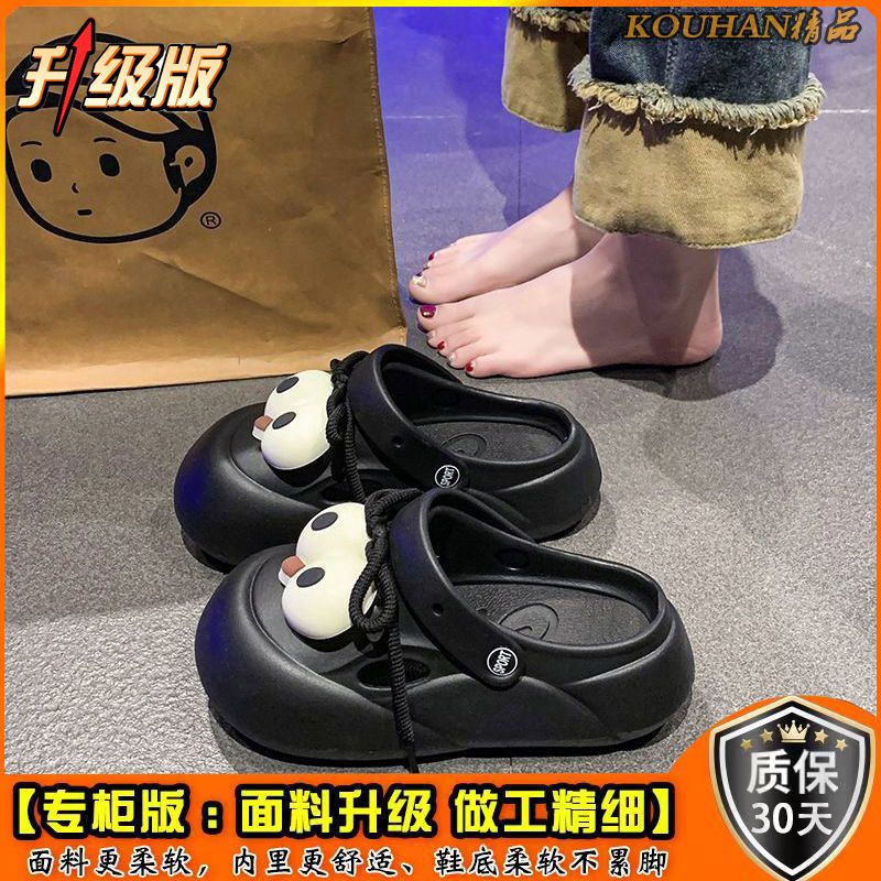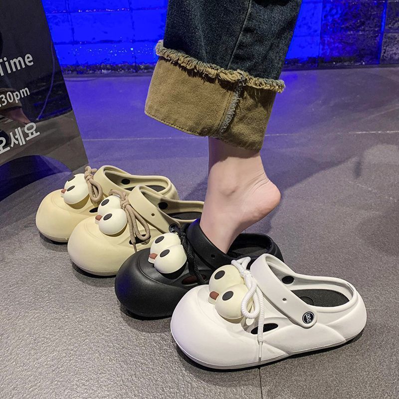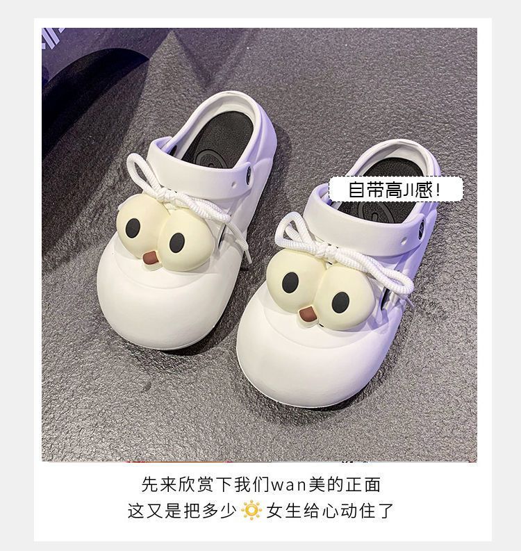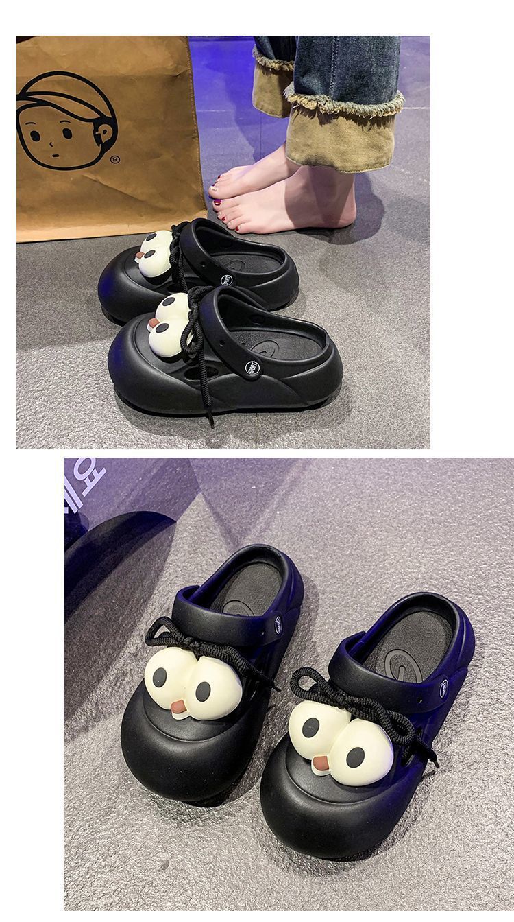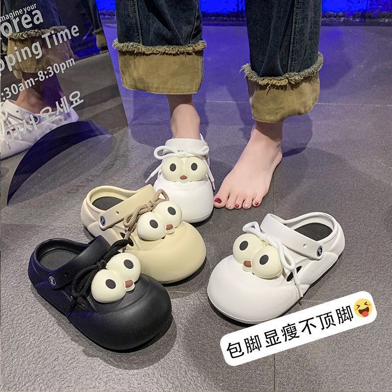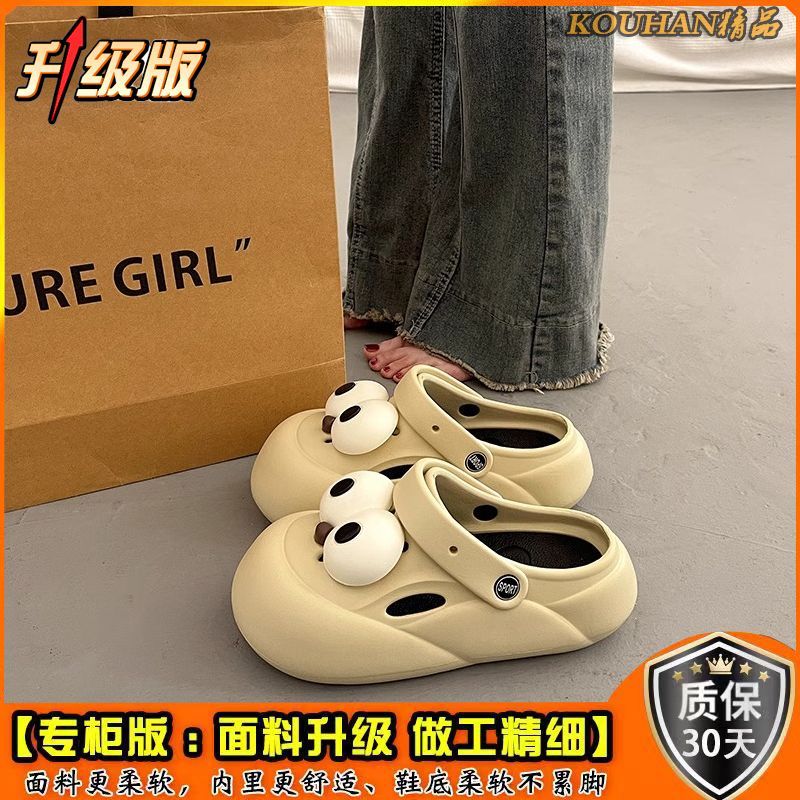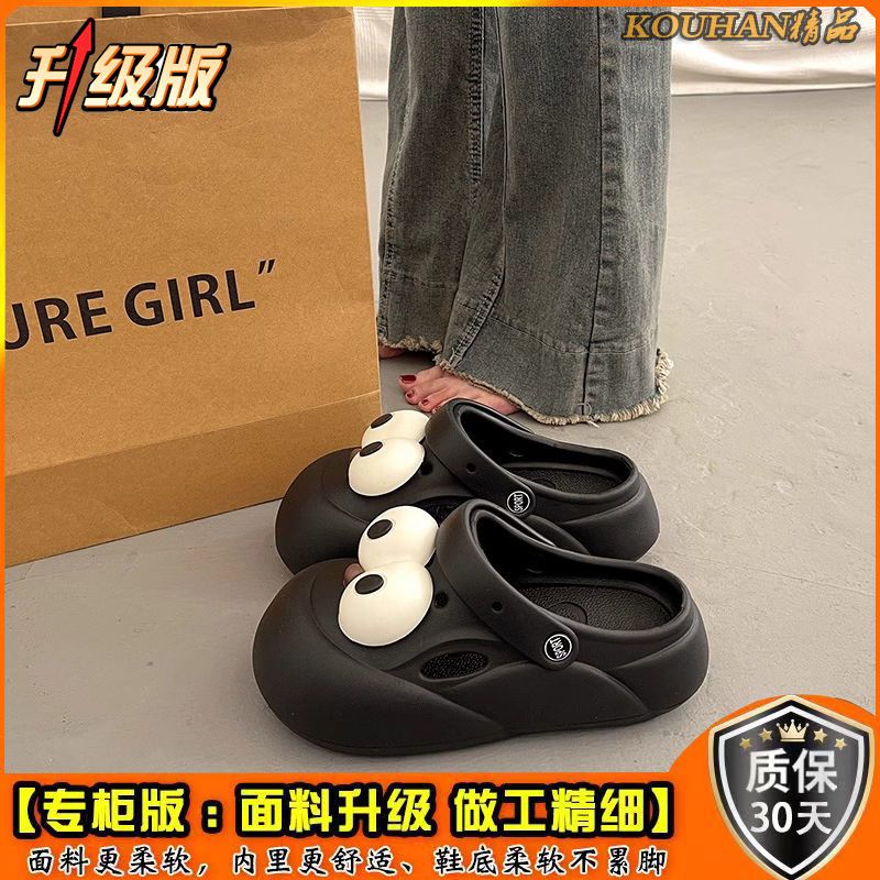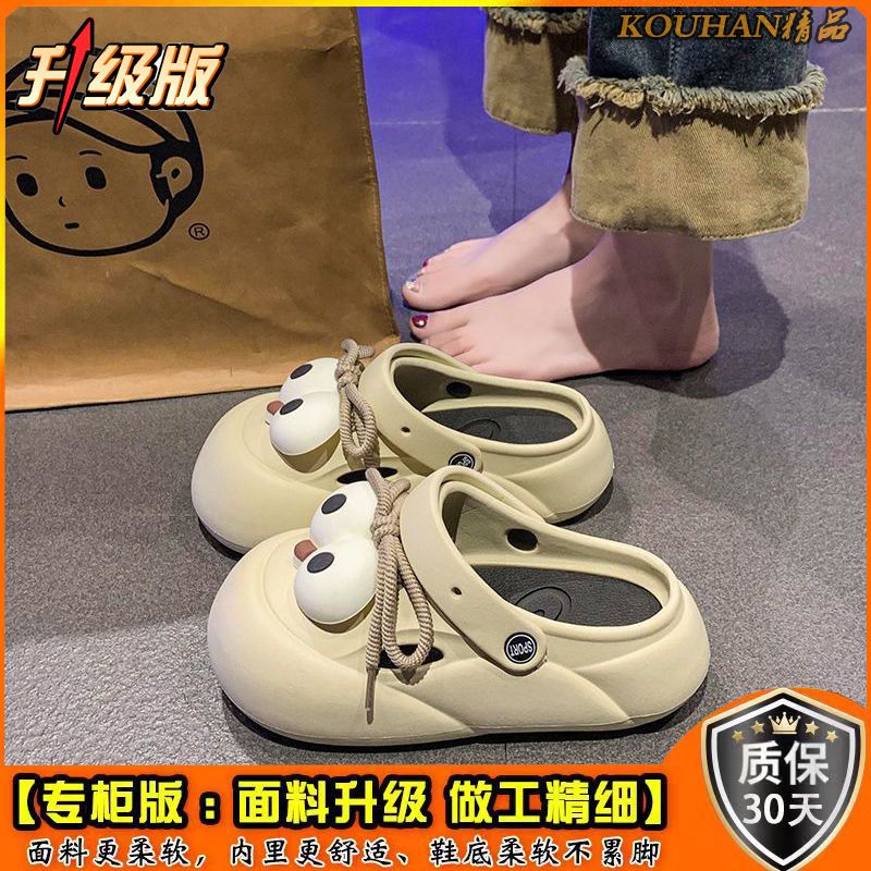 卡通包头拖女款2024新款夏季外穿丑萌大眼洞洞鞋踩屎感防滑凉拖鞋
