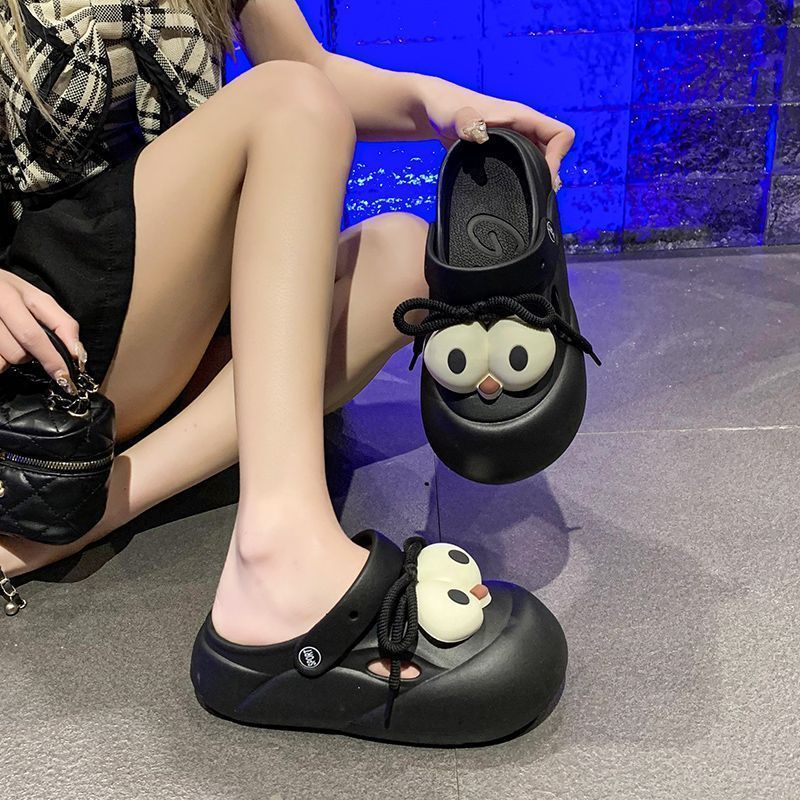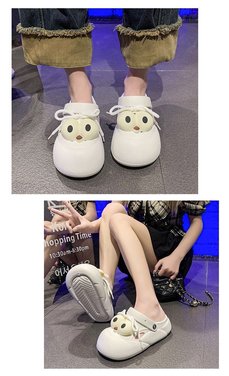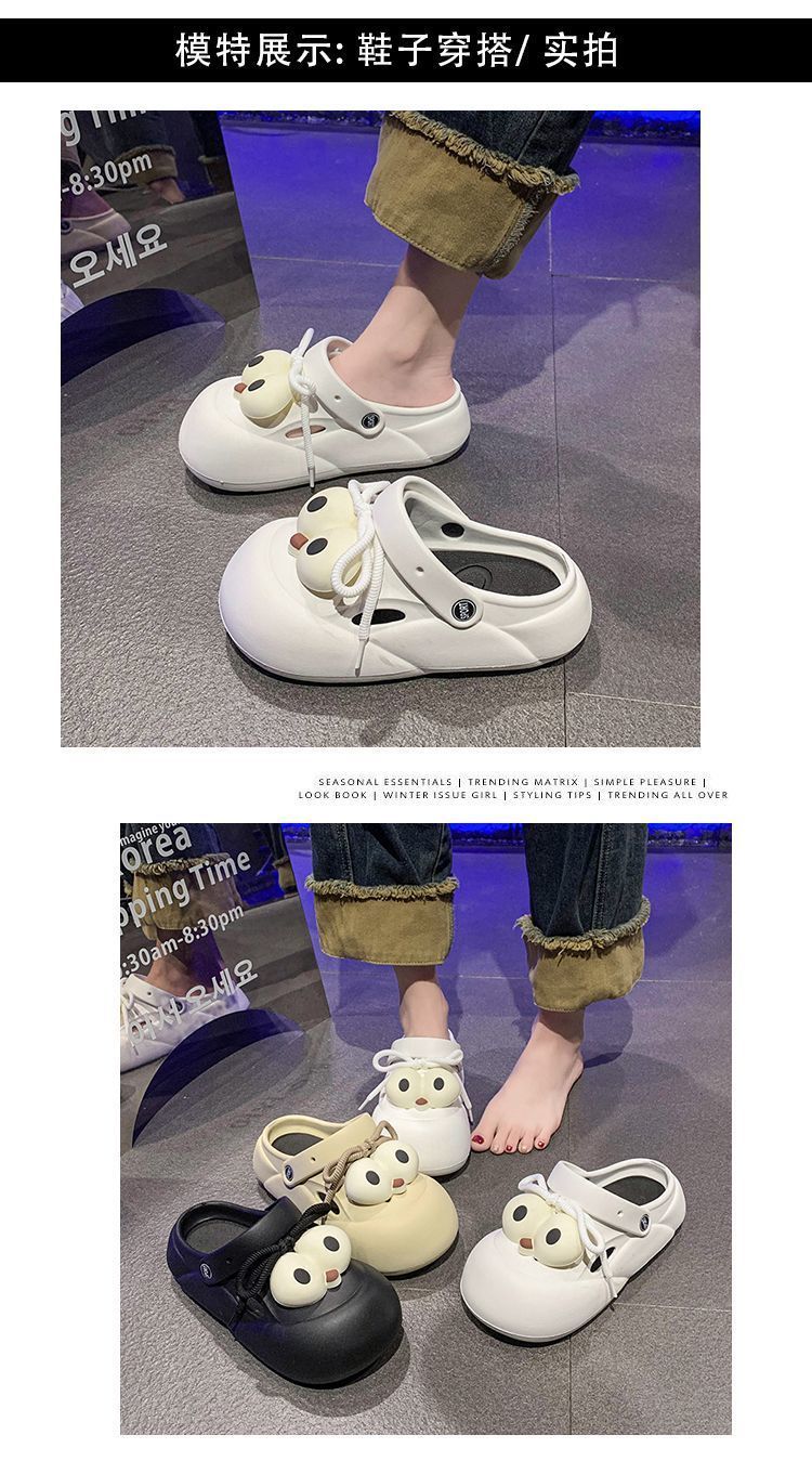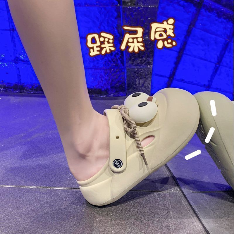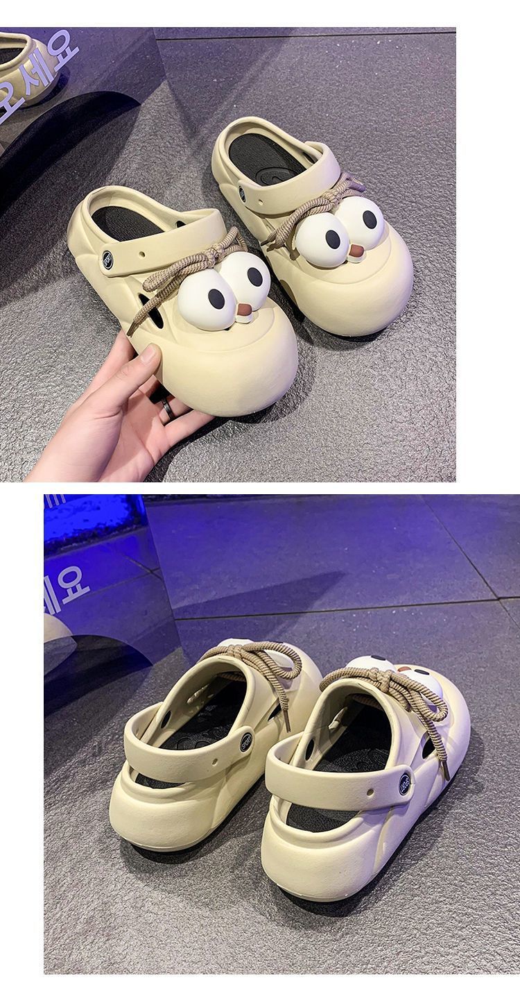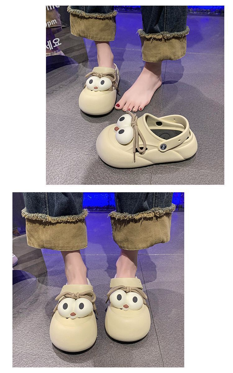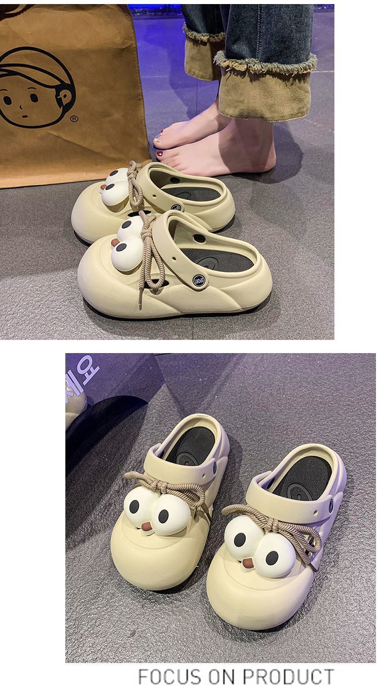 卡通包头拖女款2024新款夏季外穿丑萌大眼洞洞鞋踩屎感防滑凉拖鞋