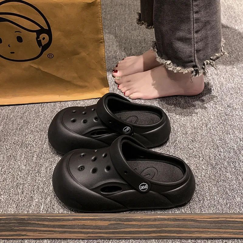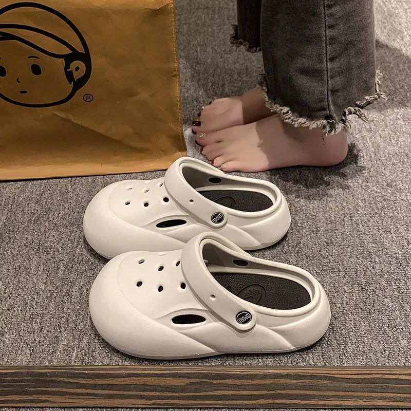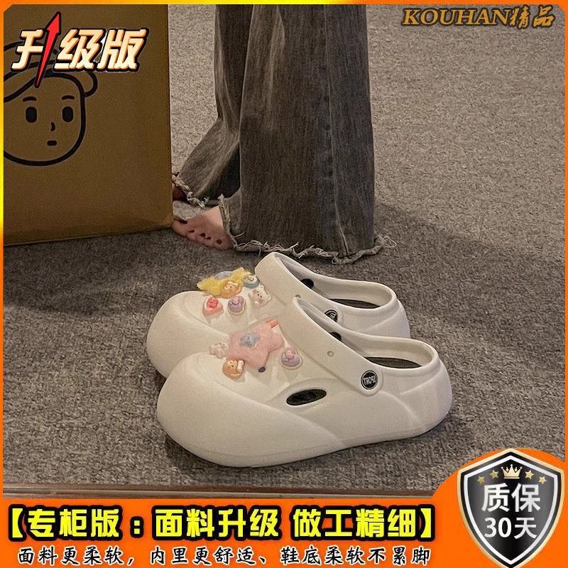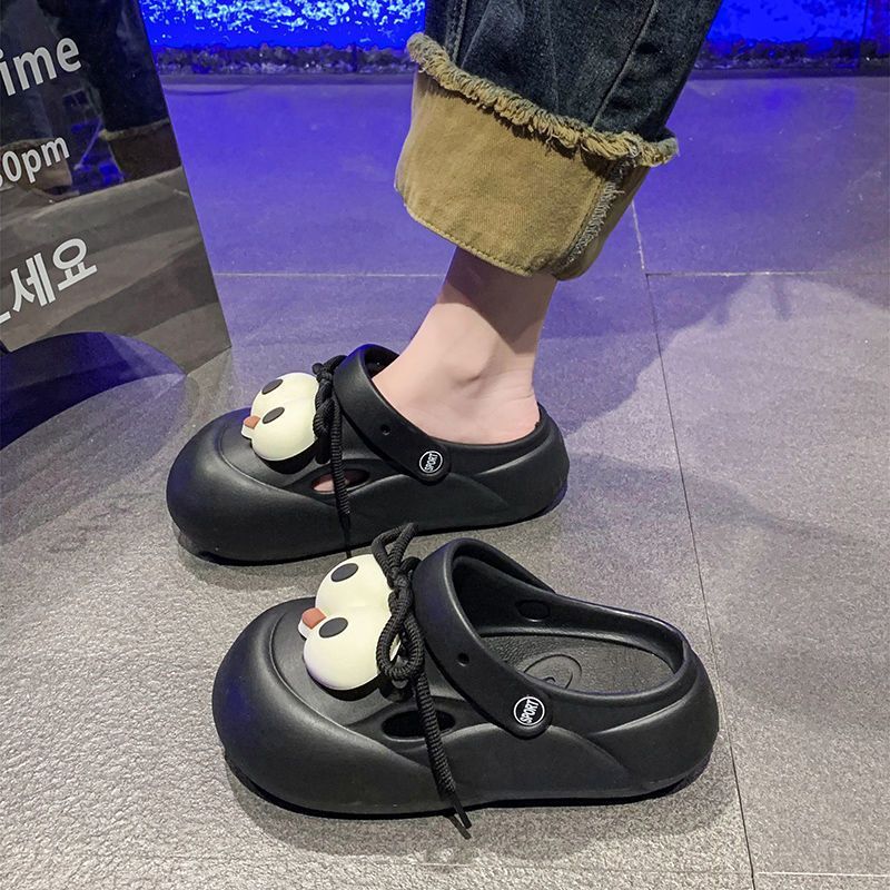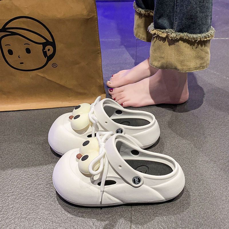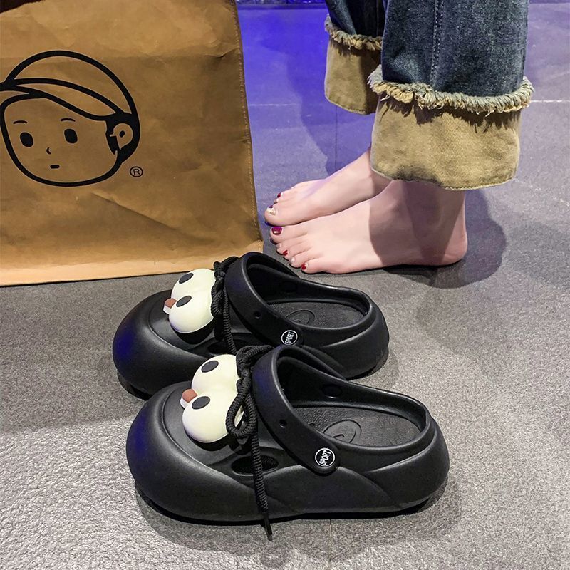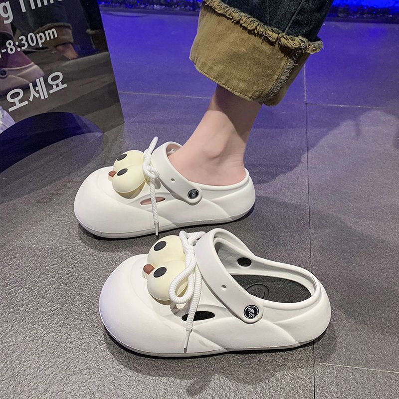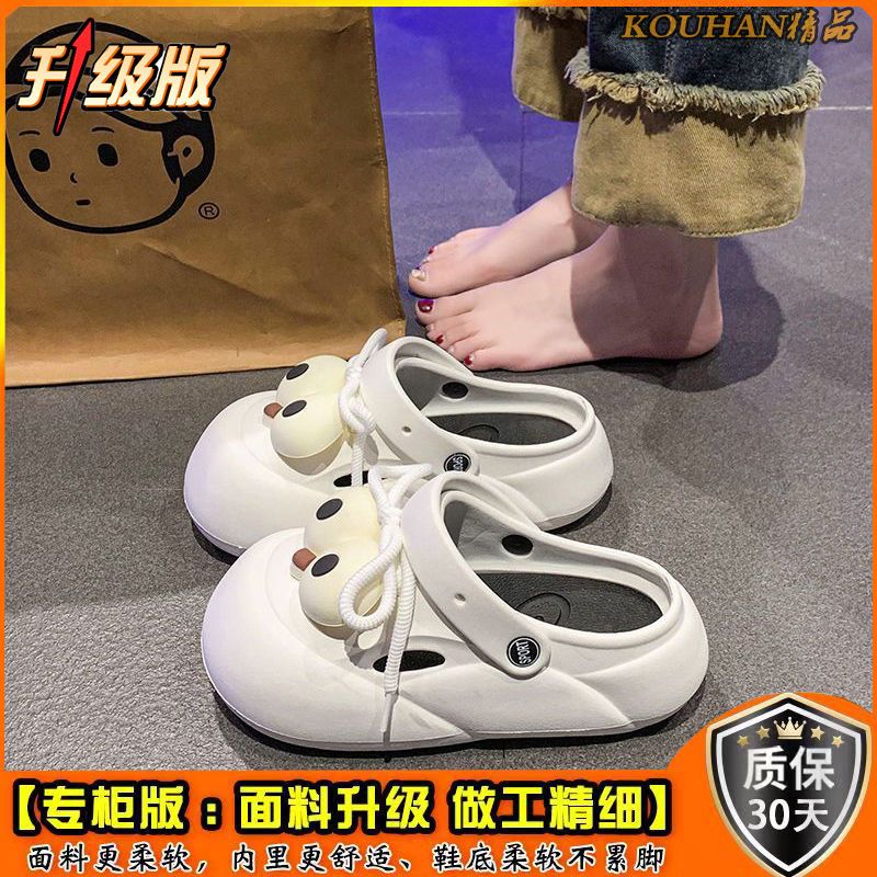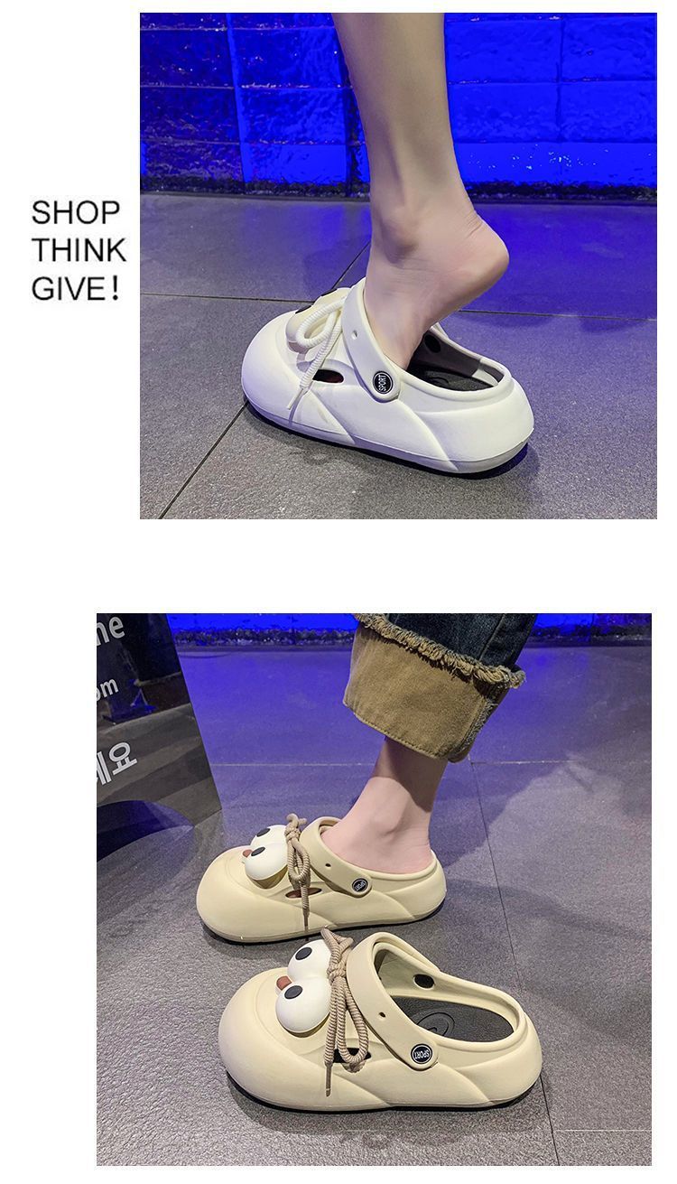 卡通包头拖女款2024新款夏季外穿丑萌大眼洞洞鞋踩屎感防滑凉拖鞋