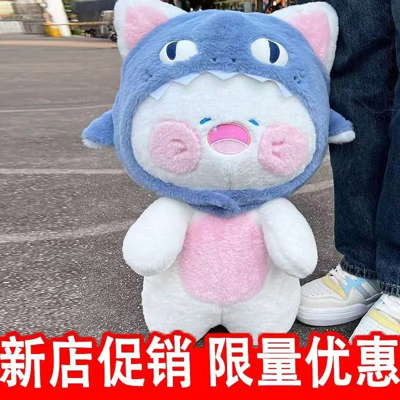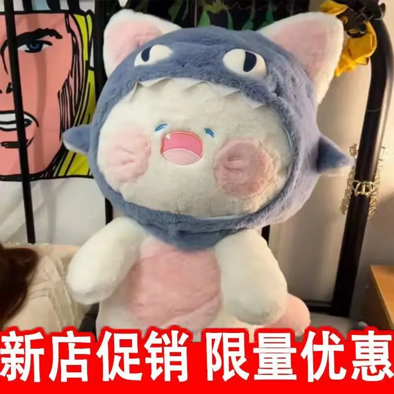 可爱鲨鱼毛绒玩具公仔猫咪超萌床上布娃娃玩偶鲨猫生日礼物女孩男