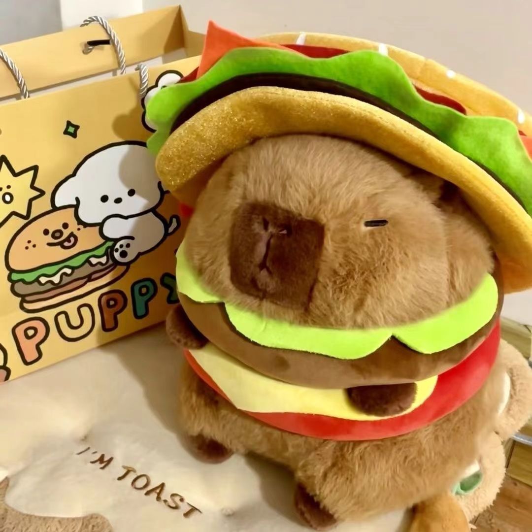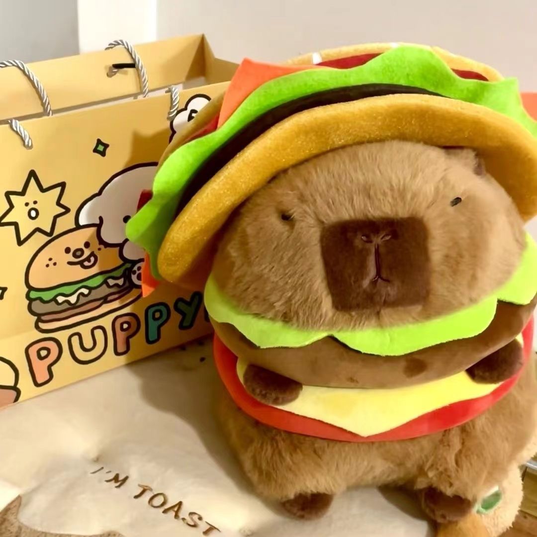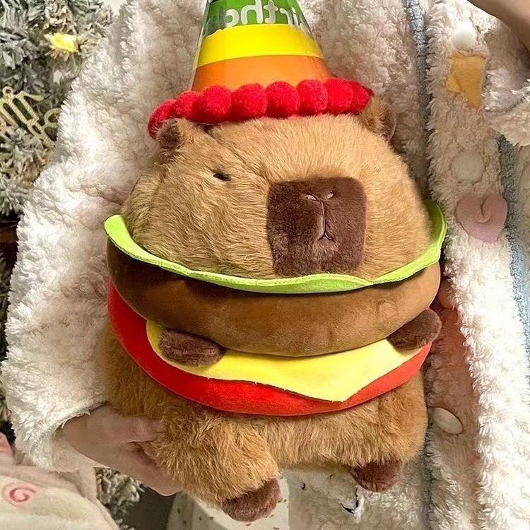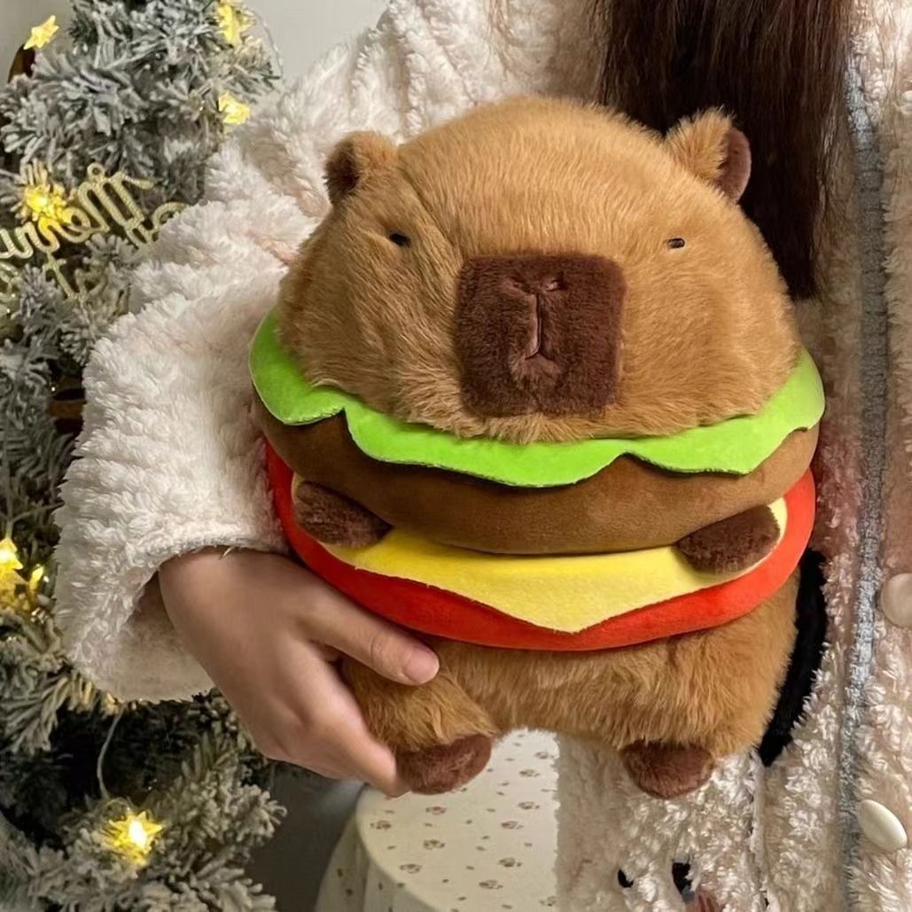 卡皮巴拉汉堡豚鼠毛绒玩具公仔可爱水豚玩偶床上布娃娃生日礼物女