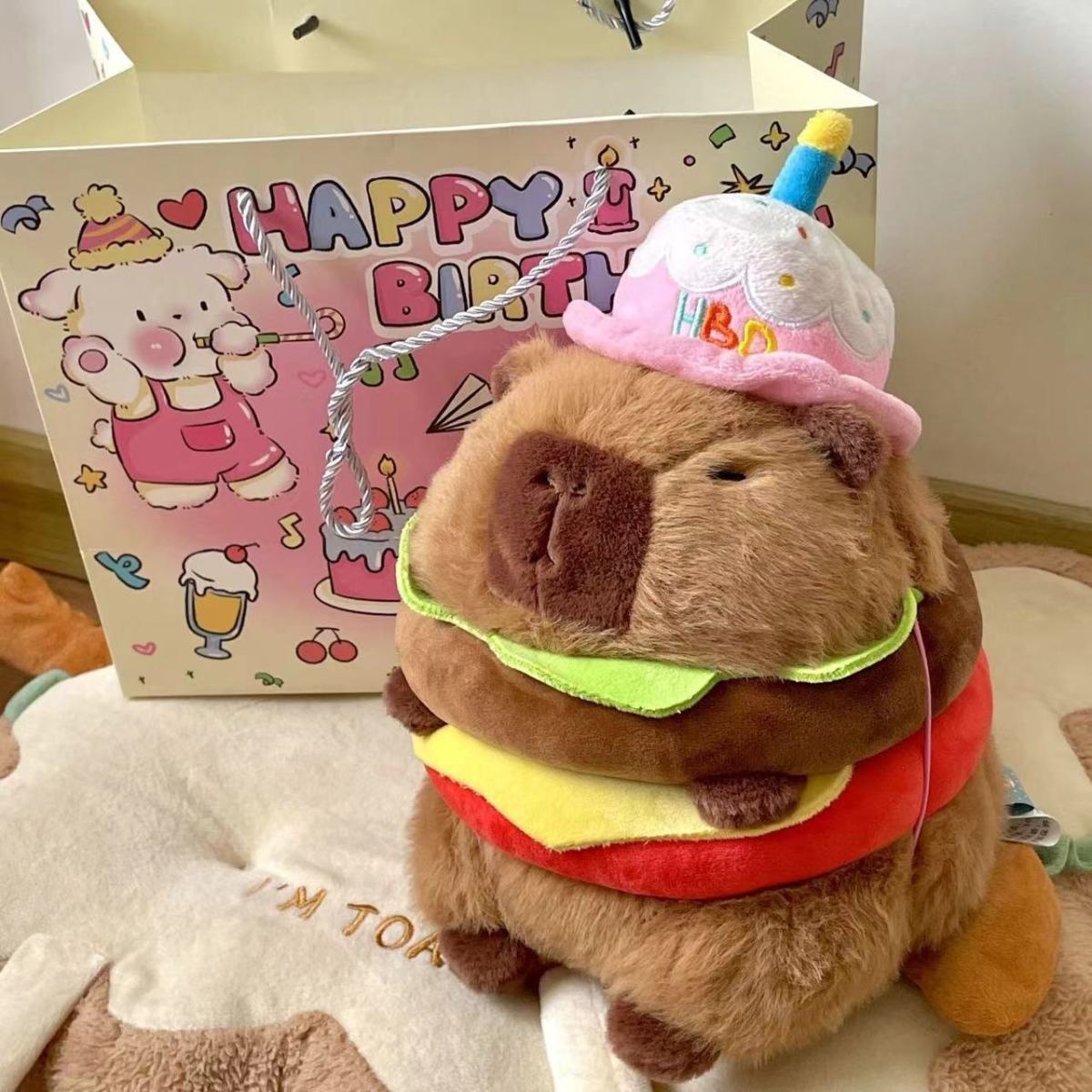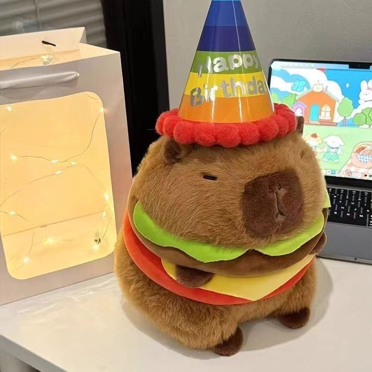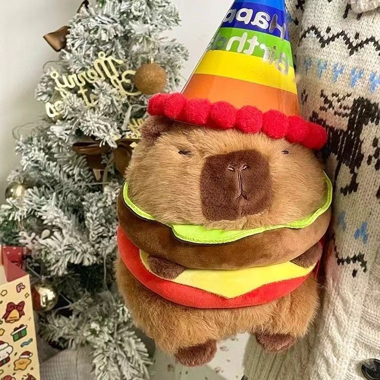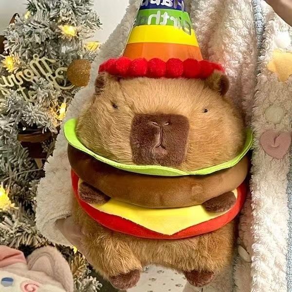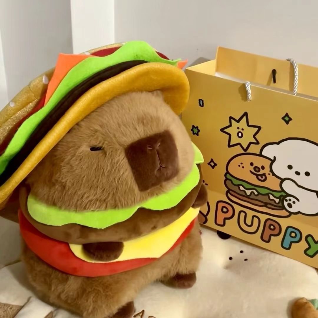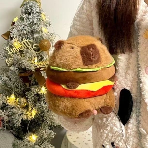 卡皮巴拉汉堡豚鼠毛绒玩具公仔可爱水豚玩偶床上布娃娃生日礼物女