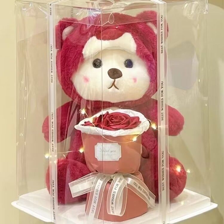 | 30cm lina strawberry bear + gift box + bouquet + lighting chain(30厘米莉娜草莓熊+礼盒+花束+灯串) | USD $9.12 | 999999 piece available |