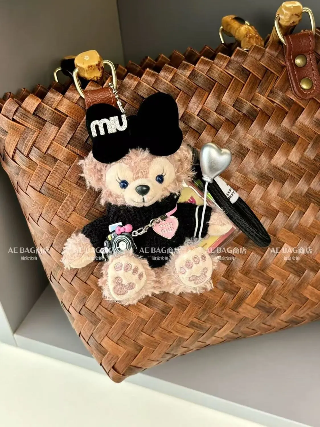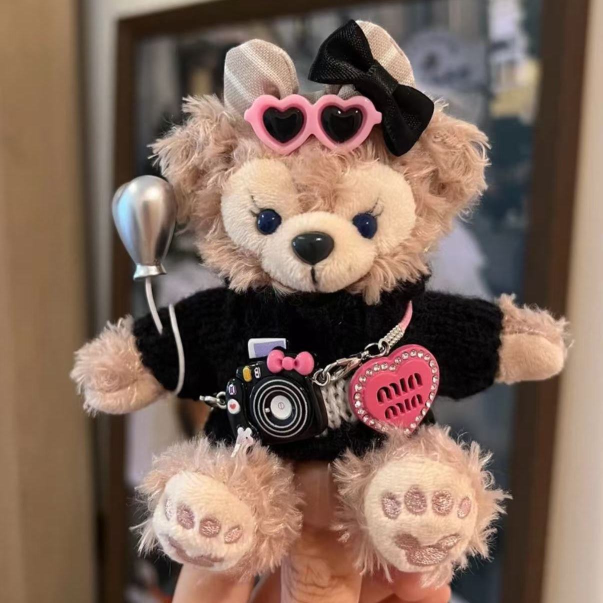 秋冬相机雪莉玫包包挂件汽车钥匙扣毛绒公仔黑色高级感礼物车挂饰