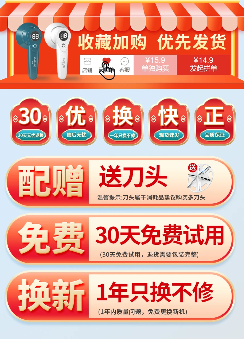 | 【顶配】+5备用刀头+粘毛器 | USD $6.65 | 999999 piece available |